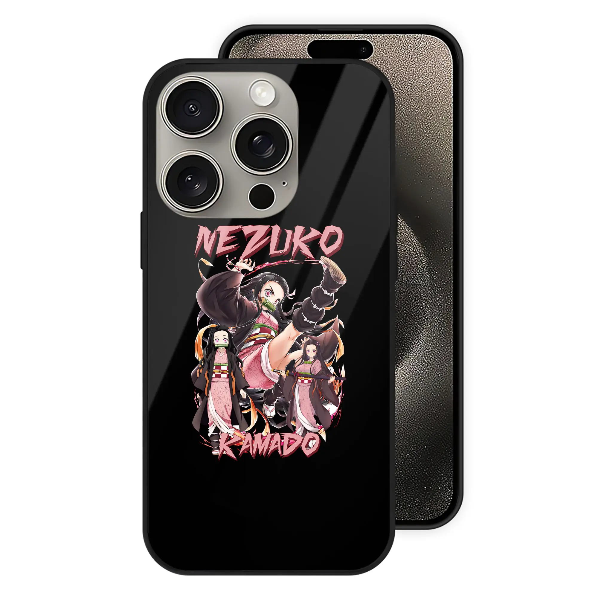 鬼滅の刃 グッズ,竈門 禰豆子 - IPhone15Pro対応 ・ スマホケース ・ 背面ガラス ・ TPU+強化ガラス ・ 耐衝撃 ・ 黄変防止 ・ ワイヤレス充電対応 ・ 3D立体ボタン