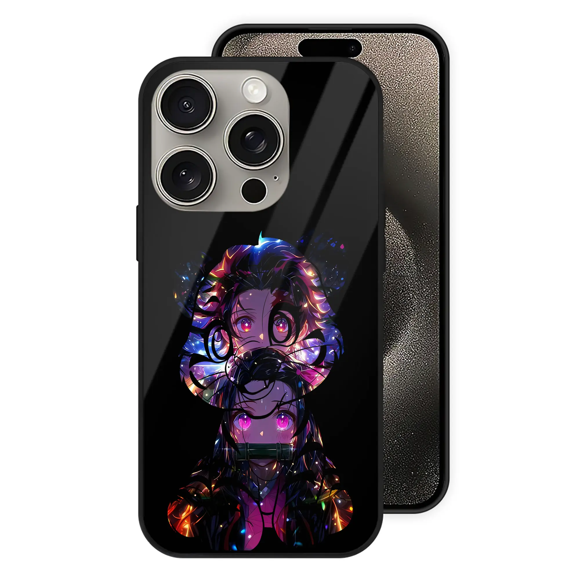 鬼滅の刃 グッズ,竈門 禰豆子 - IPhone15Pro対応 ・ スマホケース ・ 背面ガラス ・ TPU+強化ガラス ・ 耐衝撃 ・ 黄変防止 ・ ワイヤレス充電対応 ・ 3D立体ボタン