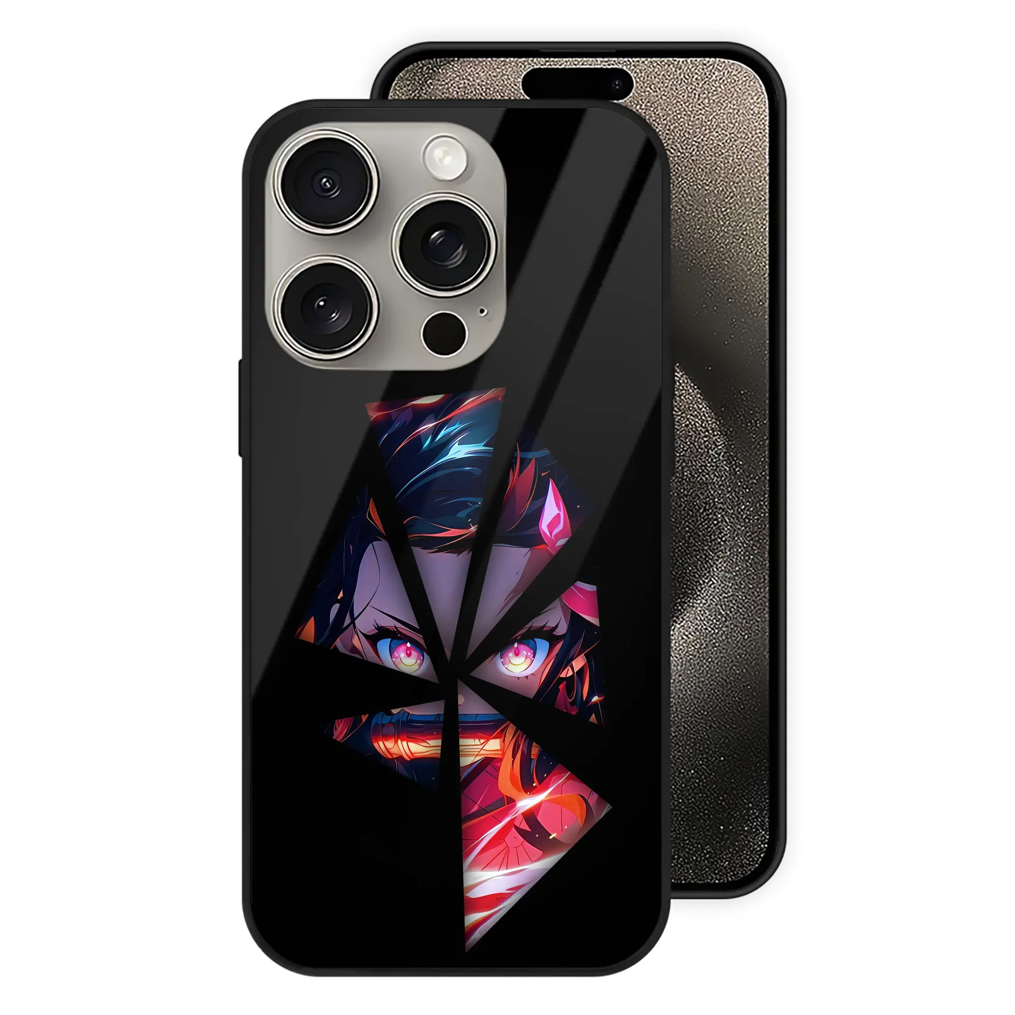 鬼滅の刃 グッズ,竈門 禰豆子 - IPhone15Pro対応 ・ スマホケース ・ 背面ガラス ・ TPU+強化ガラス ・ 耐衝撃 ・ 黄変防止 ・ ワイヤレス充電対応 ・ 3D立体ボタン