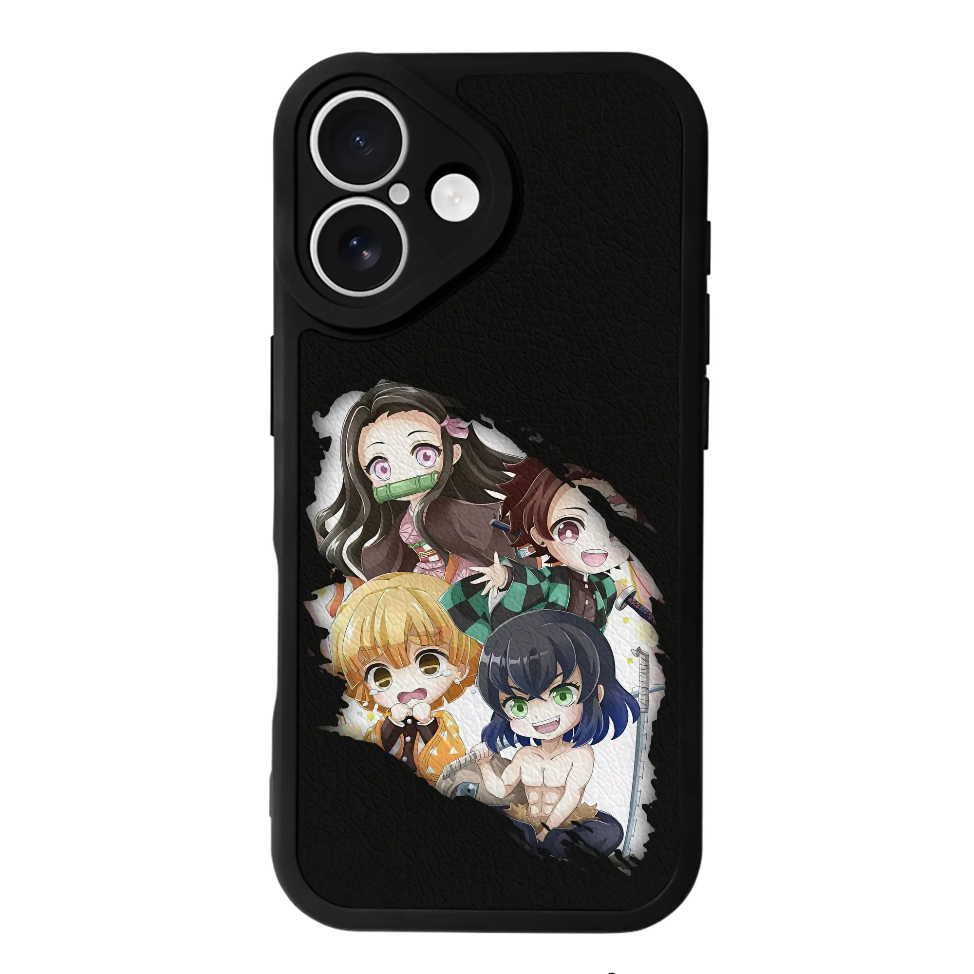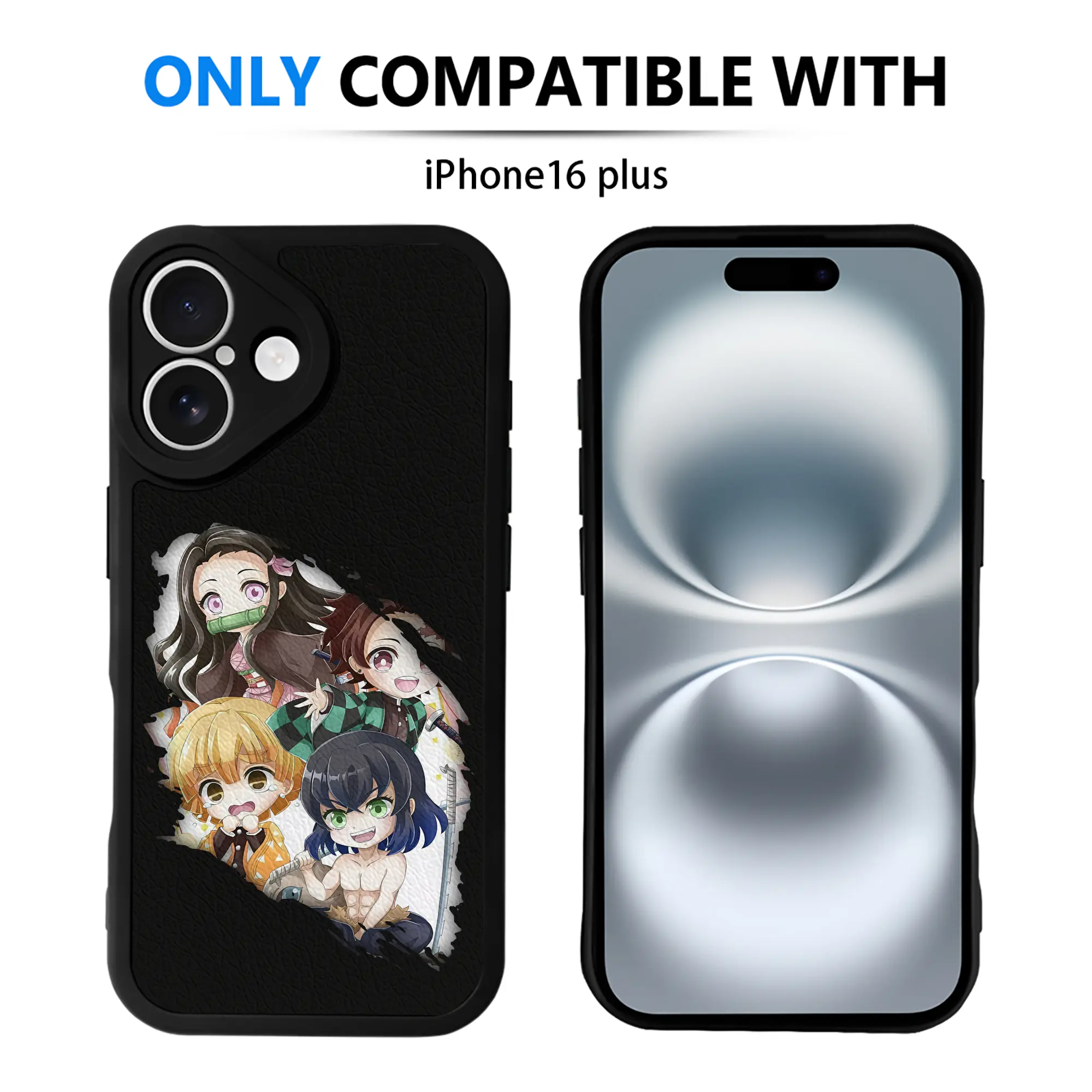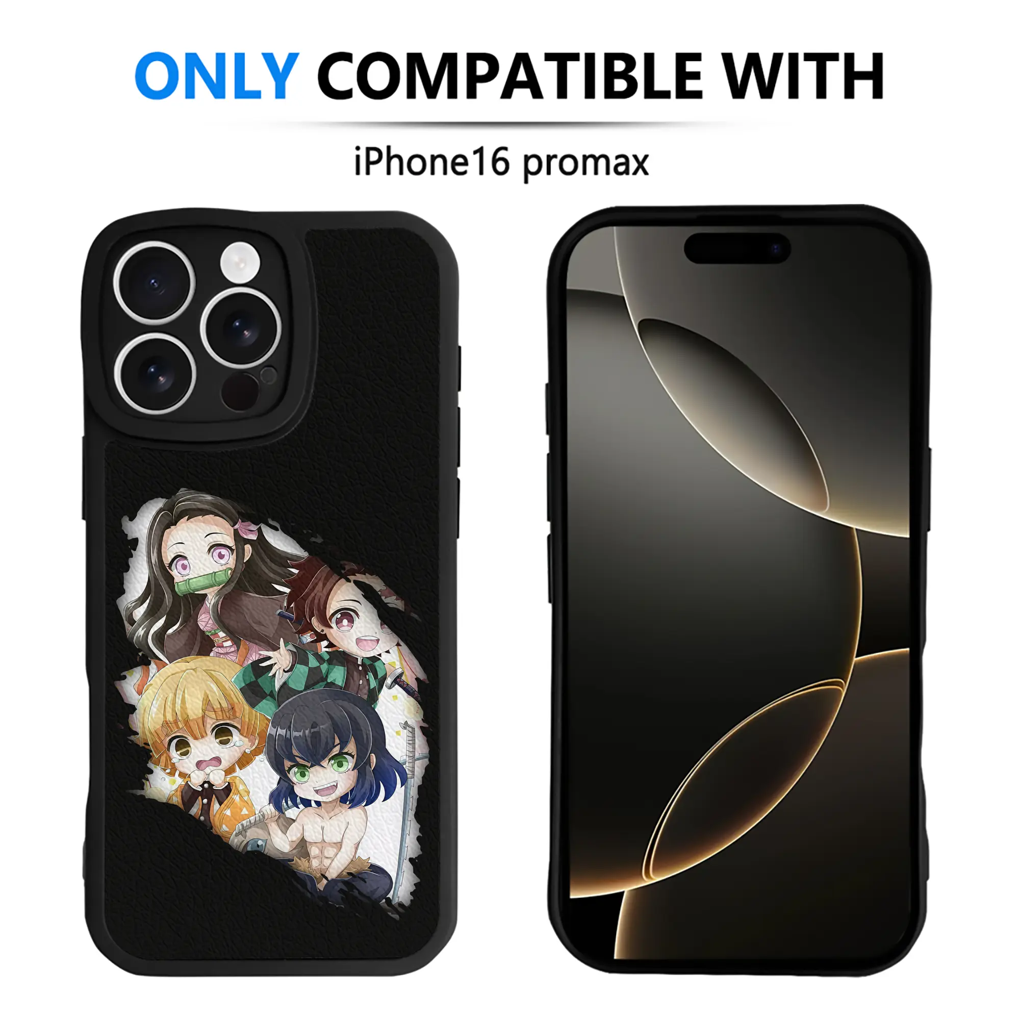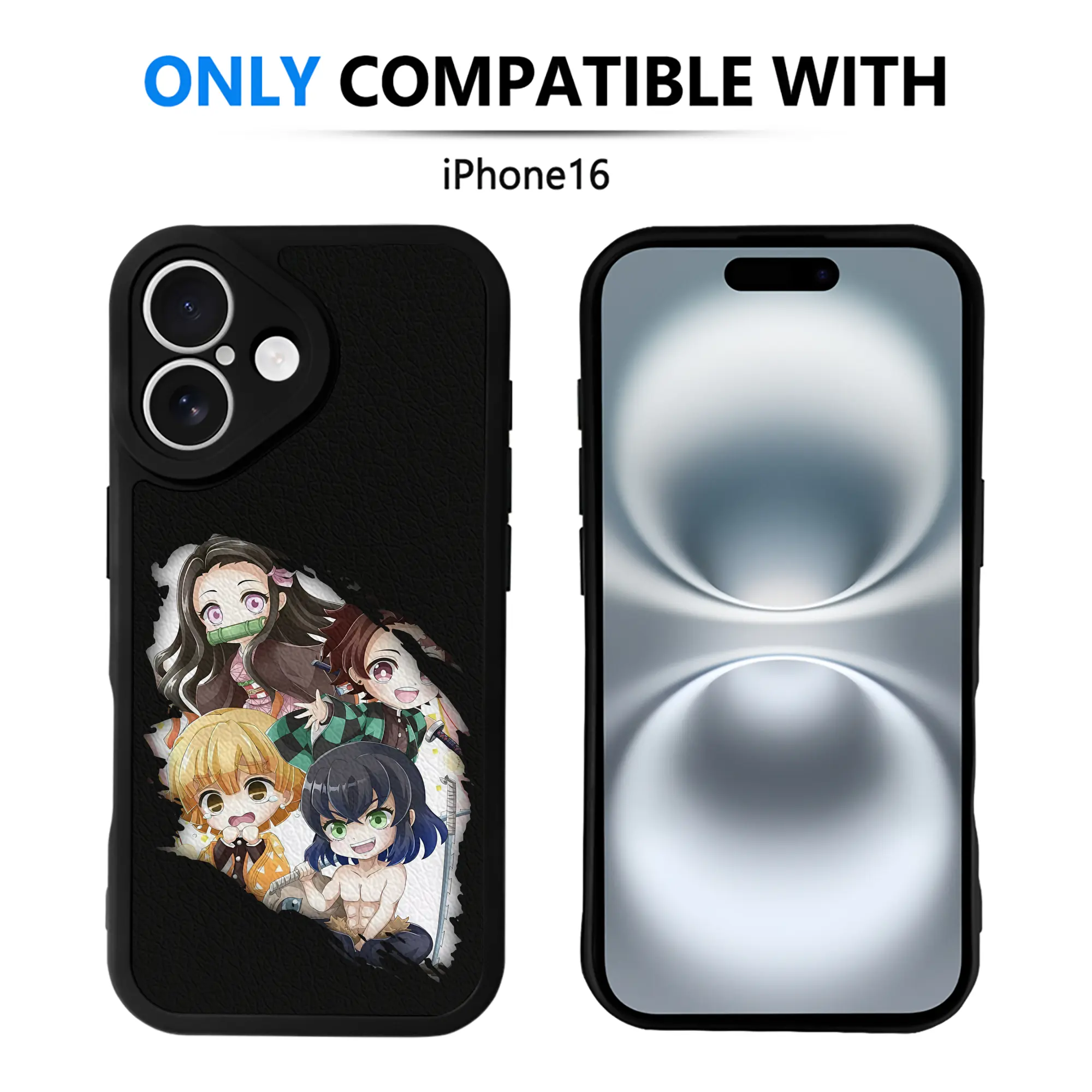 鬼滅の刃 グッズ,竈門 禰豆子 - IPhone 16シリーズ対応 ・ シリコンスマホケース ・ レザー調 ・ 高精度フィット ・ 耐衝撃 ・ ワイヤレス充電対応 ・ 精密カット