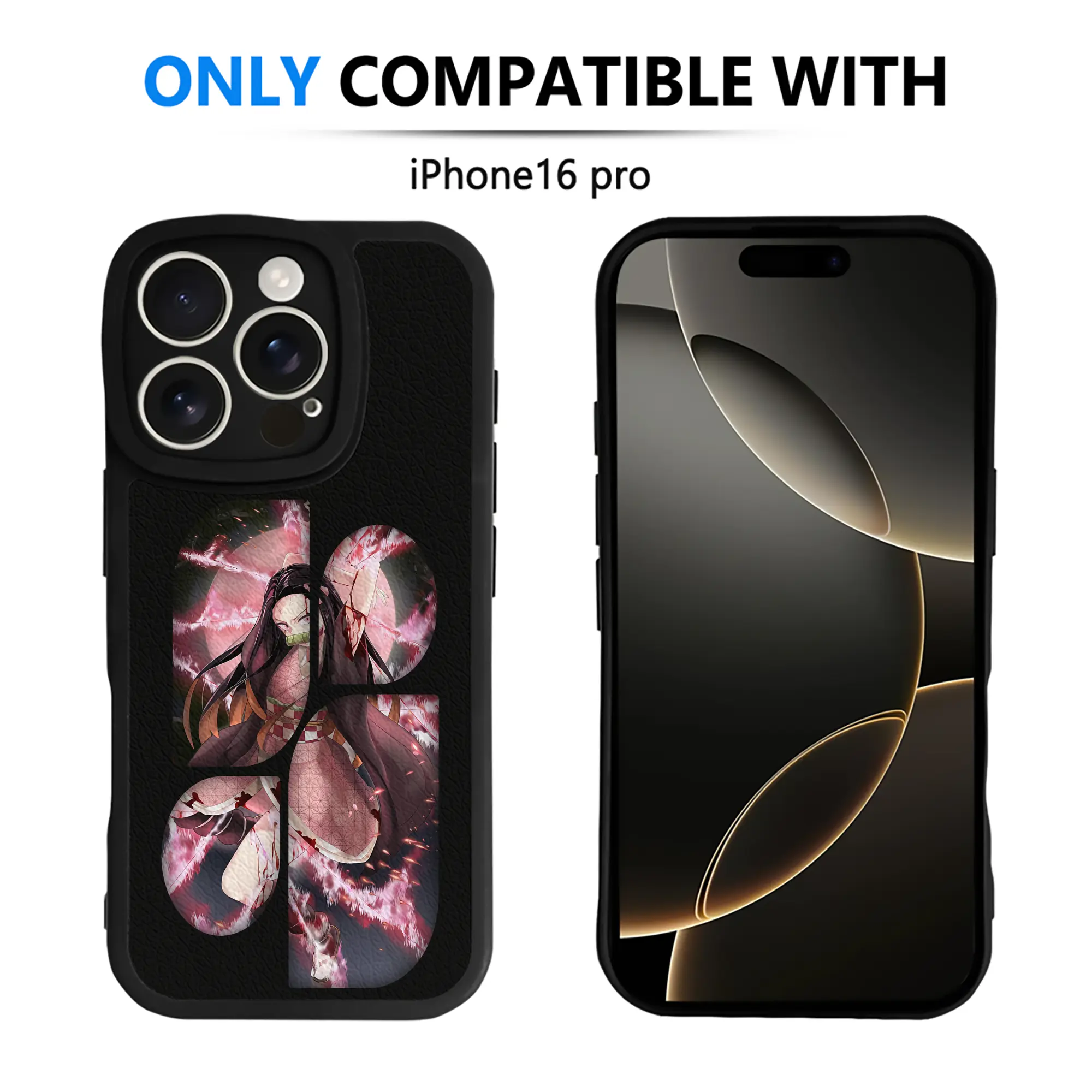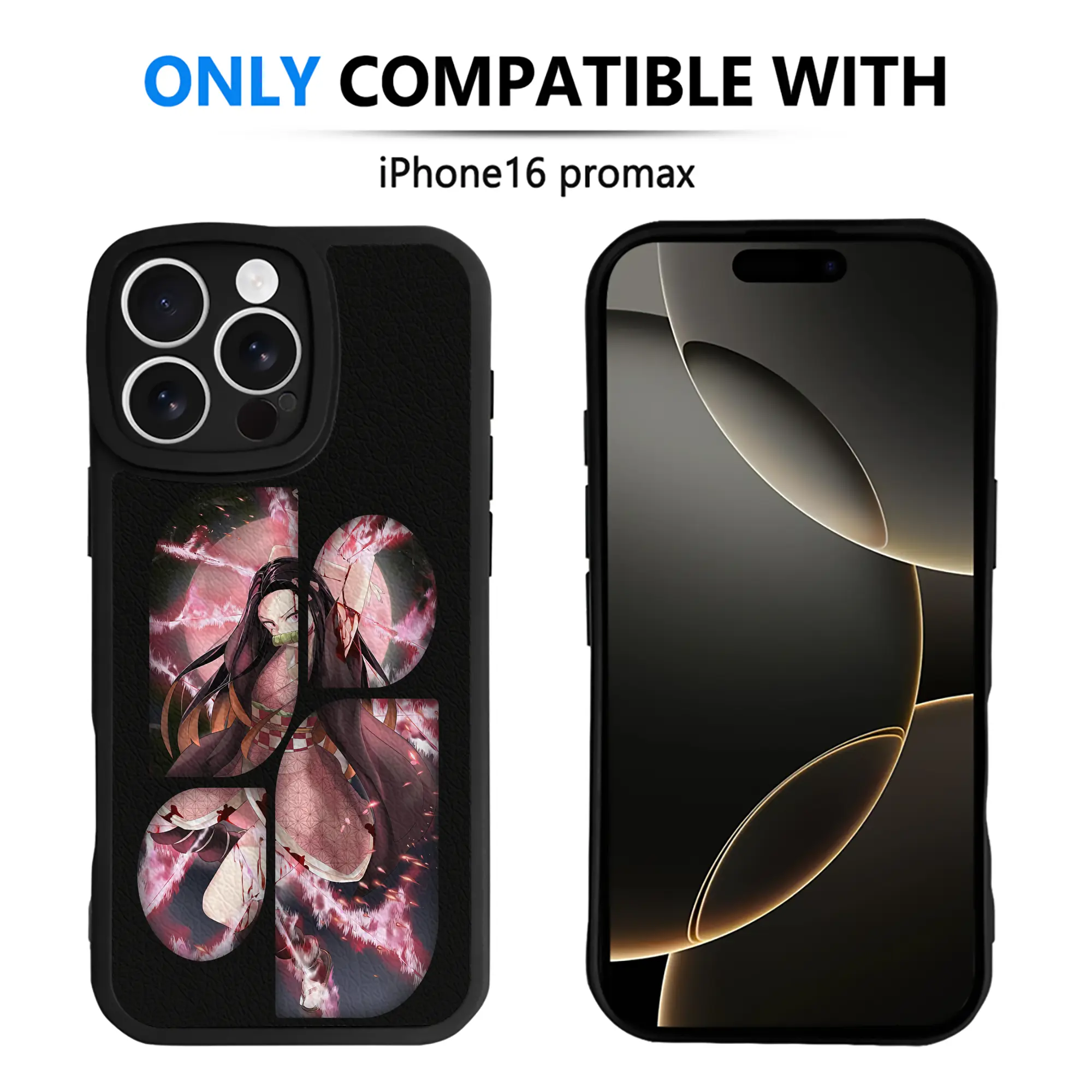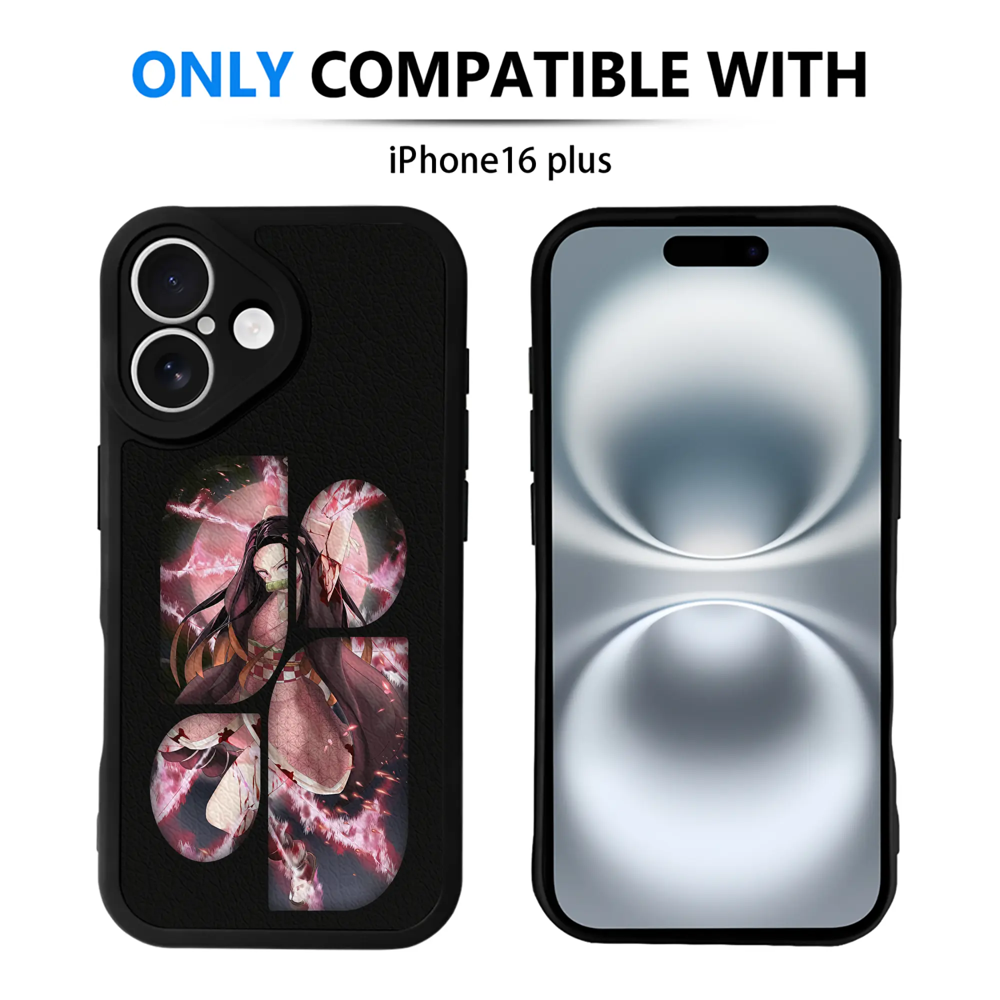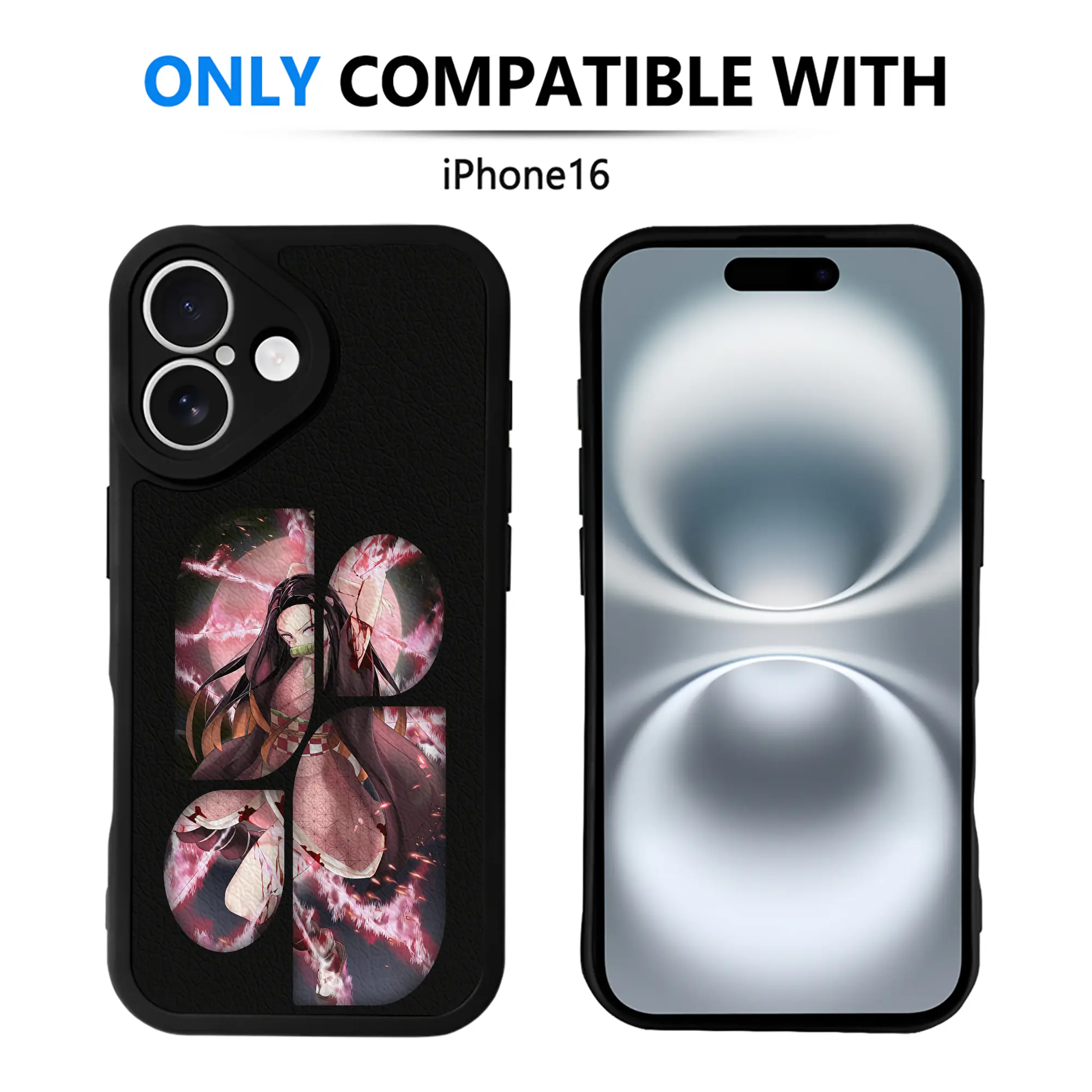 鬼滅の刃 グッズ,竈門 禰豆子 - IPhone 16シリーズ対応 ・ シリコンスマホケース ・ レザー調 ・ 高精度フィット ・ 耐衝撃 ・ ワイヤレス充電対応 ・ 精密カット