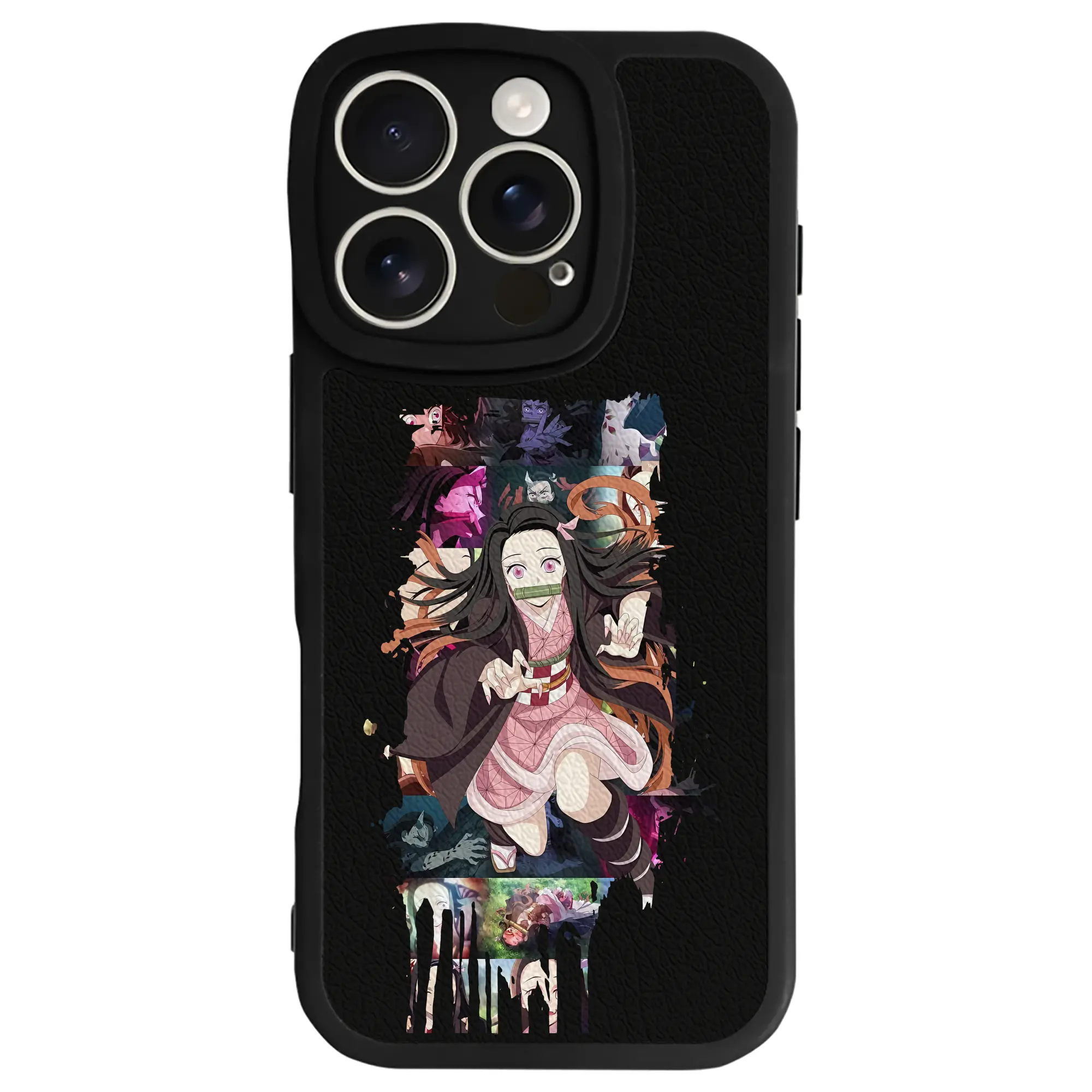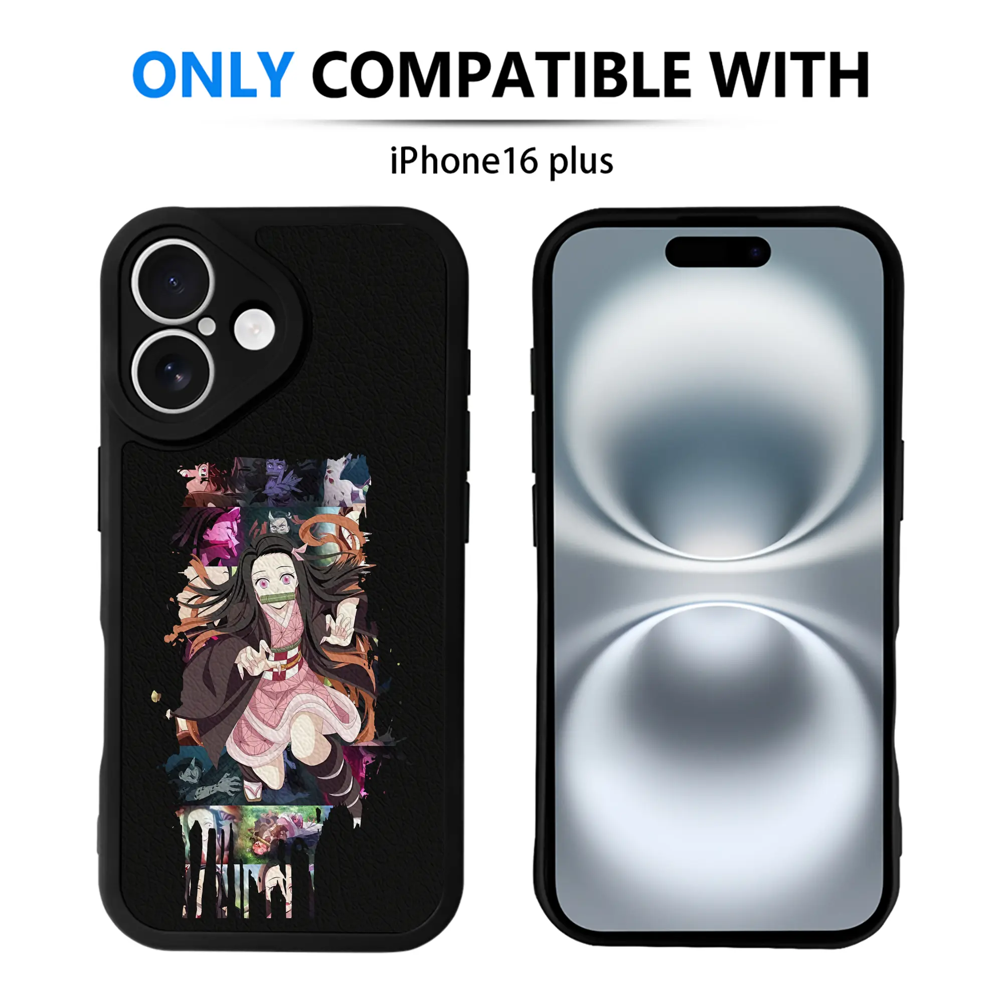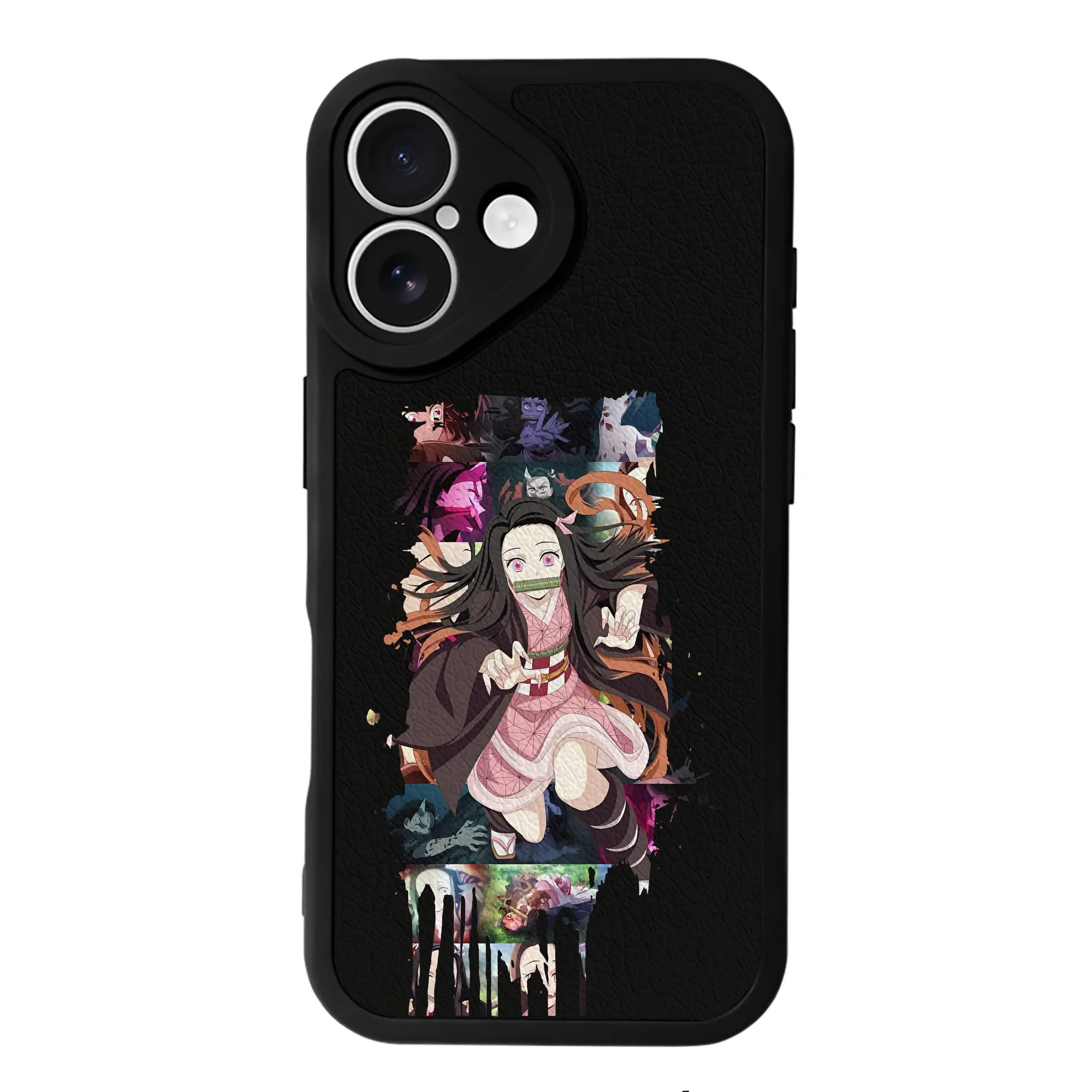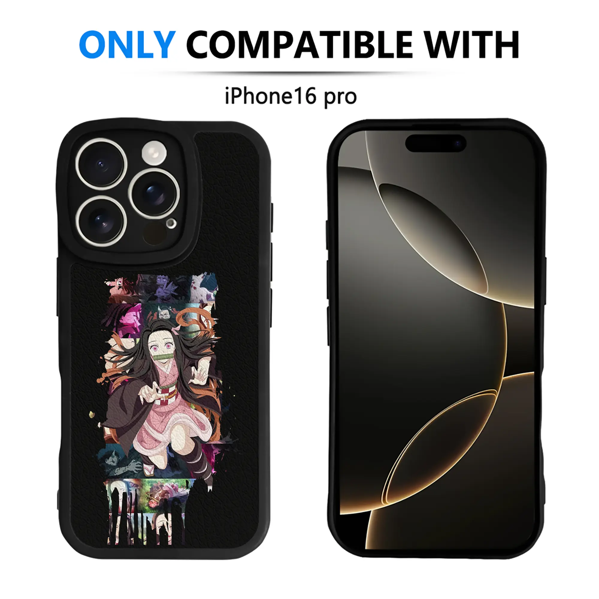 鬼滅の刃 グッズ,竈門 禰豆子 - IPhone 16シリーズ対応 ・ シリコンスマホケース ・ レザー調 ・ 高精度フィット ・ 耐衝撃 ・ ワイヤレス充電対応 ・ 精密カット