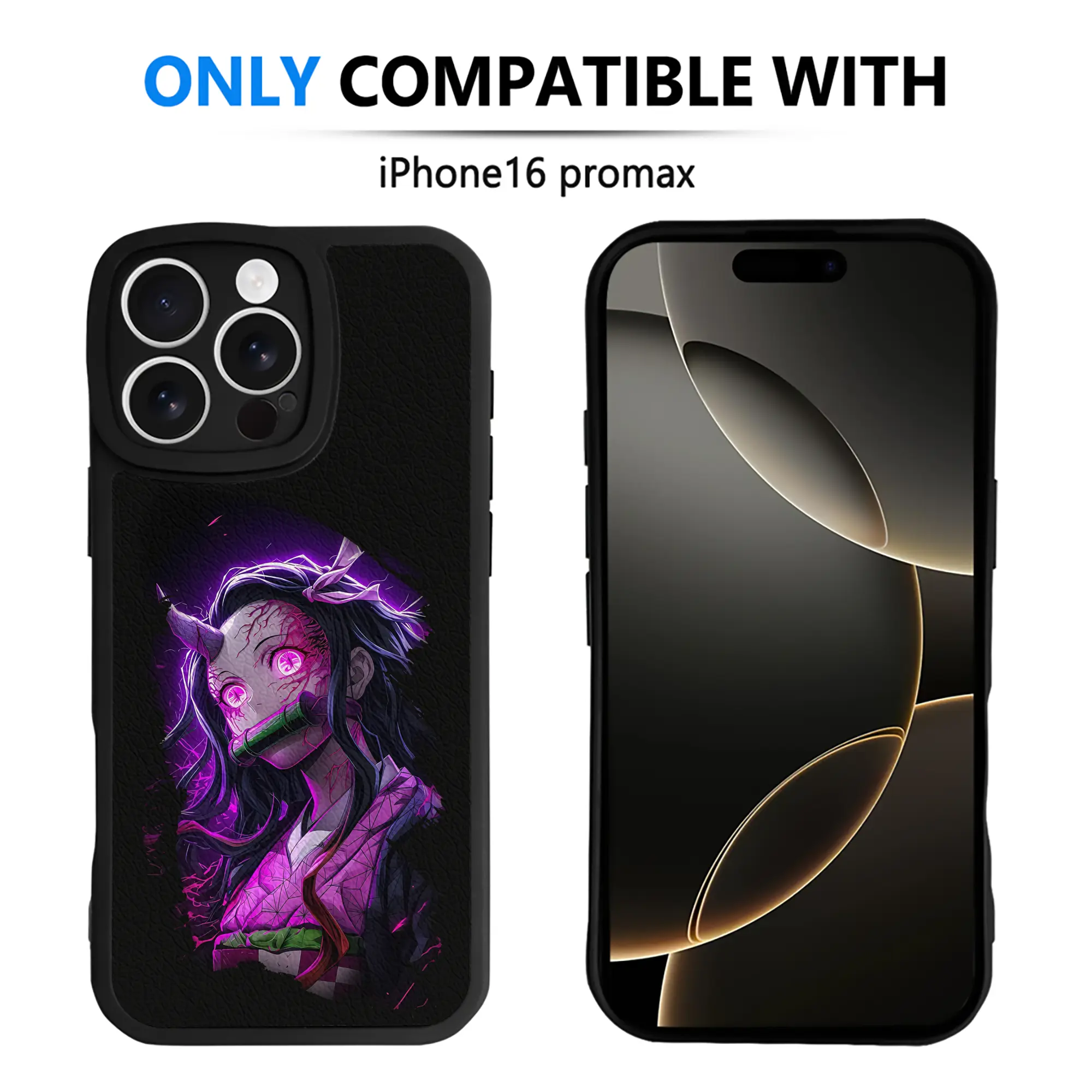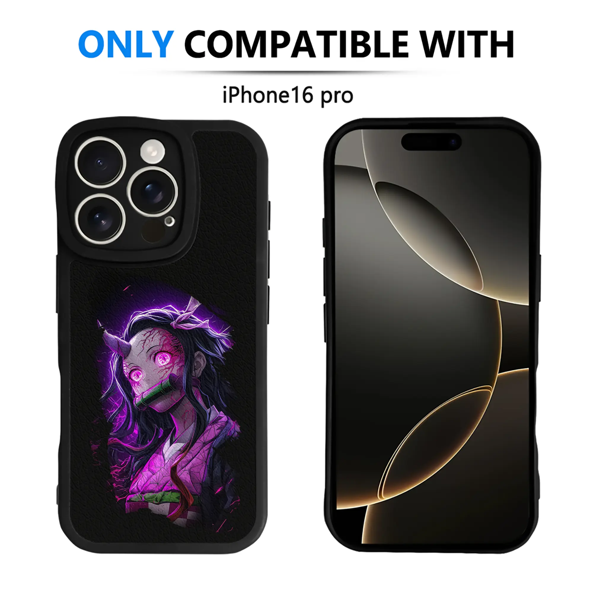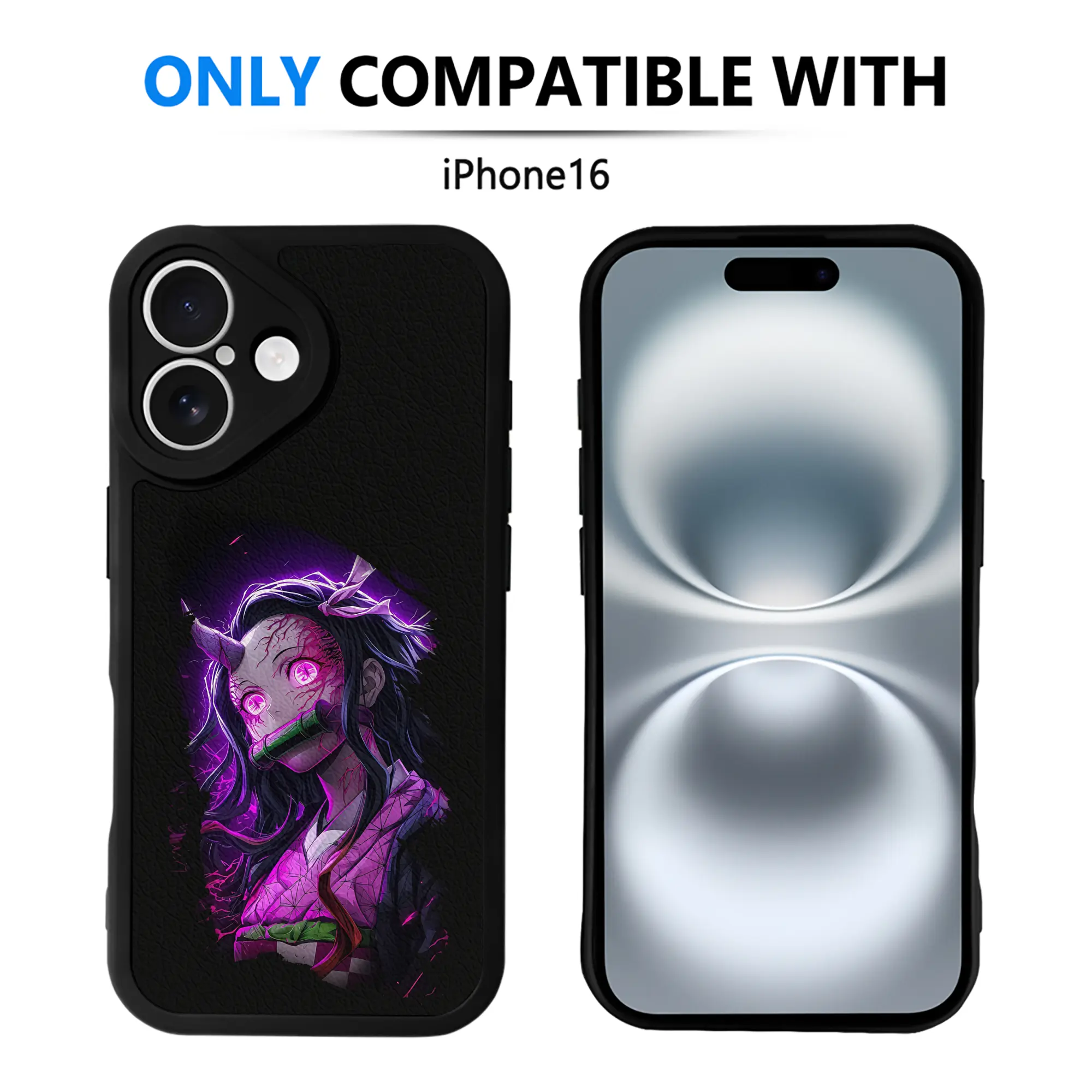 鬼滅の刃 グッズ,竈門 禰豆子 - IPhone 16シリーズ対応 ・ シリコンスマホケース ・ レザー調 ・ 高精度フィット ・ 耐衝撃 ・ ワイヤレス充電対応 ・ 精密カット