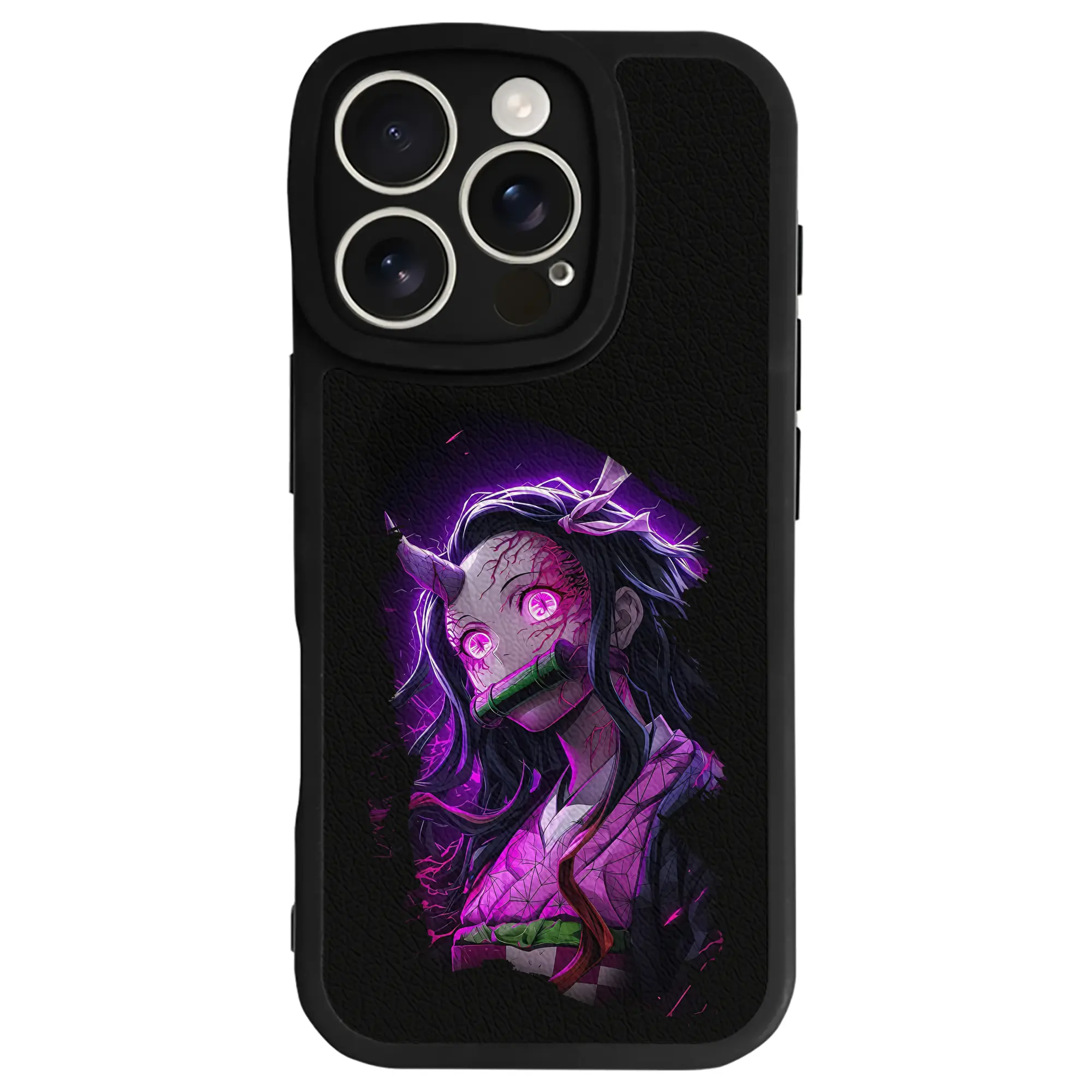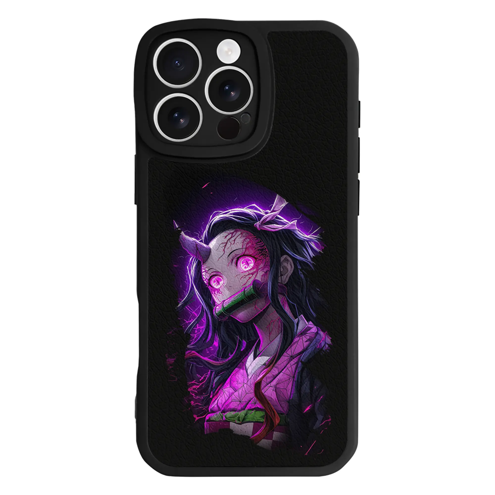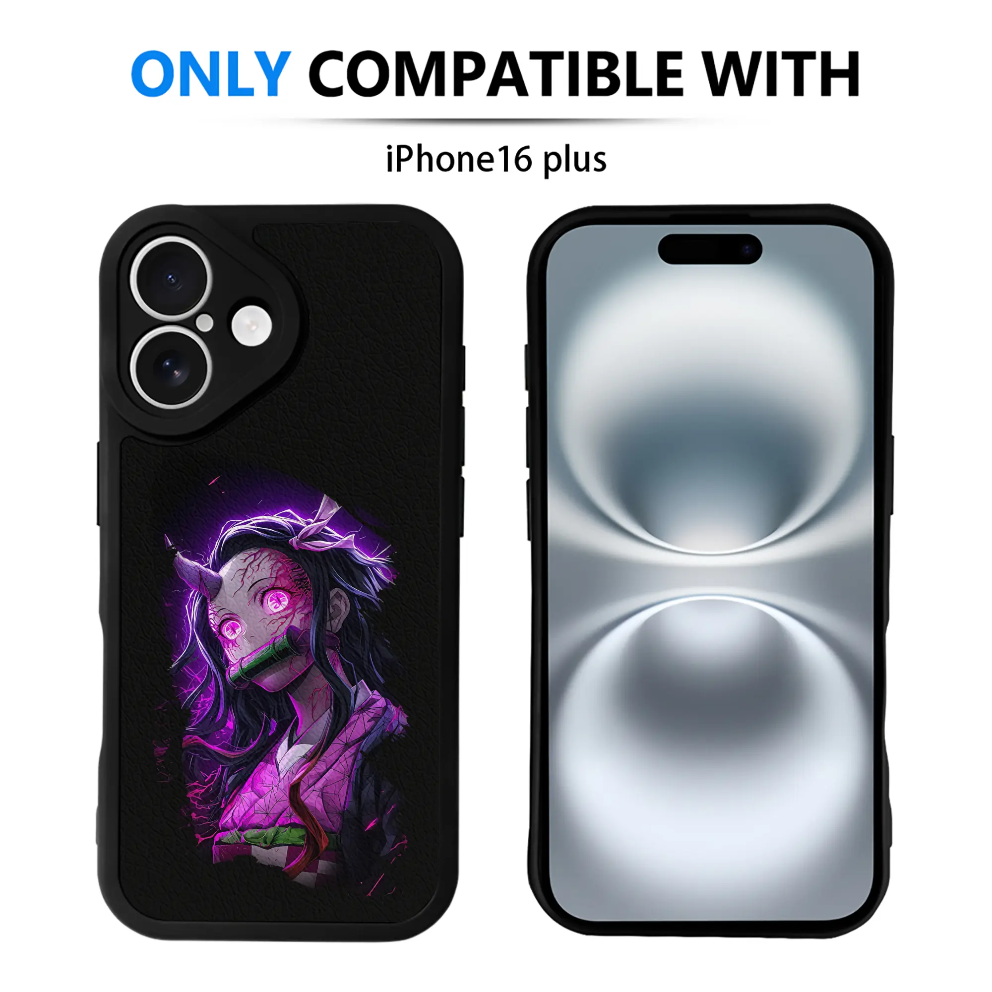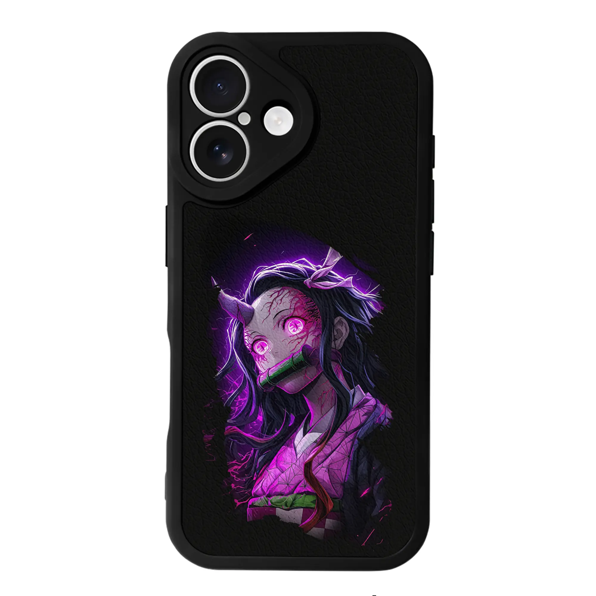 鬼滅の刃 グッズ,竈門 禰豆子 - IPhone 16シリーズ対応 ・ シリコンスマホケース ・ レザー調 ・ 高精度フィット ・ 耐衝撃 ・ ワイヤレス充電対応 ・ 精密カット