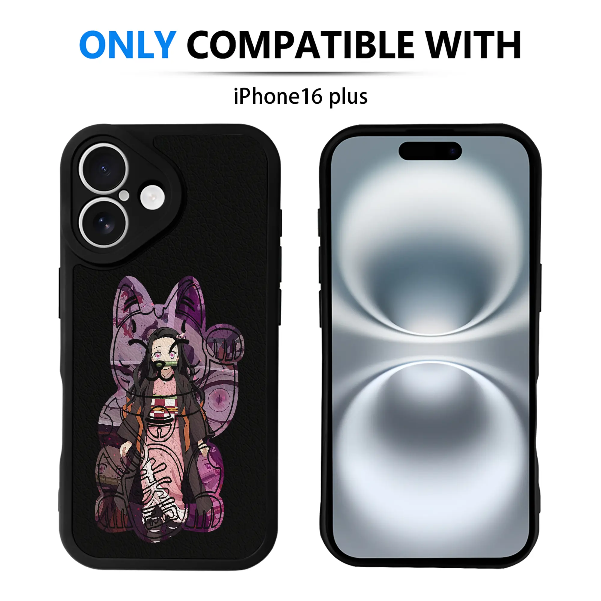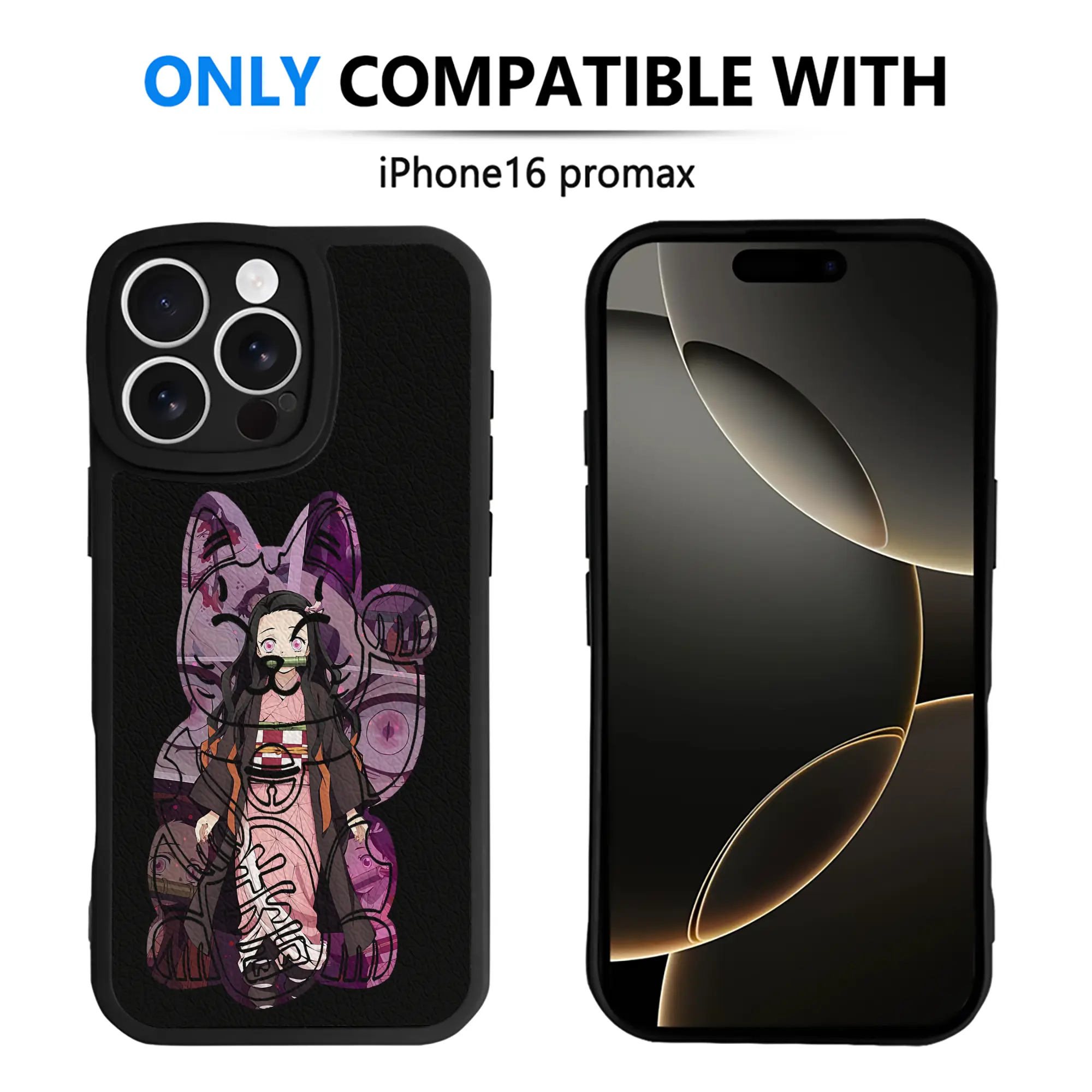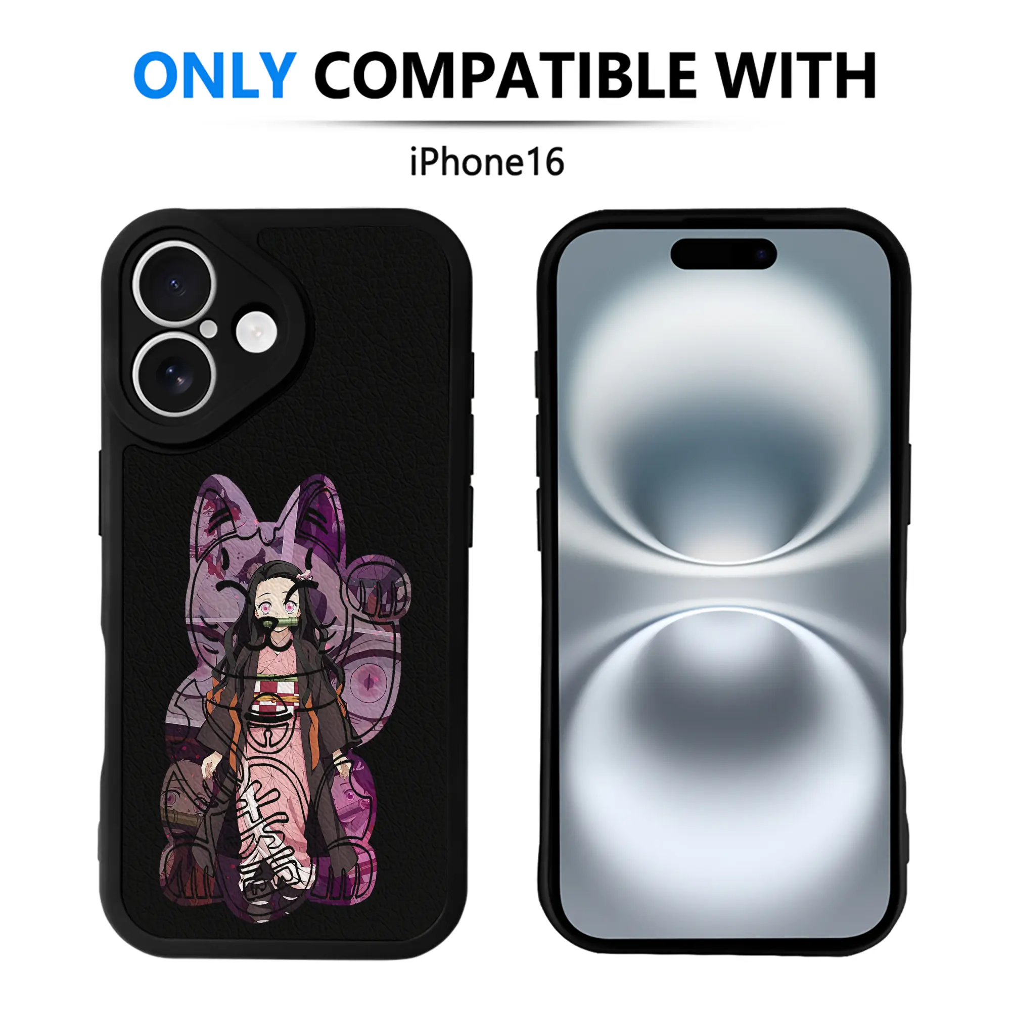 鬼滅の刃 グッズ,竈門 禰豆子 - IPhone 16シリーズ対応 ・ シリコンスマホケース ・ レザー調 ・ 高精度フィット ・ 耐衝撃 ・ ワイヤレス充電対応 ・ 精密カット