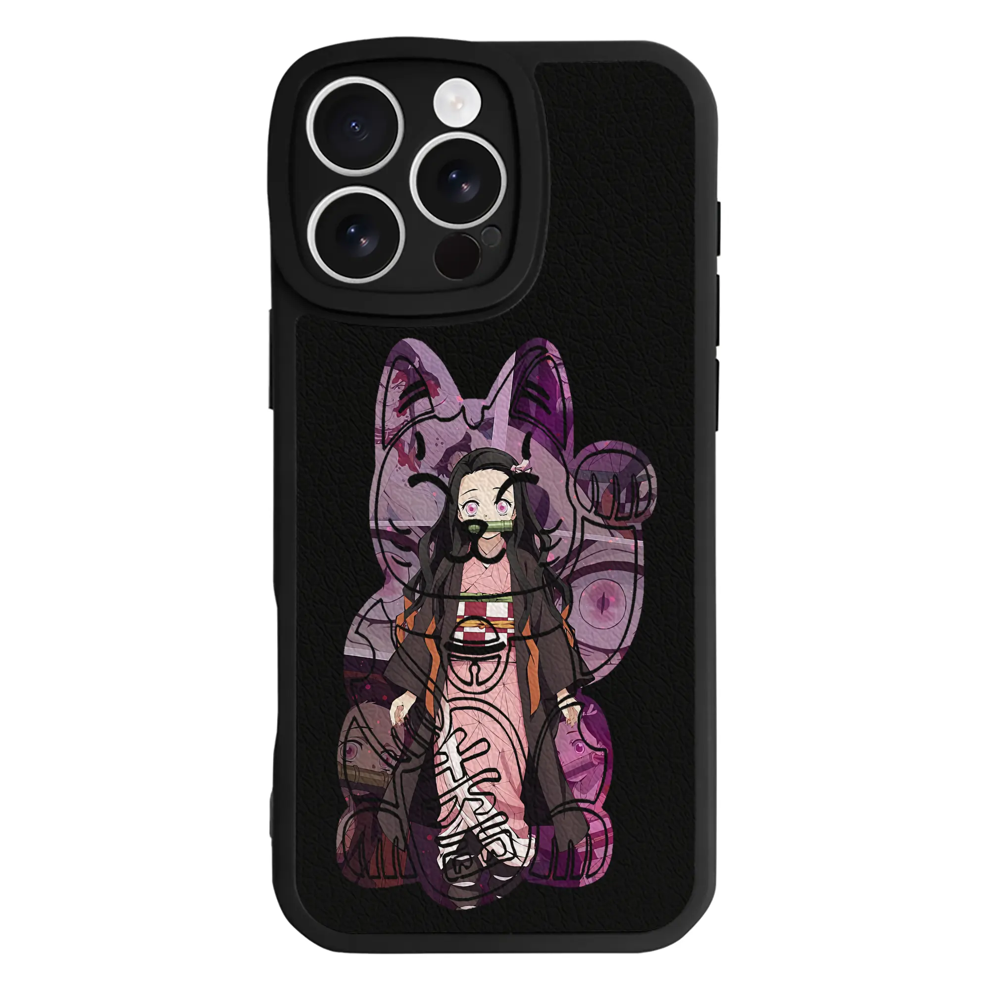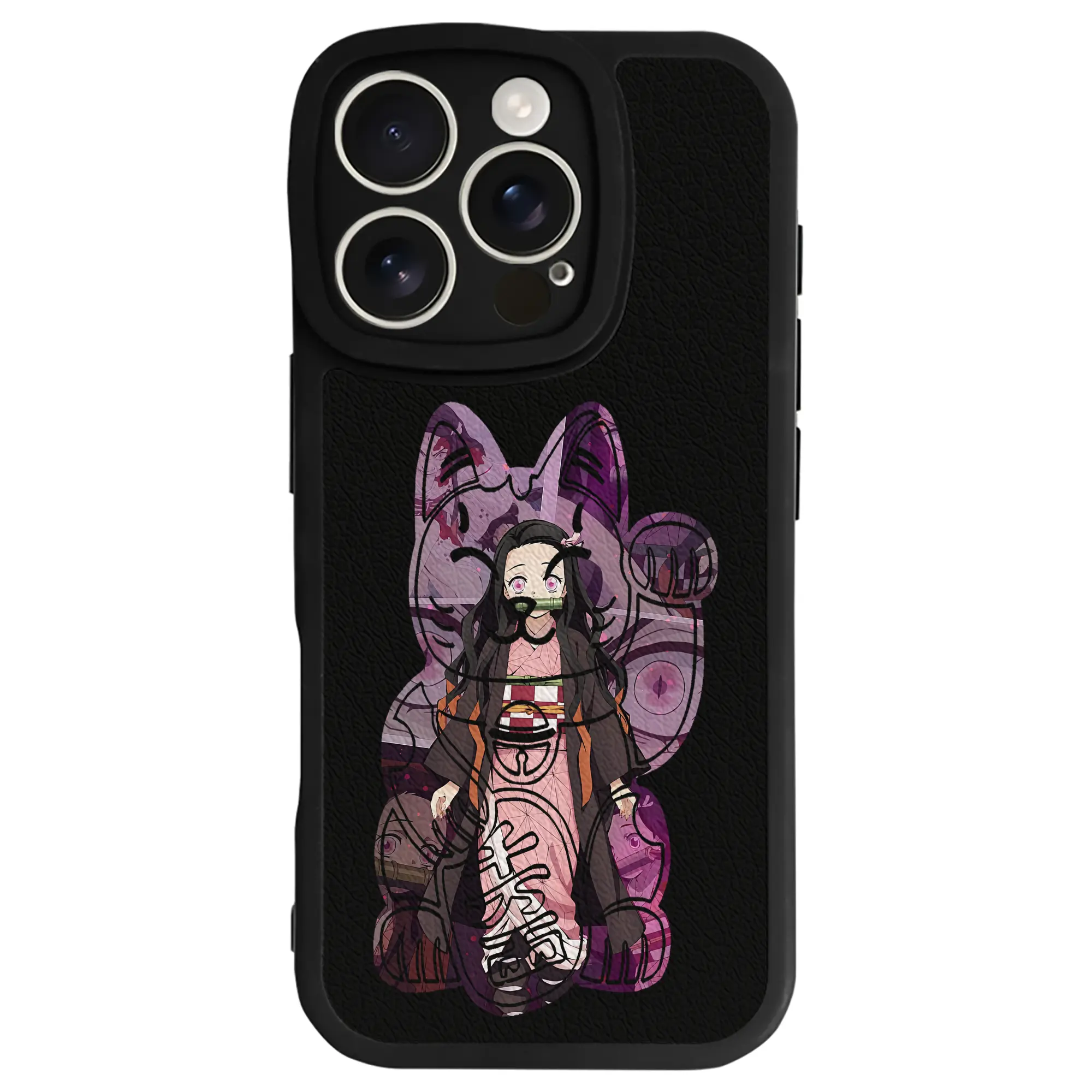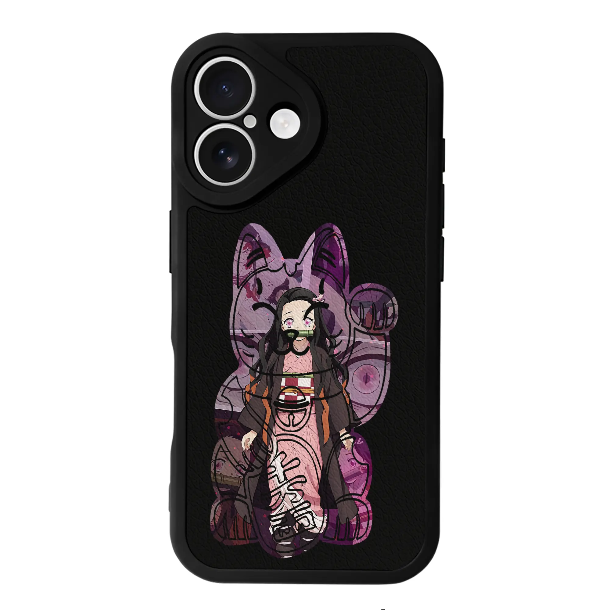 鬼滅の刃 グッズ,竈門 禰豆子 - IPhone 16シリーズ対応 ・ シリコンスマホケース ・ レザー調 ・ 高精度フィット ・ 耐衝撃 ・ ワイヤレス充電対応 ・ 精密カット