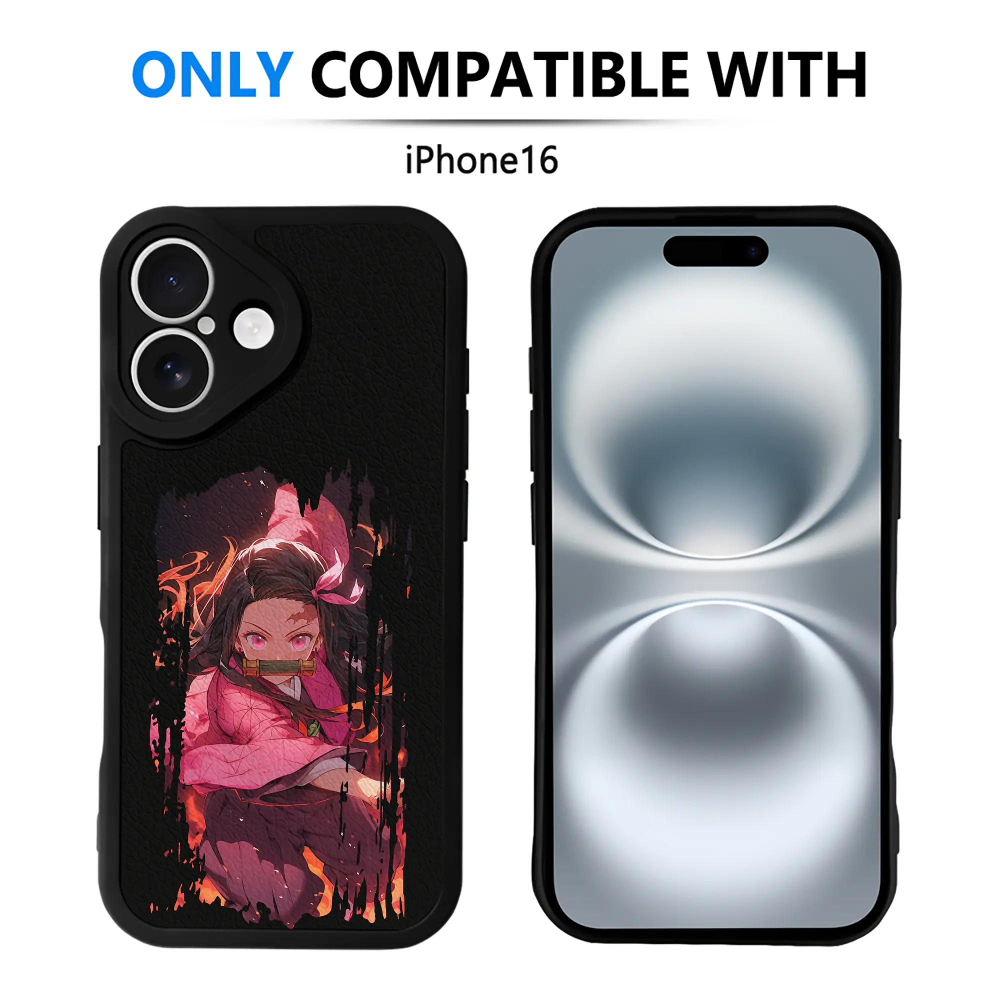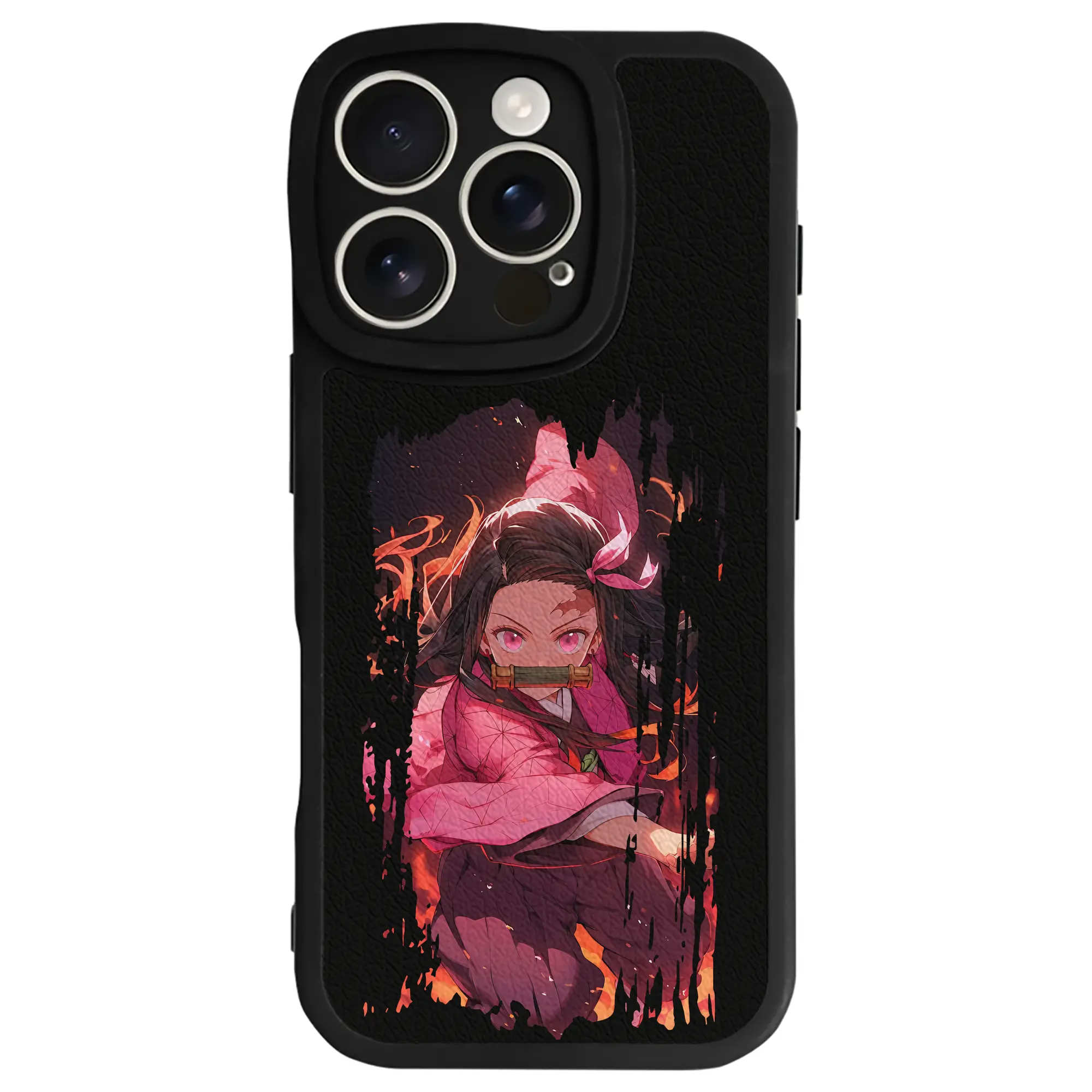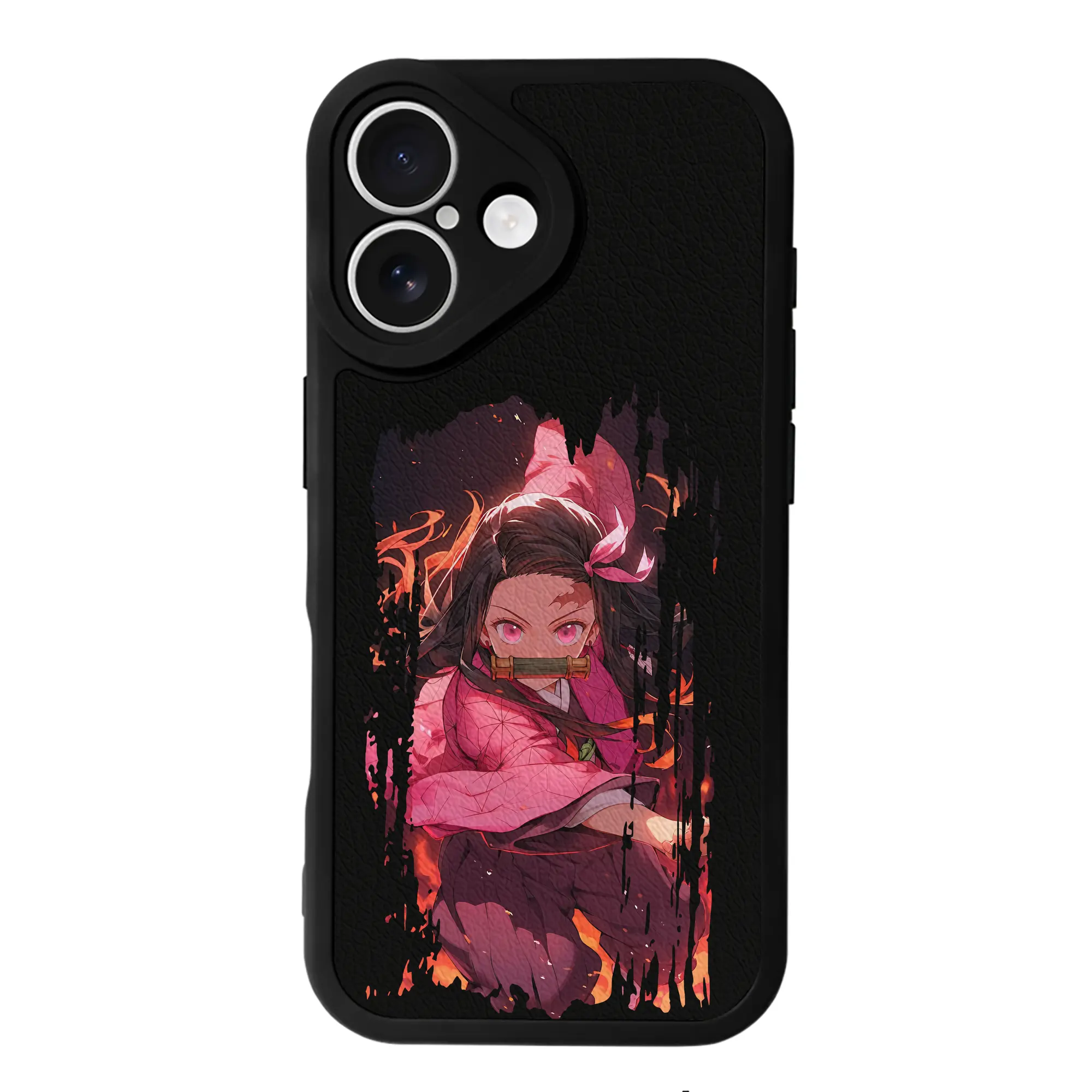 鬼滅の刃 グッズ,竈門 禰豆子 - IPhone 16シリーズ対応 ・ シリコンスマホケース ・ レザー調 ・ 高精度フィット ・ 耐衝撃 ・ ワイヤレス充電対応 ・ 精密カット
