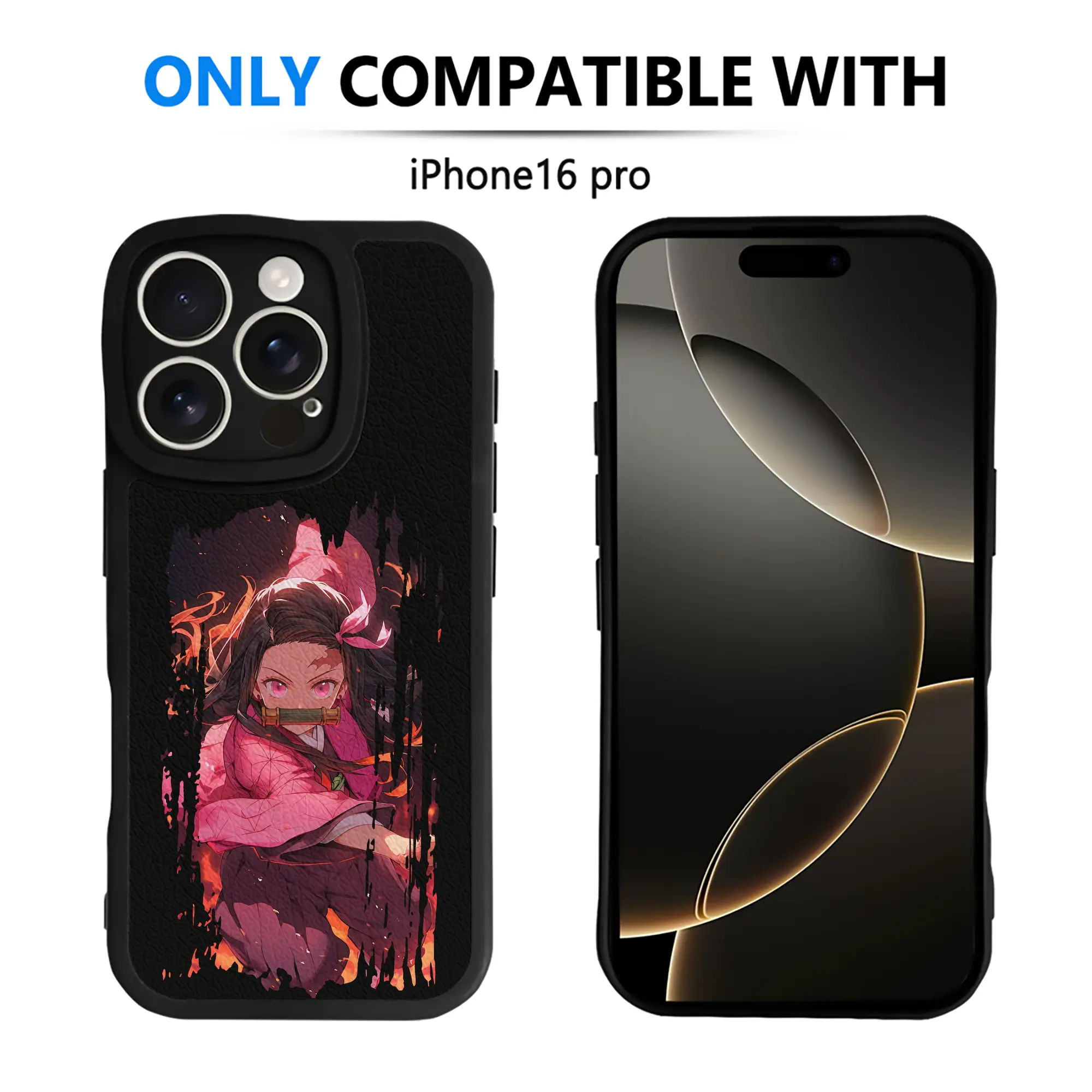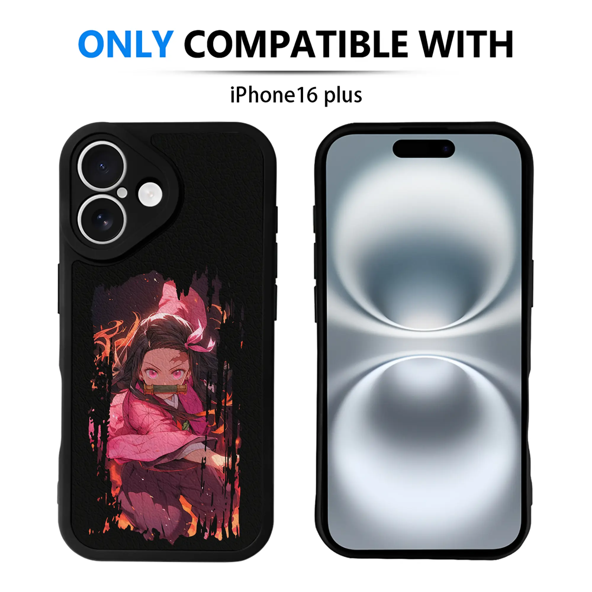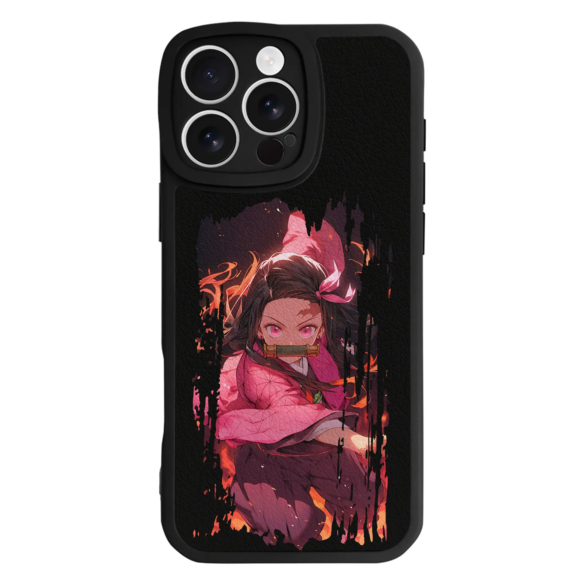 鬼滅の刃 グッズ,竈門 禰豆子 - IPhone 16シリーズ対応 ・ シリコンスマホケース ・ レザー調 ・ 高精度フィット ・ 耐衝撃 ・ ワイヤレス充電対応 ・ 精密カット