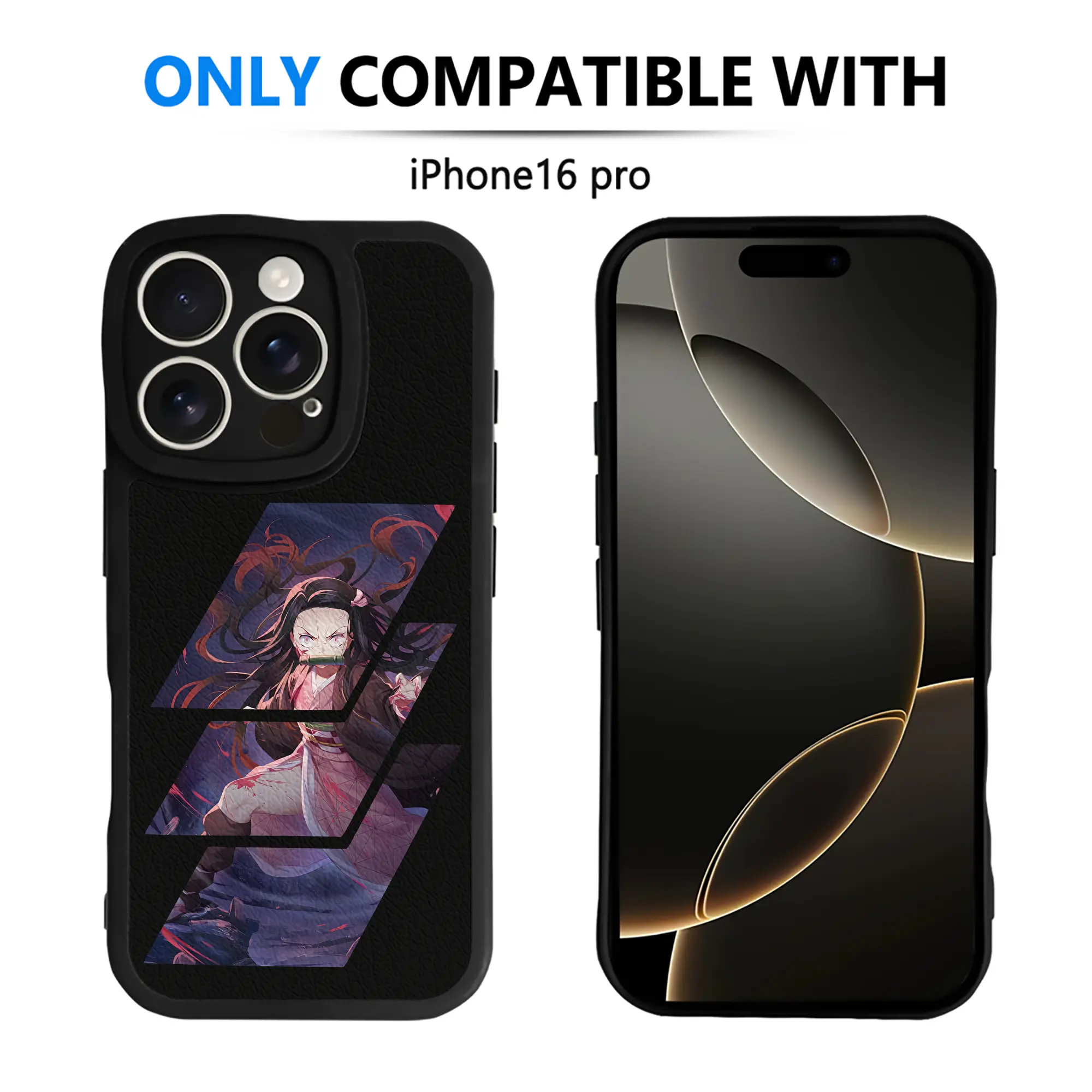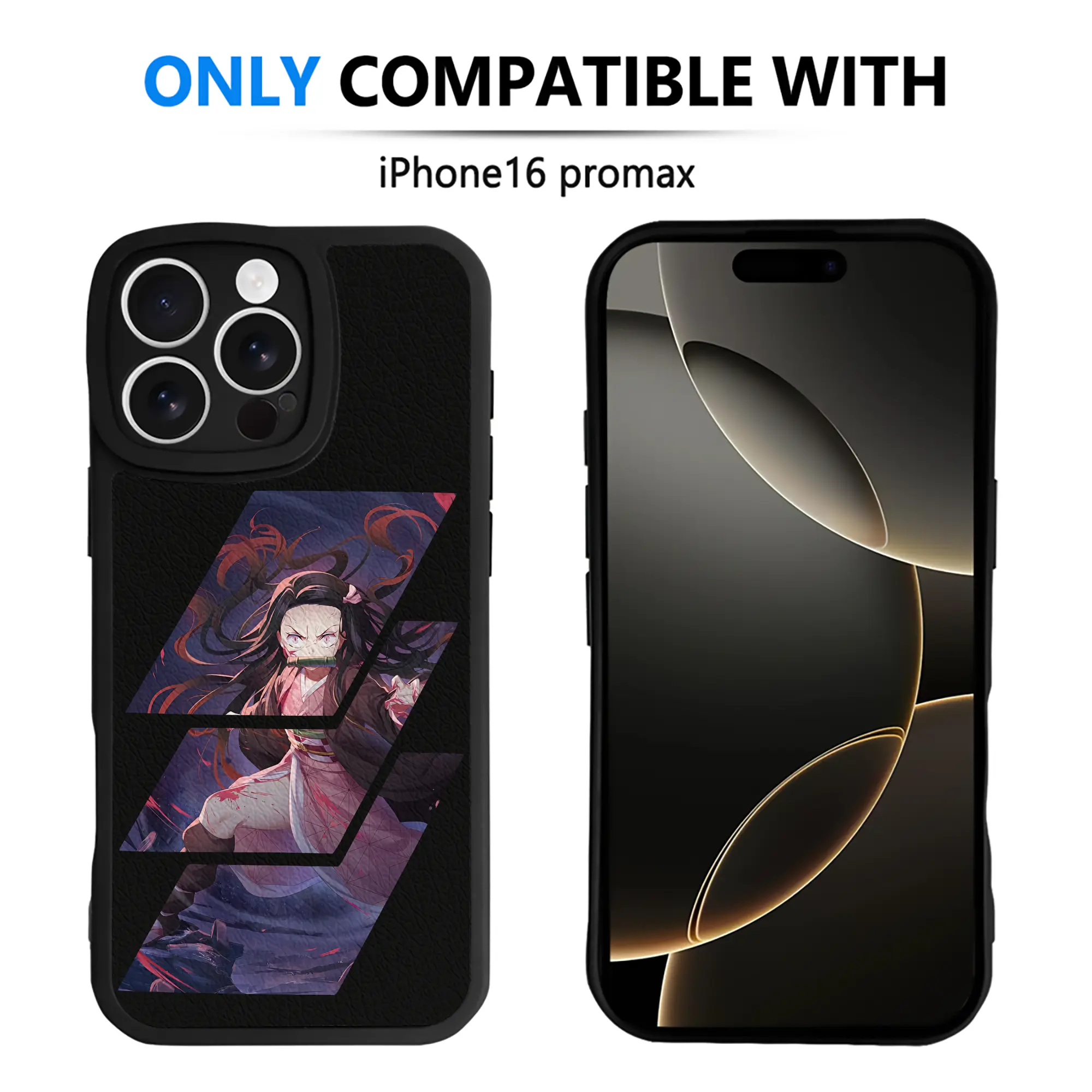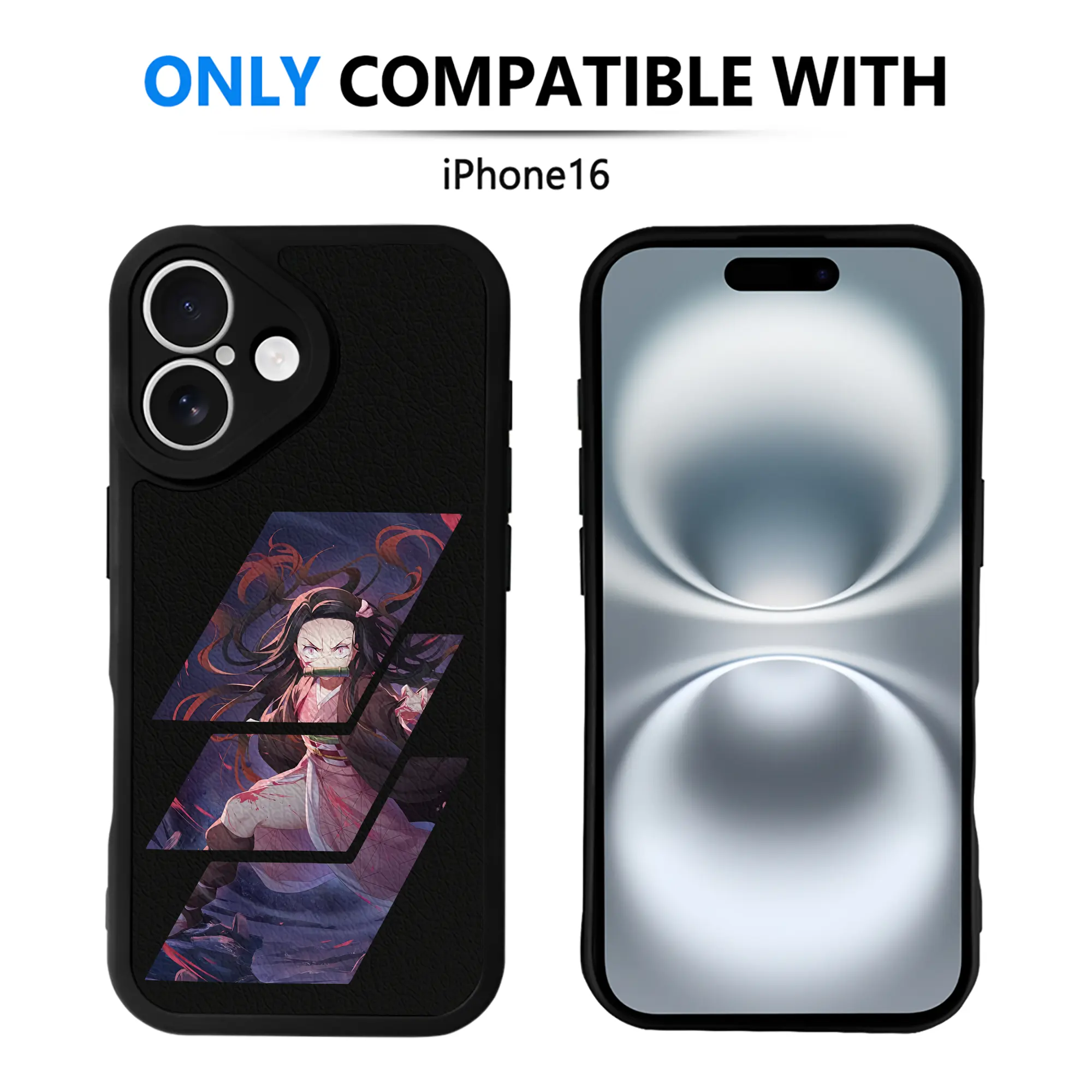 鬼滅の刃 グッズ,竈門 禰豆子 - IPhone 16シリーズ対応 ・ シリコンスマホケース ・ レザー調 ・ 高精度フィット ・ 耐衝撃 ・ ワイヤレス充電対応 ・ 精密カット