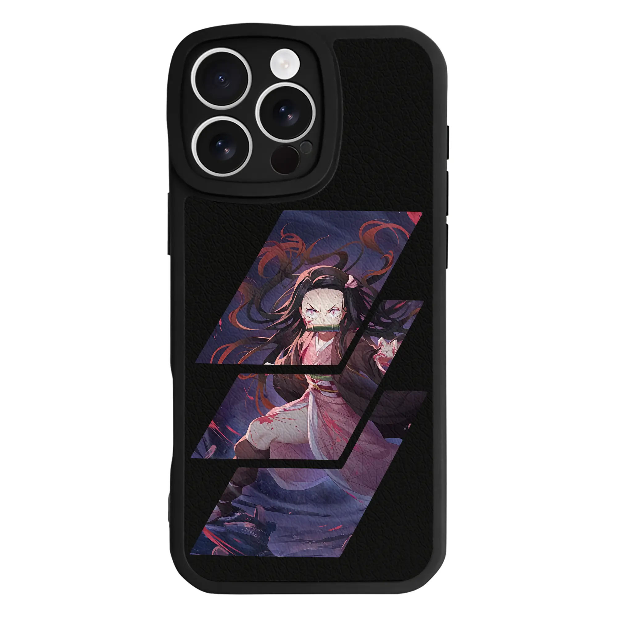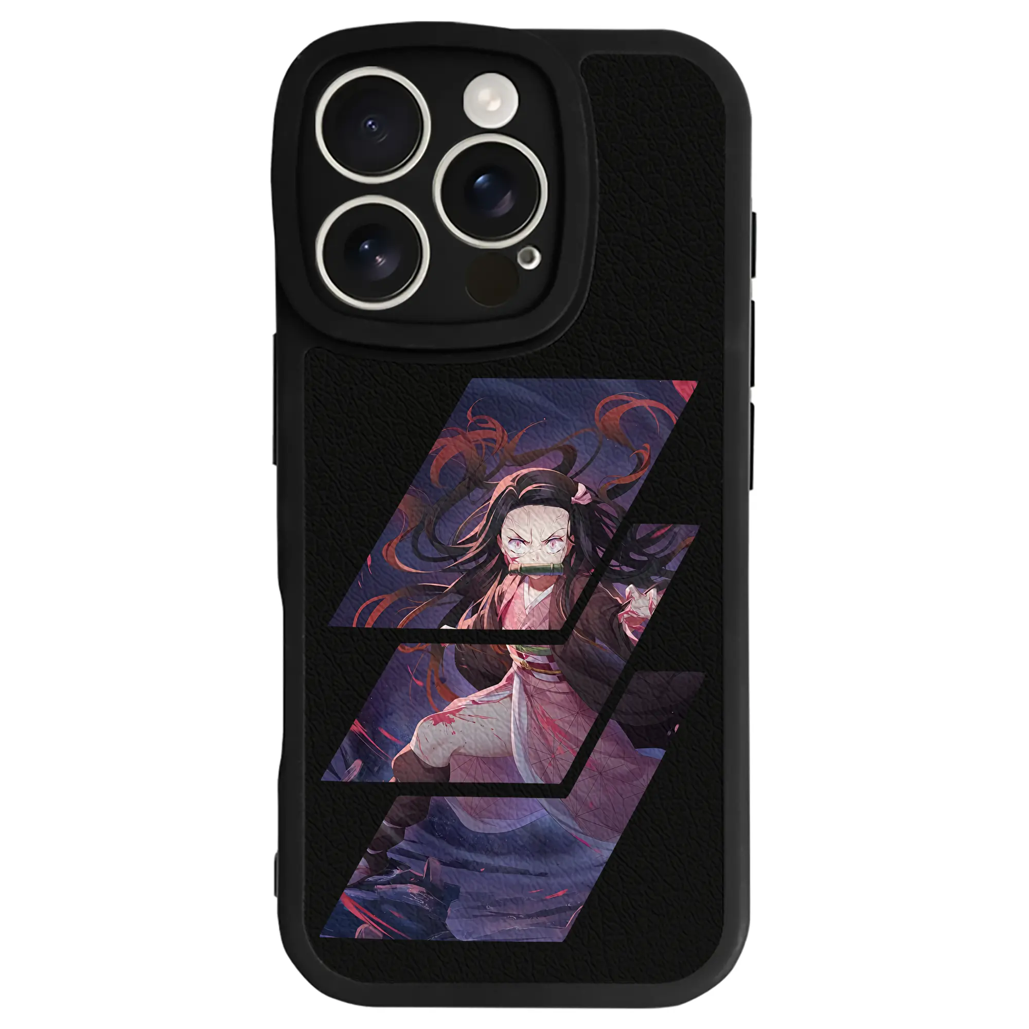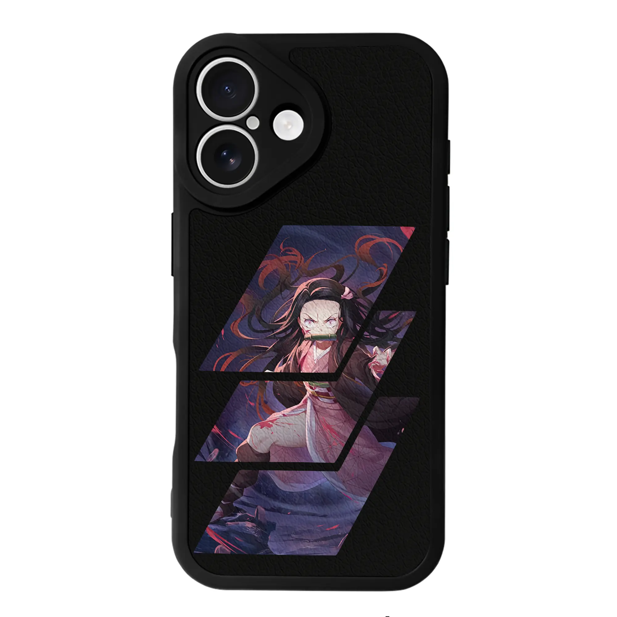 鬼滅の刃 グッズ,竈門 禰豆子 - IPhone 16シリーズ対応 ・ シリコンスマホケース ・ レザー調 ・ 高精度フィット ・ 耐衝撃 ・ ワイヤレス充電対応 ・ 精密カット
