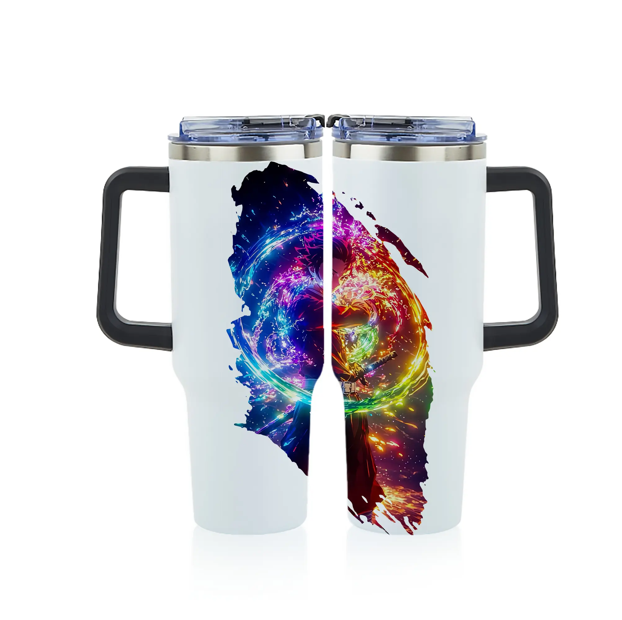 この40オンスカータンブラーは、洗練されたフルラップUVプリントで鮮やかな色彩と優れた耐久性を実現。304ステンレス製内側と201ステンレス製外側の組み合わせにより、長期間の使用に耐え、錆びにくく安全に飲料を楽しめます。