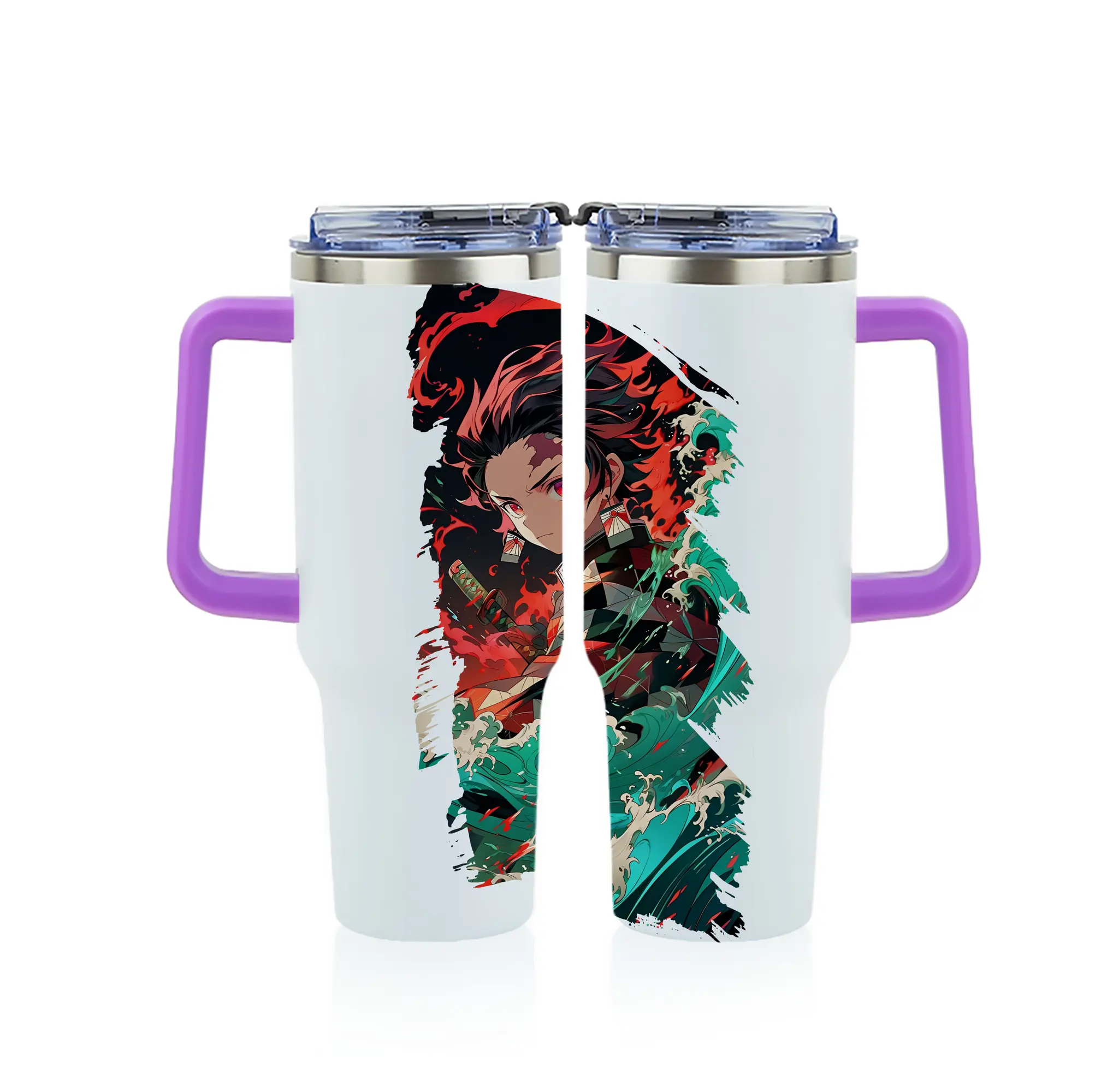 鬼滅の刃 グッズ,竈門 炭治郎 - 1200mL フルプリント車用タンブラー ・ 304ステンレス 内側 ・ 201ステンレス 外側 ・ 保温 保冷 ・ 通勤 ドライブ アウトドア用
