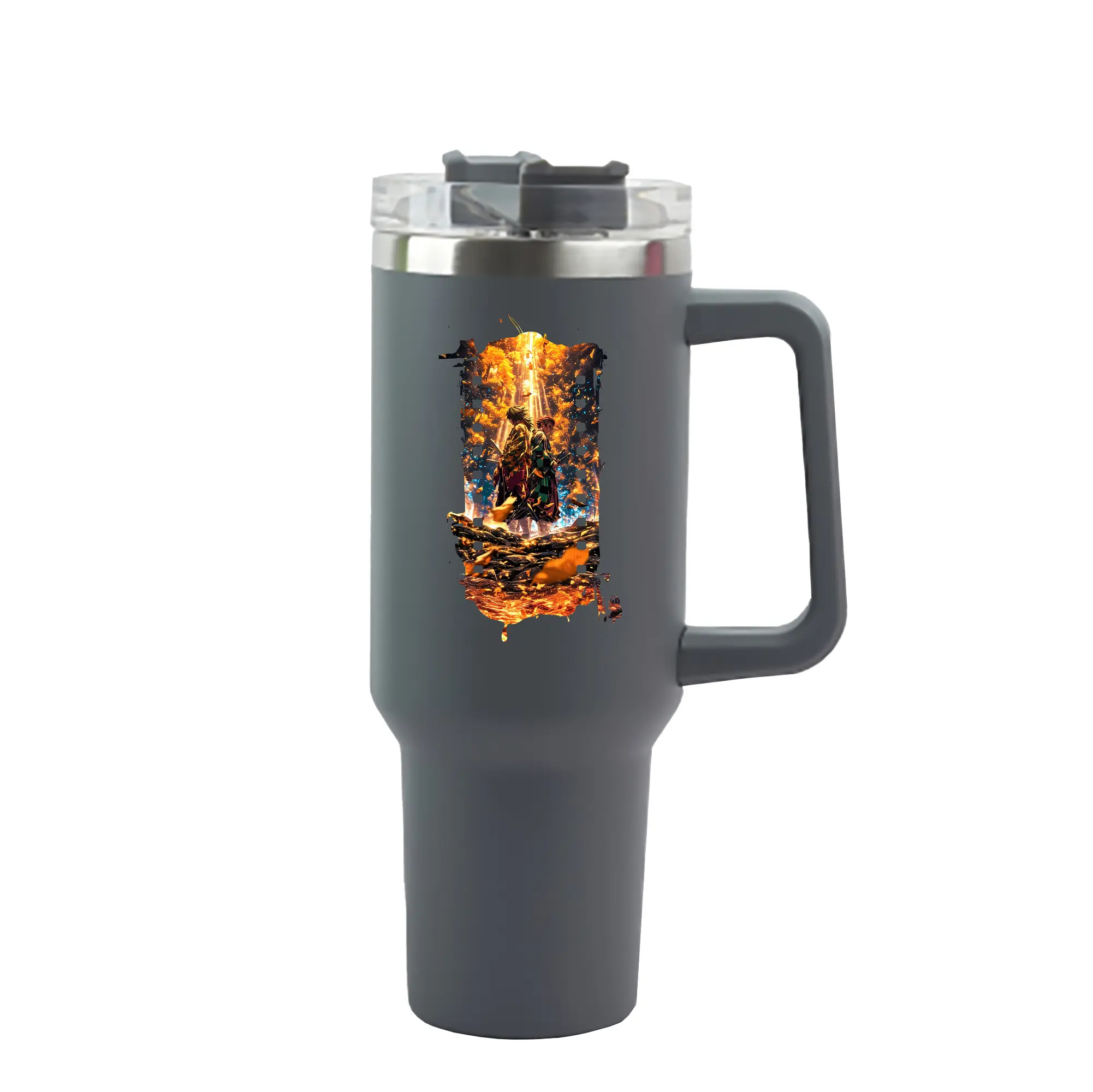 鬼滅の刃 グッズ,竈門 炭治郎 - 1200mL 車用タンブラー ・ クリスタルステッカー ・ 304ステンレス 内側 ・ 201ステンレス 外側 ・ 保温 保冷 ・ ハンドル&ストロー付き ・ 通勤 ドライブ アウトドア用