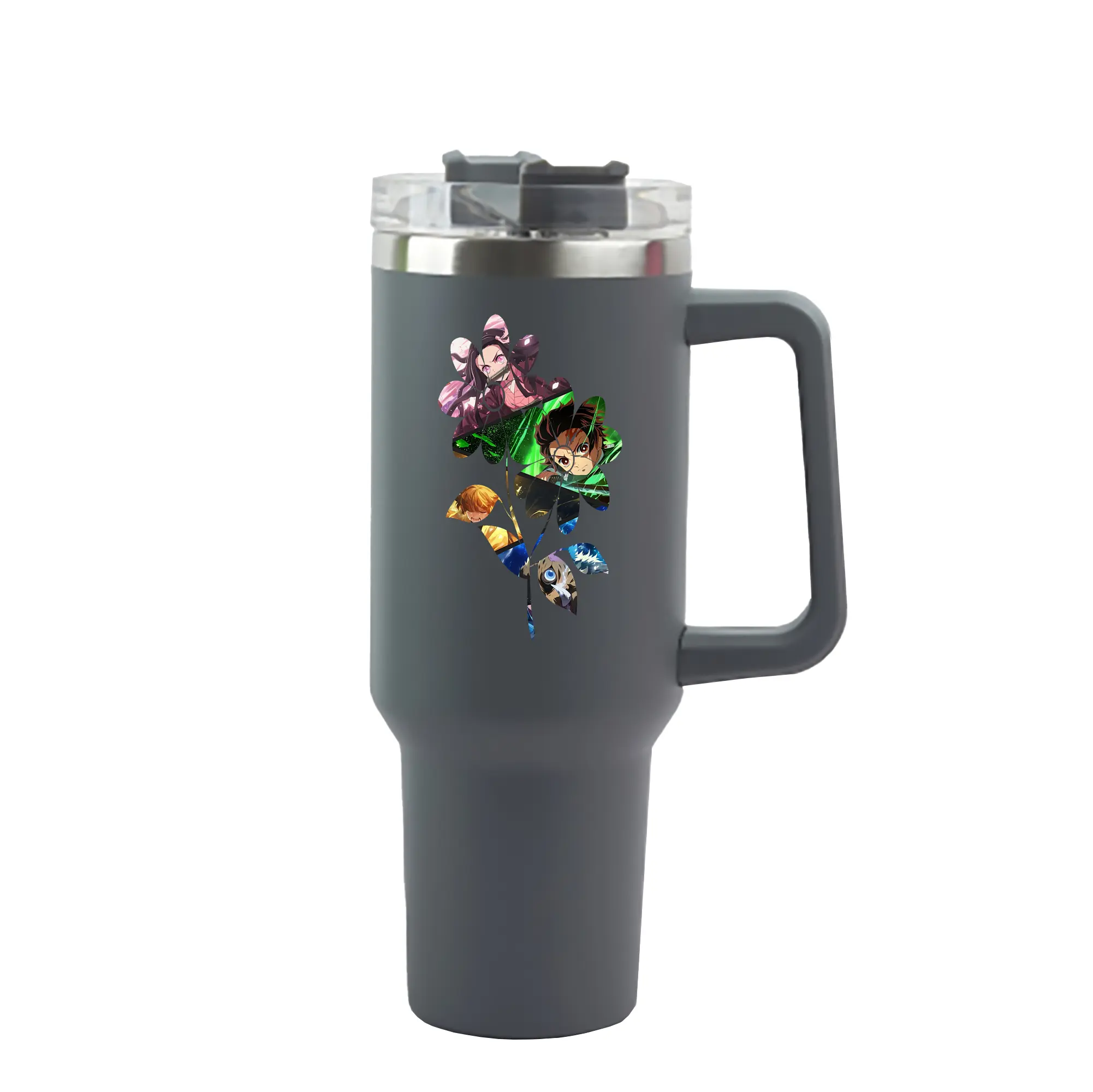 鬼滅の刃 グッズ,竈門 炭治郎 - 1200mL 車用タンブラー ・ クリスタルステッカー ・ 304ステンレス 内側 ・ 201ステンレス 外側 ・ 保温 保冷 ・ ハンドル&ストロー付き ・ 通勤 ドライブ アウトドア用