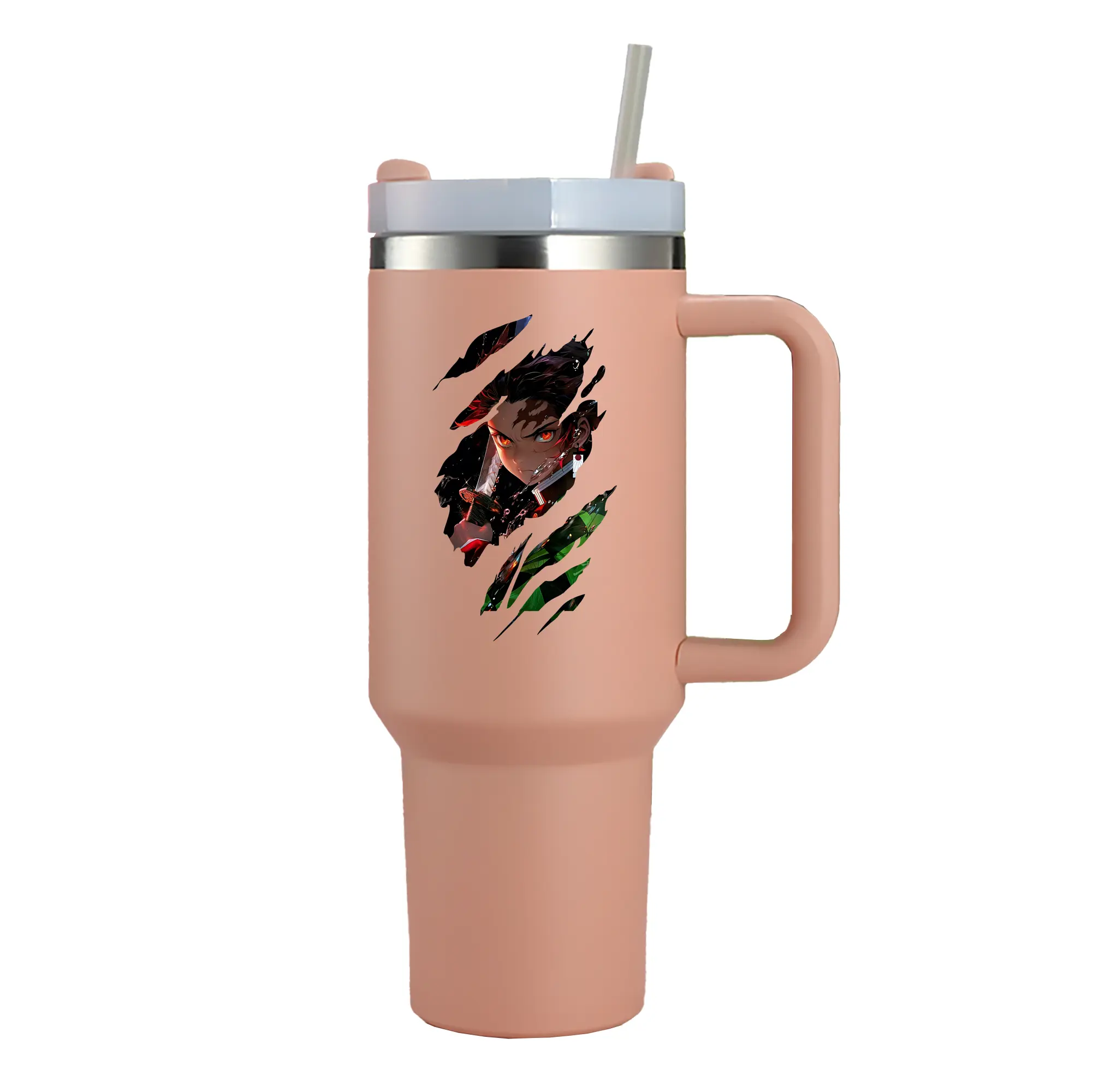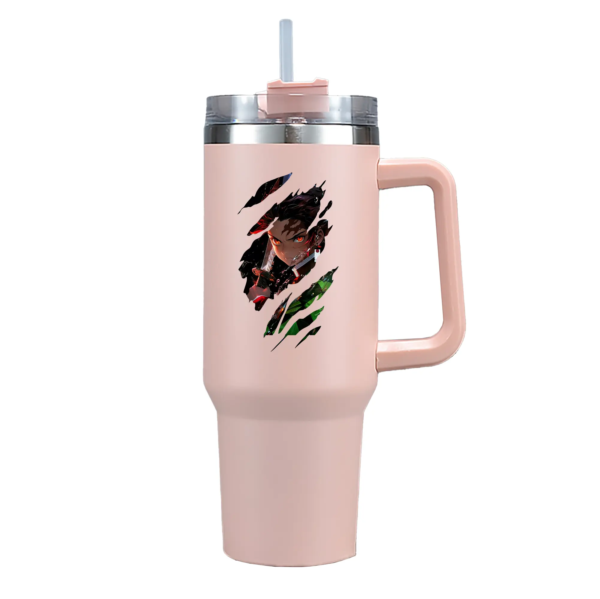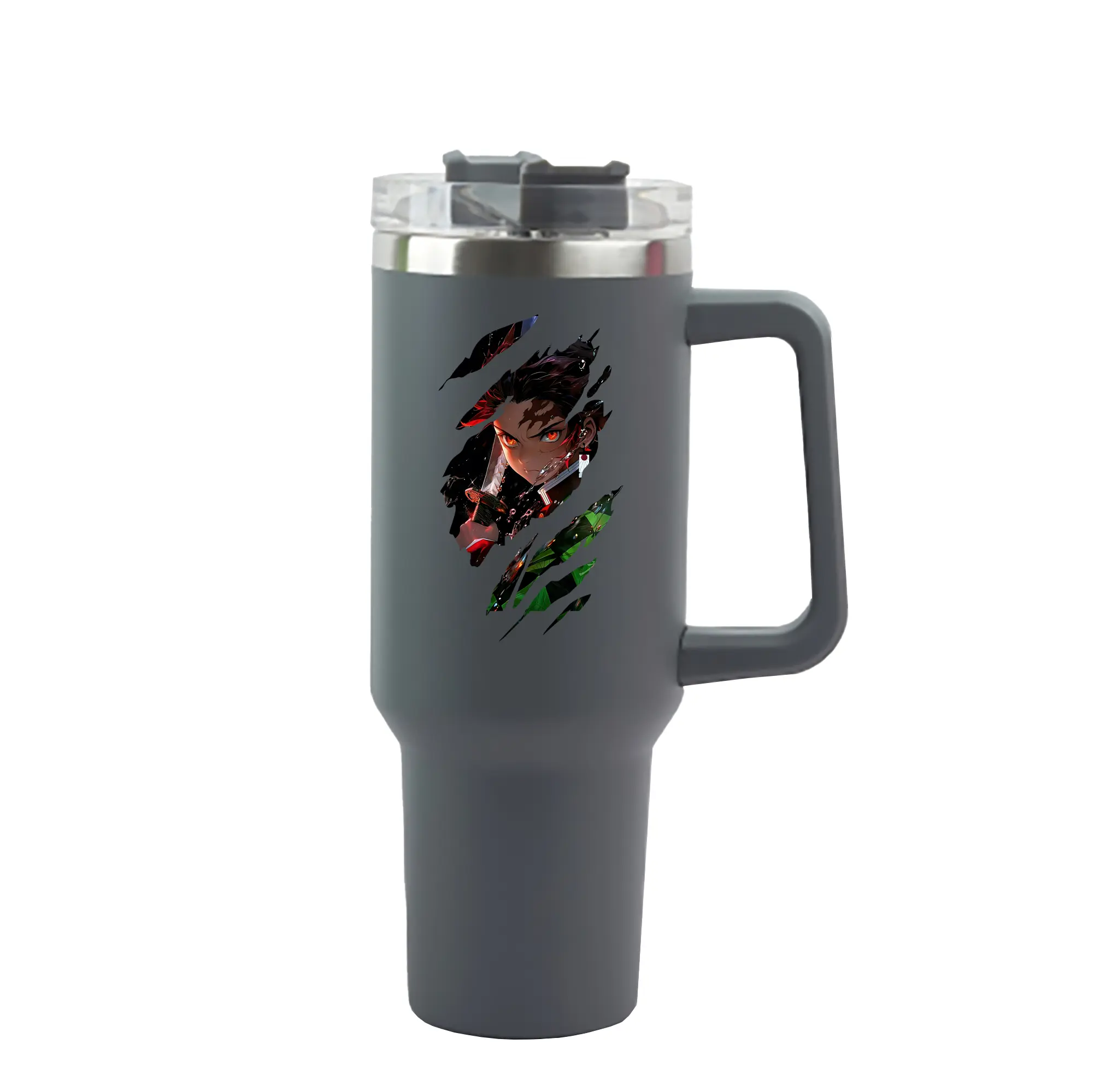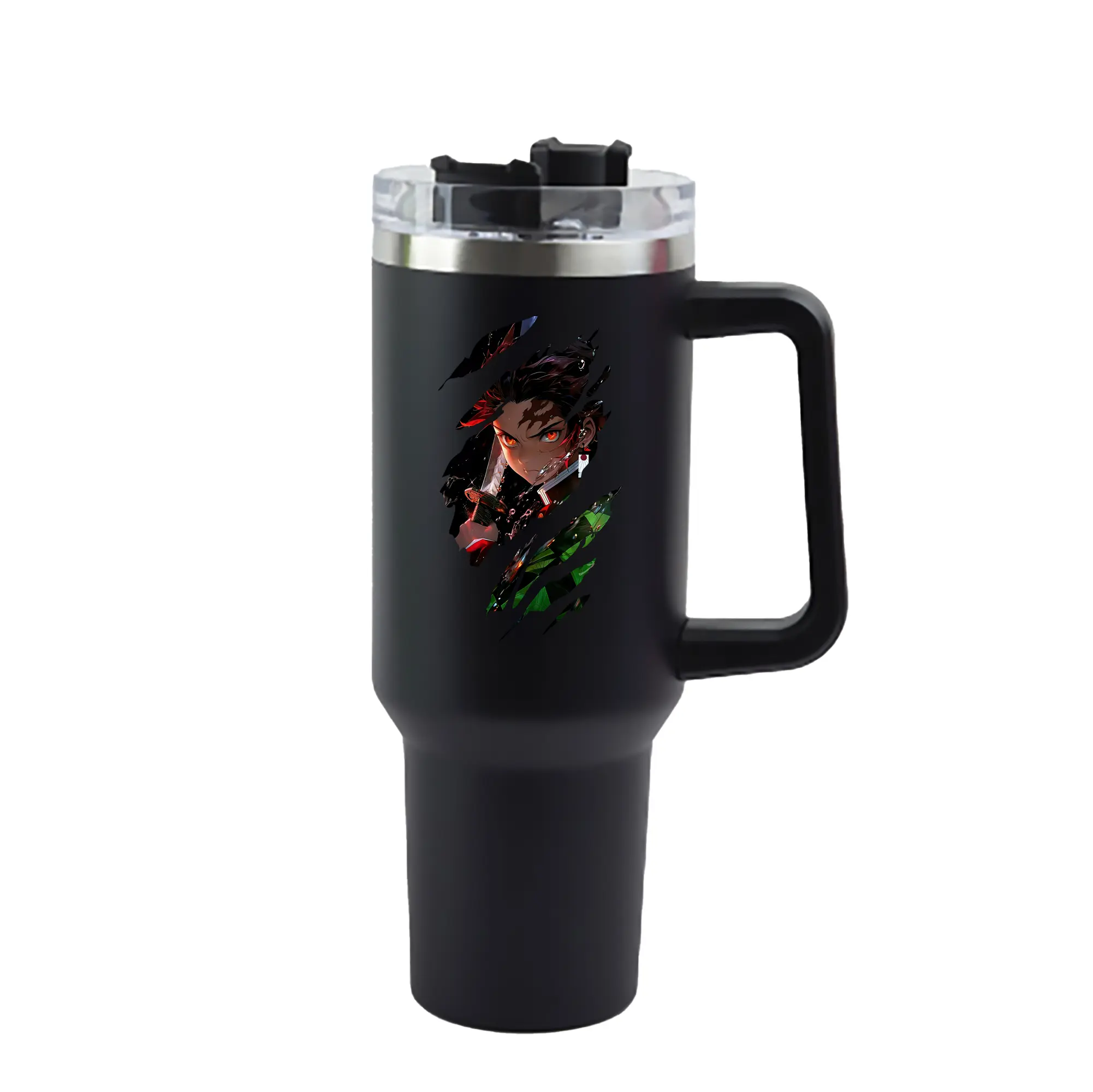鬼滅の刃 グッズ,竈門 炭治郎 - 1200mL 車用タンブラー ・ クリスタルステッカー ・ 304ステンレス 内側 ・ 201ステンレス 外側 ・ 保温 保冷 ・ ハンドル&ストロー付き ・ 通勤 ドライブ アウトドア用