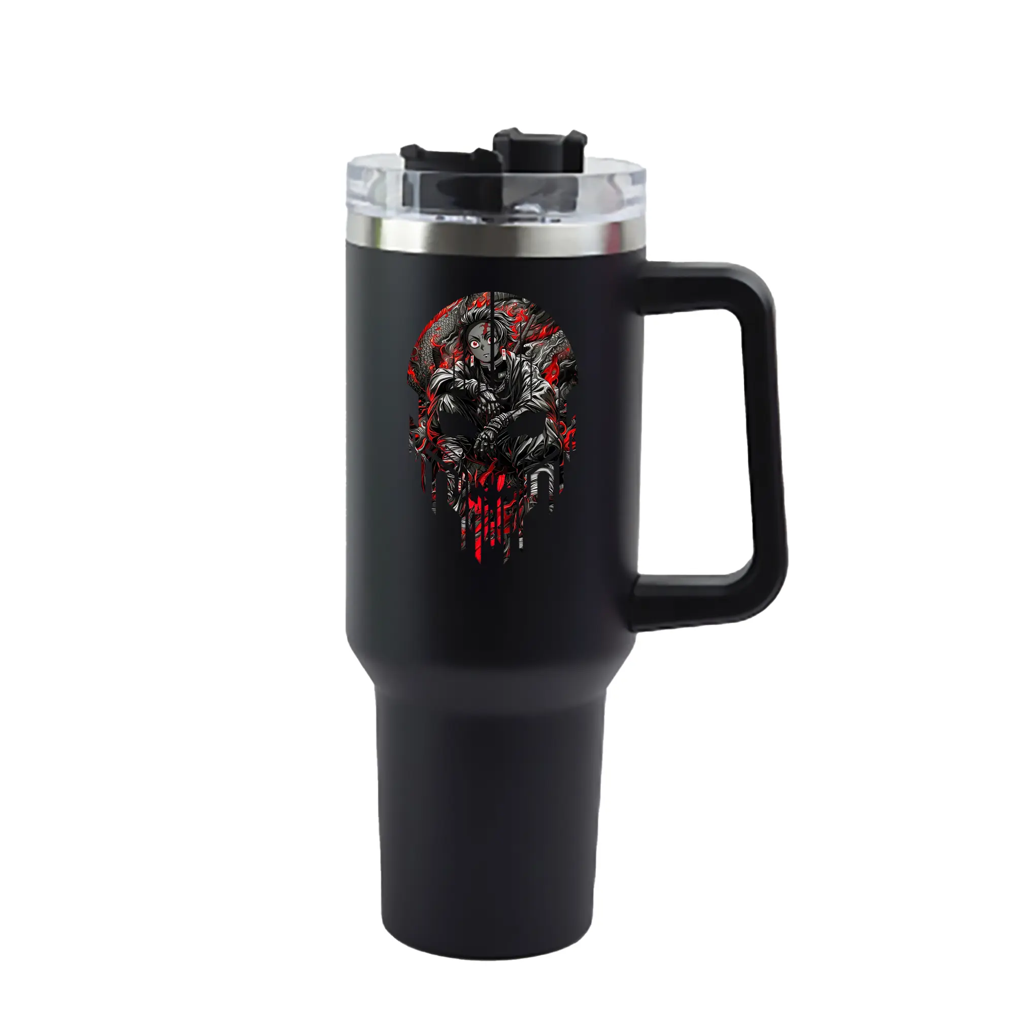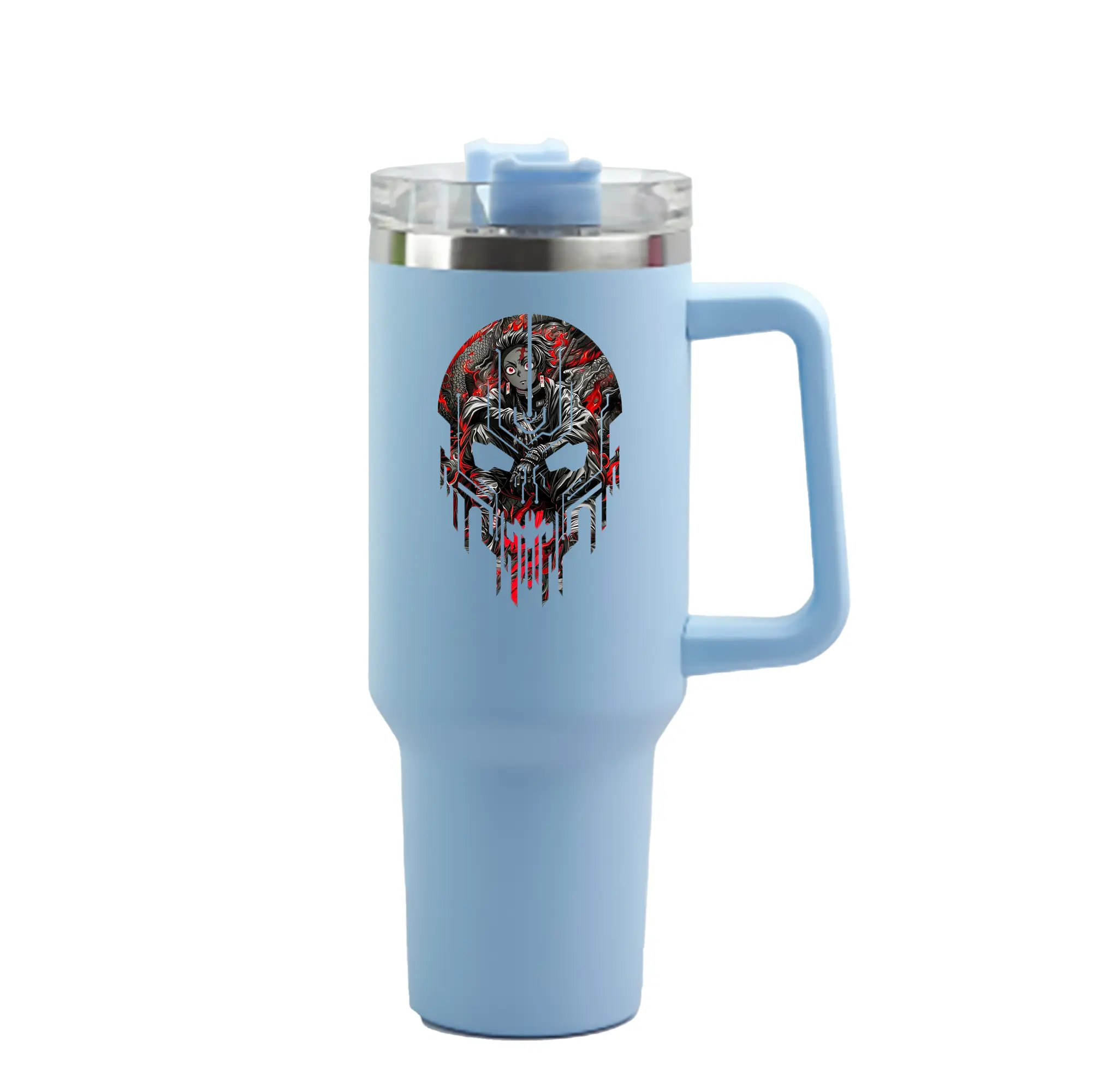 鬼滅の刃 グッズ,竈門 炭治郎 - 1200mL 車用タンブラー ・ クリスタルステッカー ・ 304ステンレス 内側 ・ 201ステンレス 外側 ・ 保温 保冷 ・ ハンドル&ストロー付き ・ 通勤 ドライブ アウトドア用