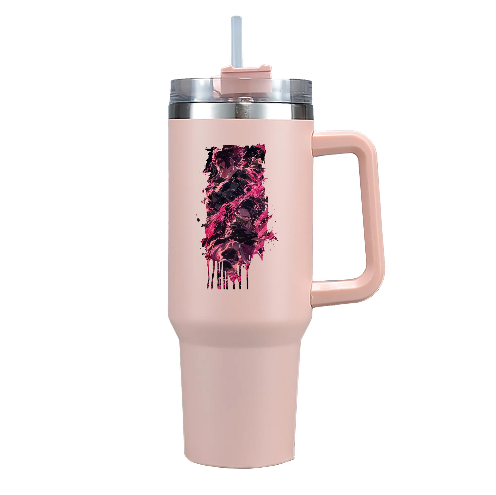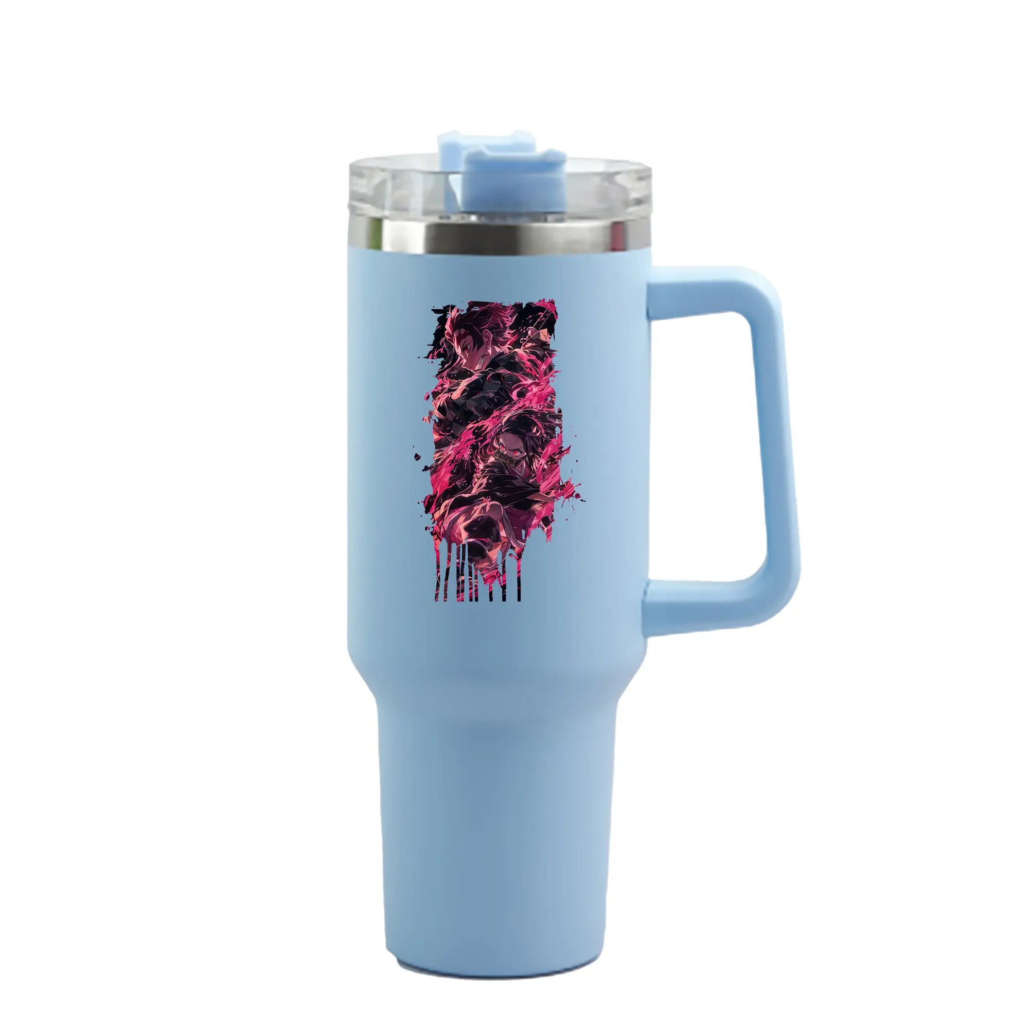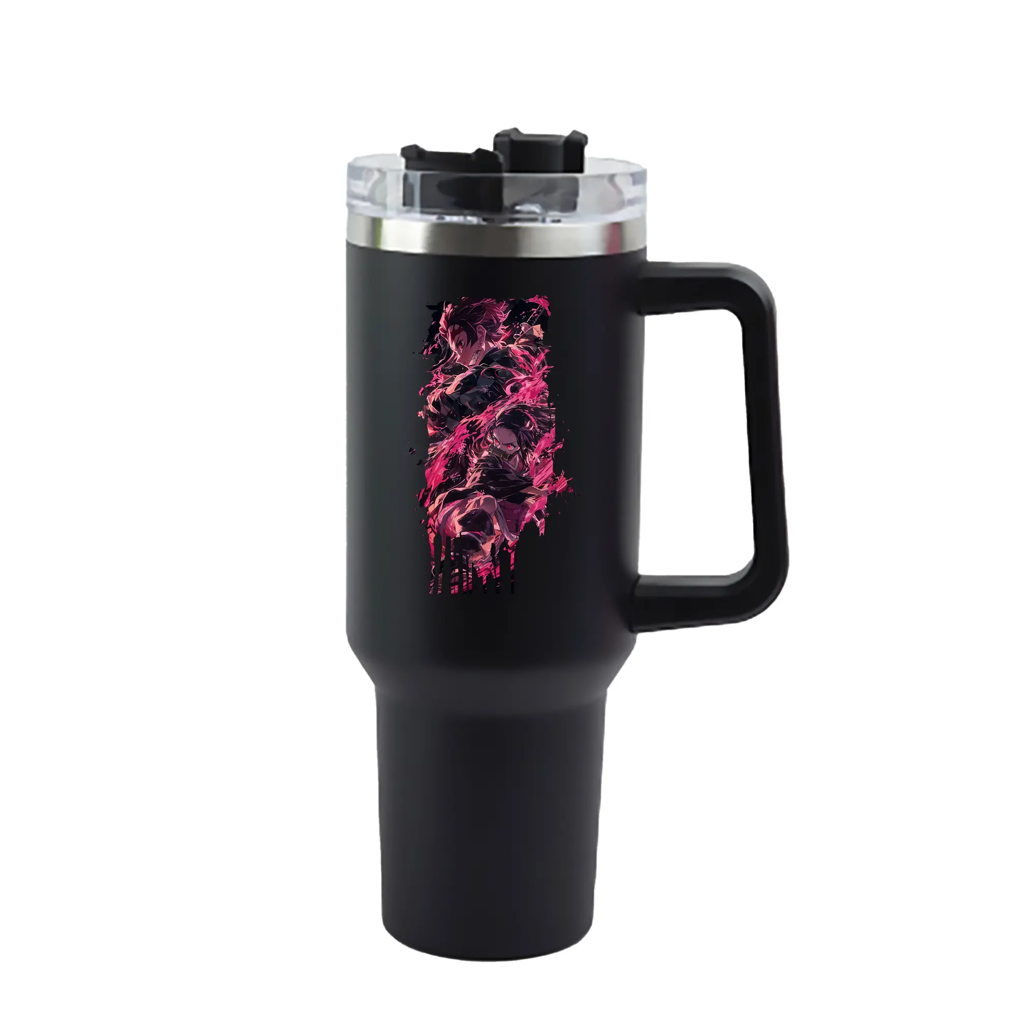鬼滅の刃 グッズ,竈門 炭治郎 - 1200mL 車用タンブラー ・ クリスタルステッカー ・ 304ステンレス 内側 ・ 201ステンレス 外側 ・ 保温 保冷 ・ ハンドル&ストロー付き ・ 通勤 ドライブ アウトドア用