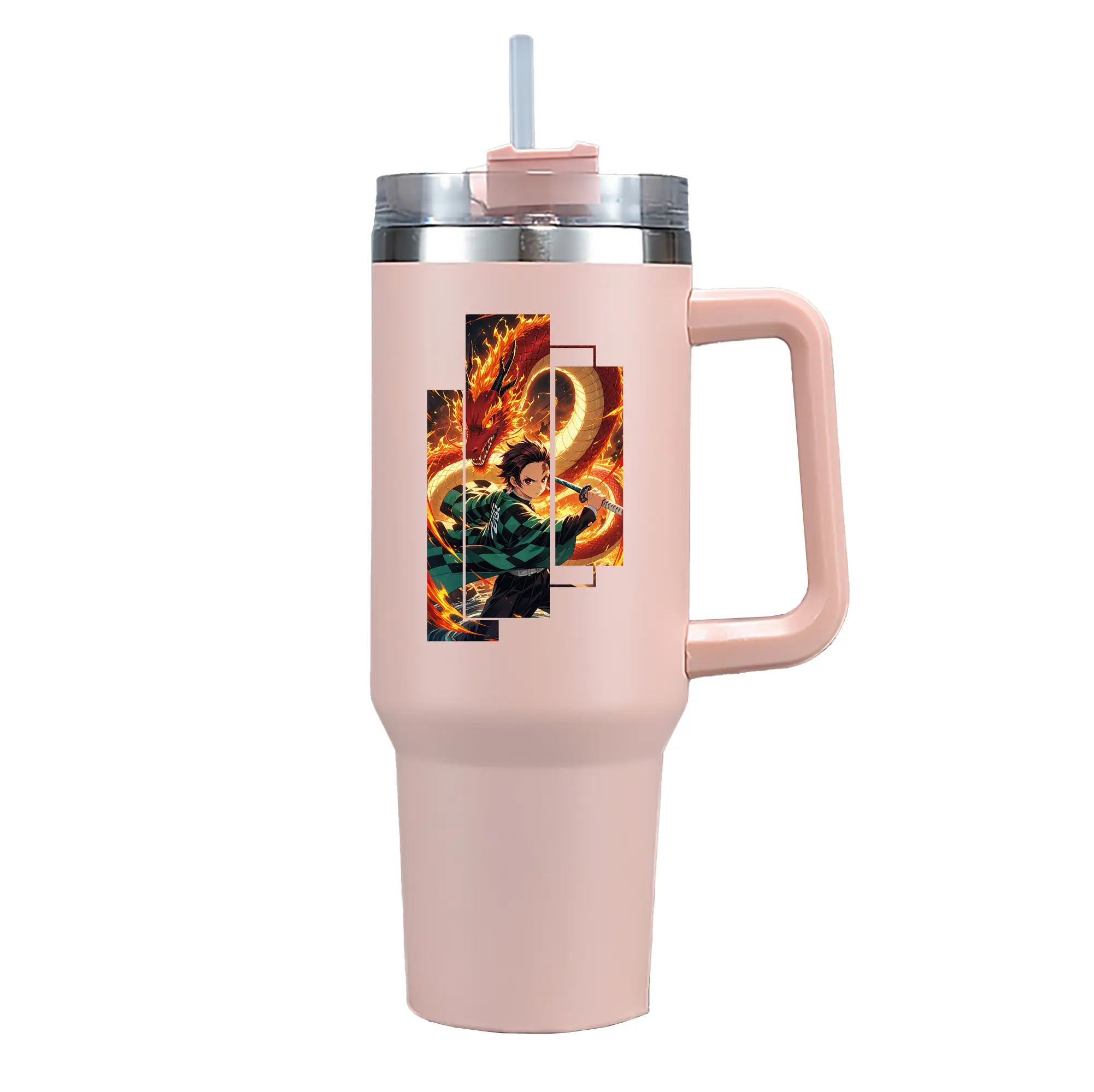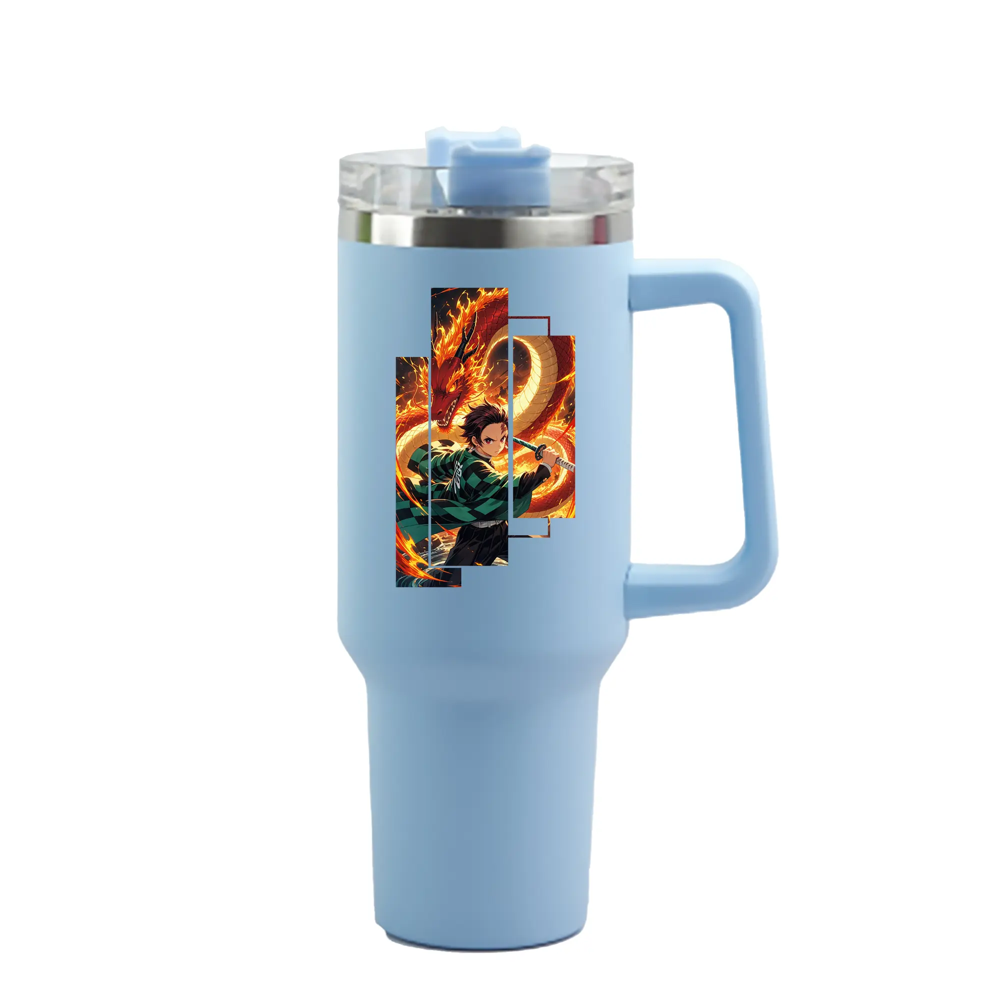 鬼滅の刃 グッズ,竈門 炭治郎 - 1200mL 車用タンブラー ・ クリスタルステッカー ・ 304ステンレス 内側 ・ 201ステンレス 外側 ・ 保温 保冷 ・ ハンドル&ストロー付き ・ 通勤 ドライブ アウトドア用