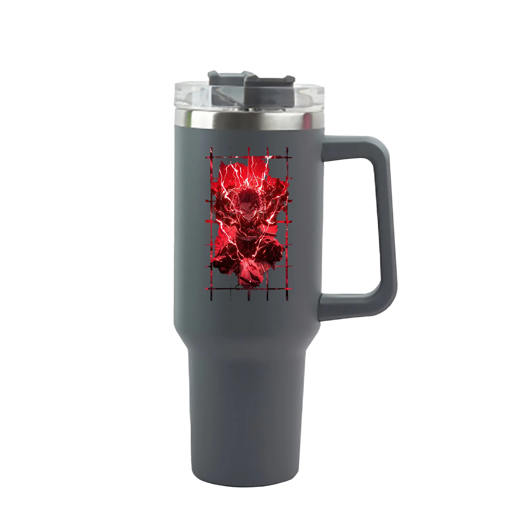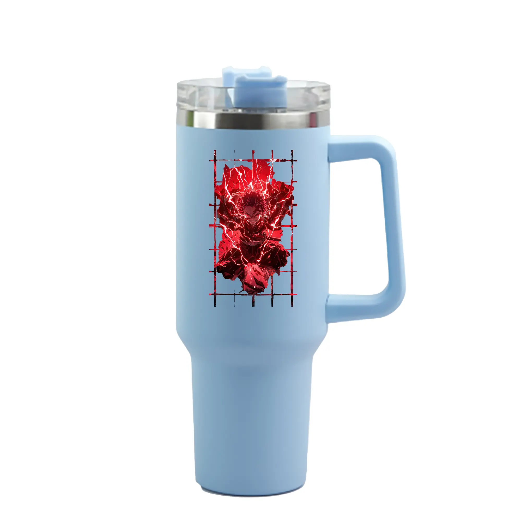 鬼滅の刃 グッズ,竈門 炭治郎 - 1200mL 車用タンブラー ・ クリスタルステッカー ・ 304ステンレス 内側 ・ 201ステンレス 外側 ・ 保温 保冷 ・ ハンドル&ストロー付き ・ 通勤 ドライブ アウトドア用