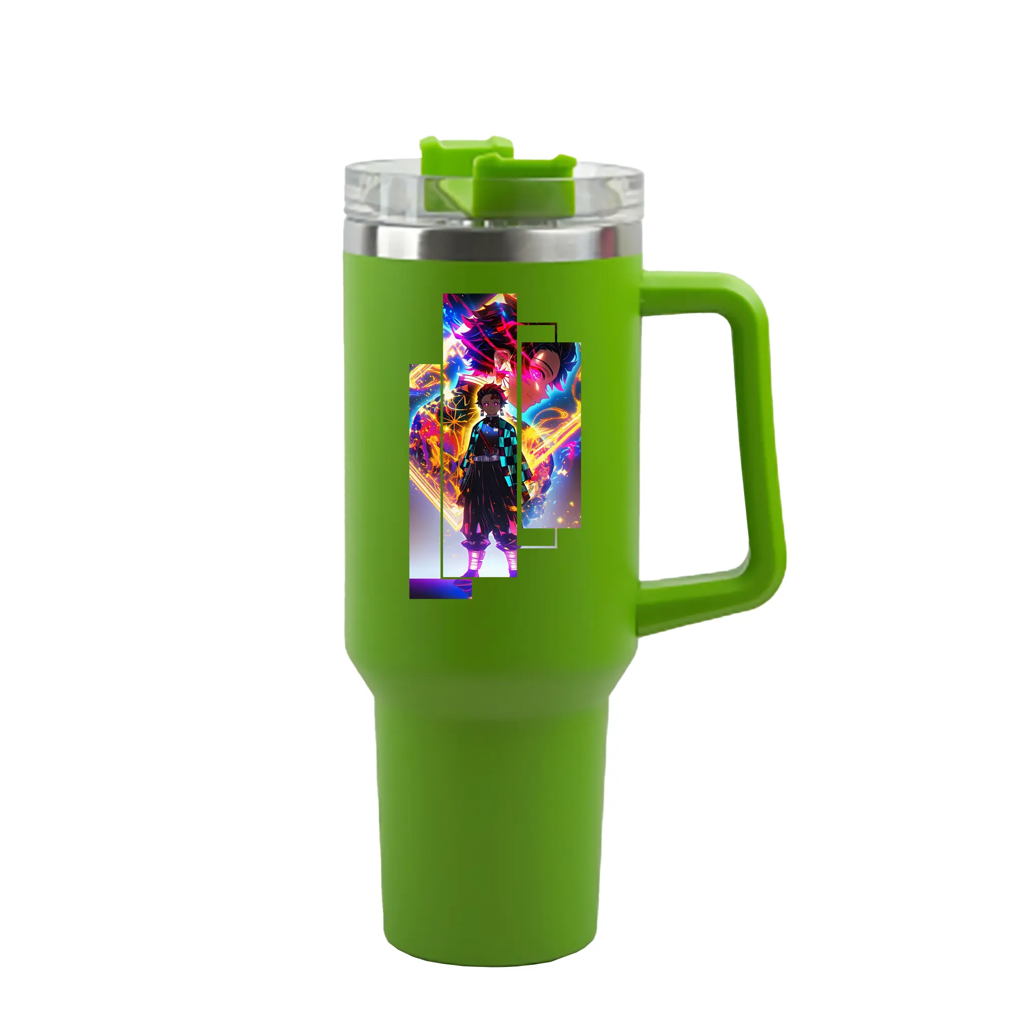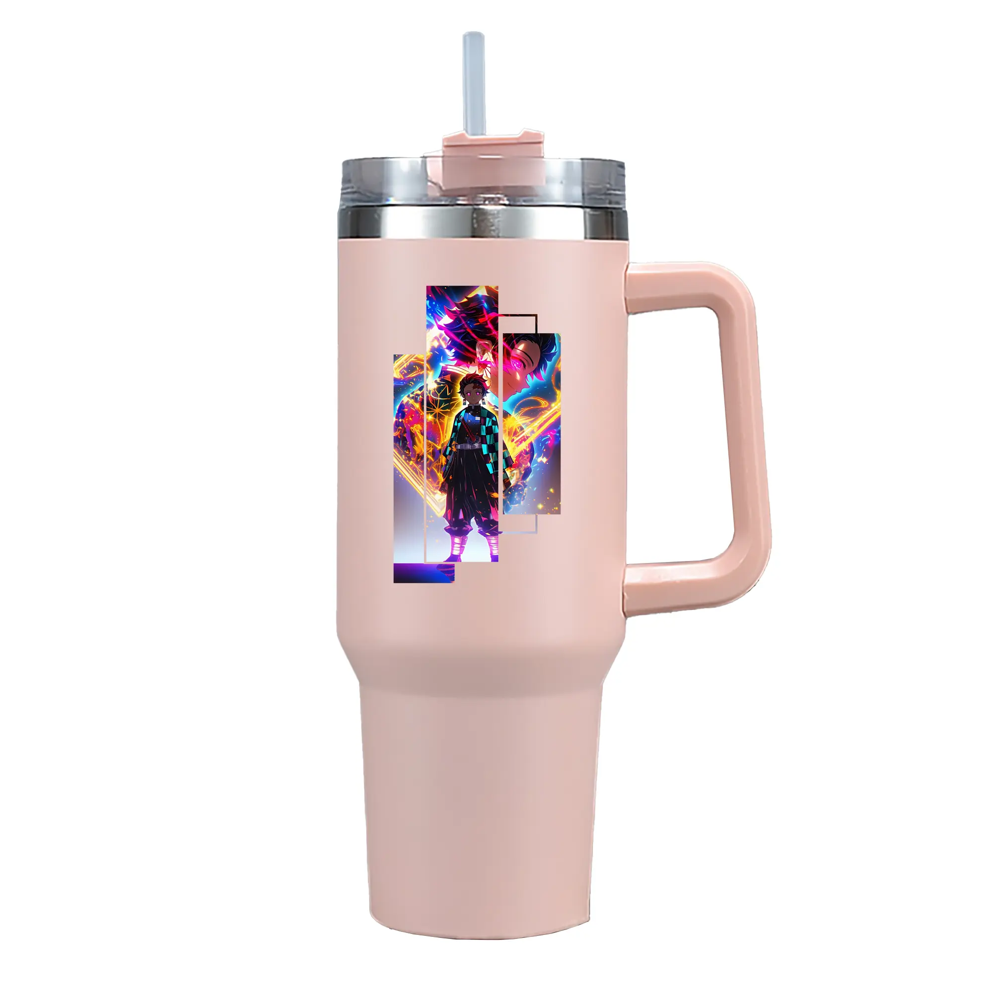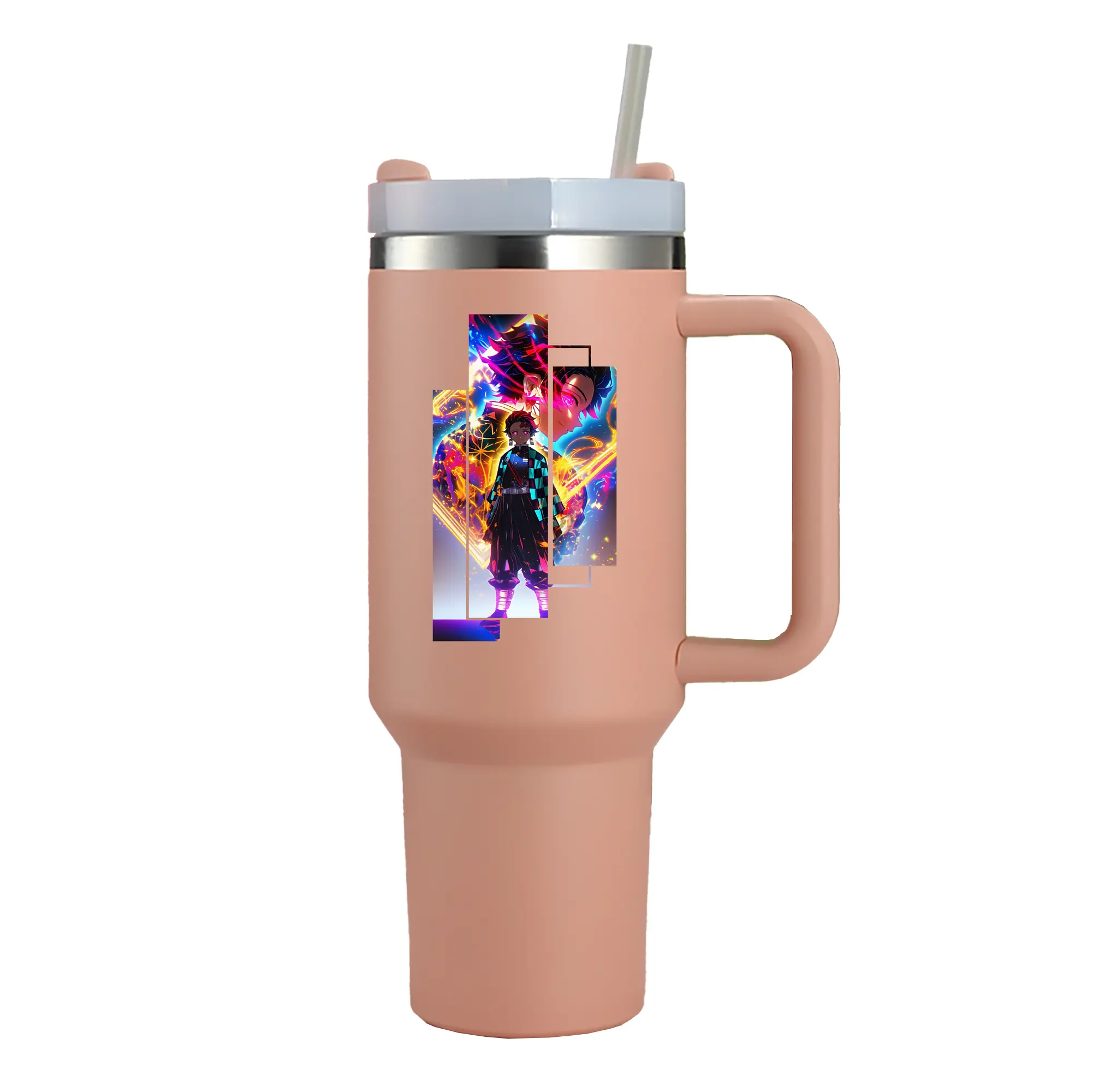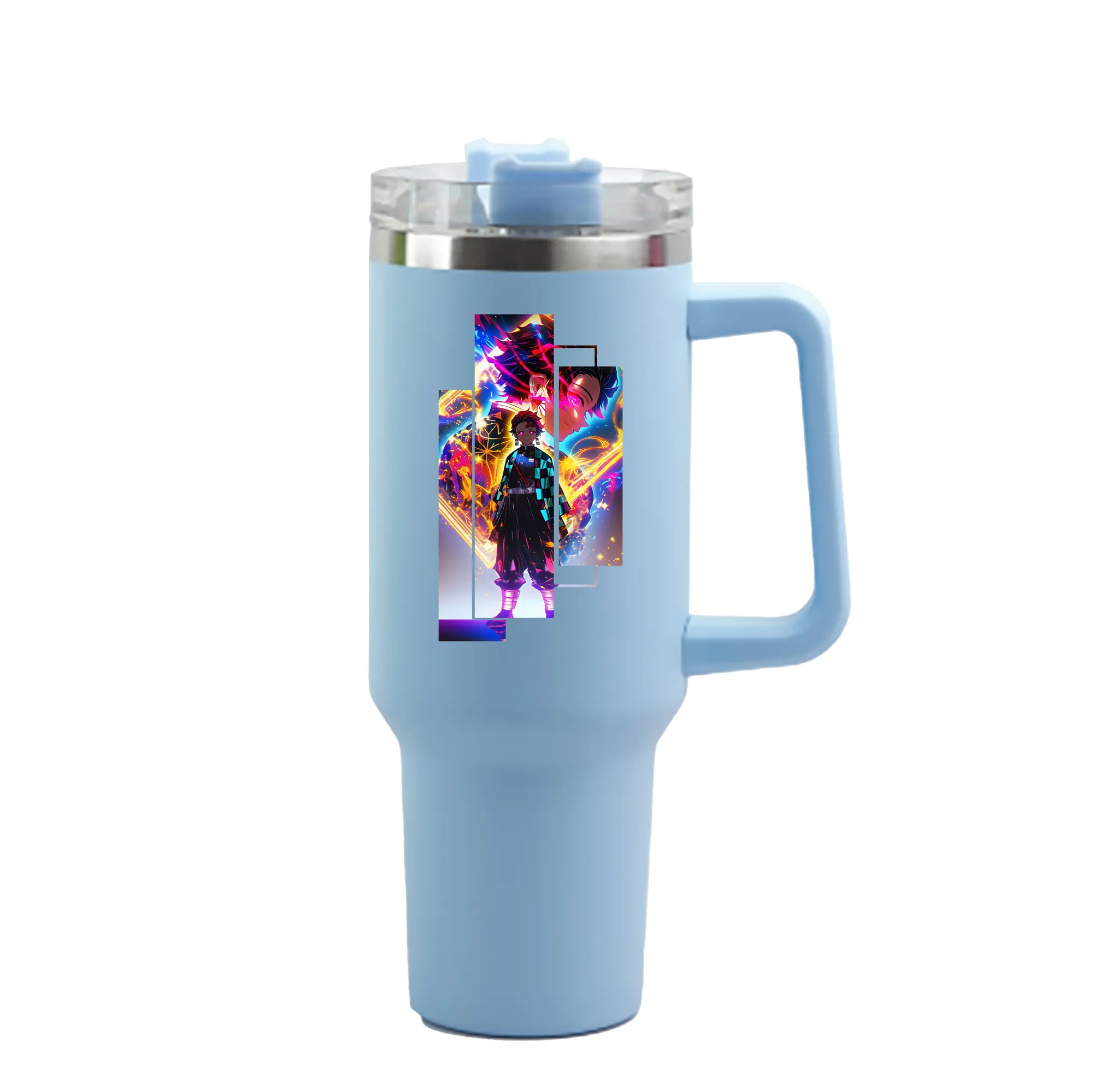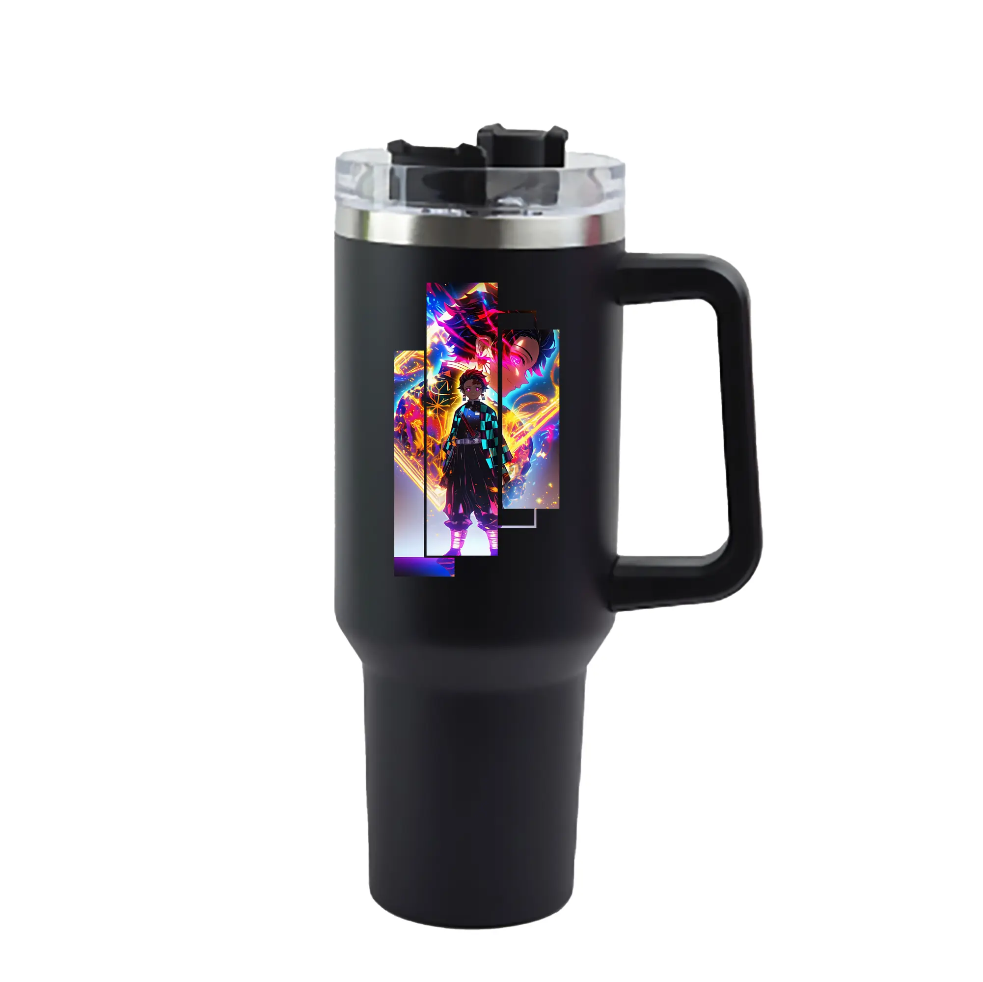 鬼滅の刃 グッズ,竈門 炭治郎 - 1200mL 車用タンブラー ・ クリスタルステッカー ・ 304ステンレス 内側 ・ 201ステンレス 外側 ・ 保温 保冷 ・ ハンドル&ストロー付き ・ 通勤 ドライブ アウトドア用