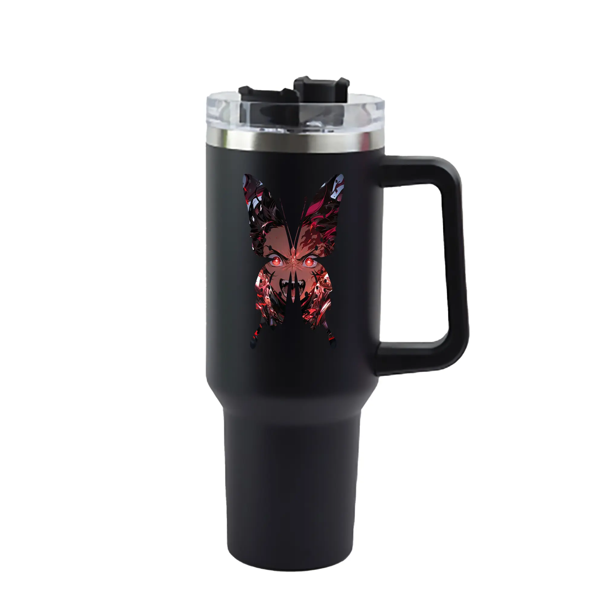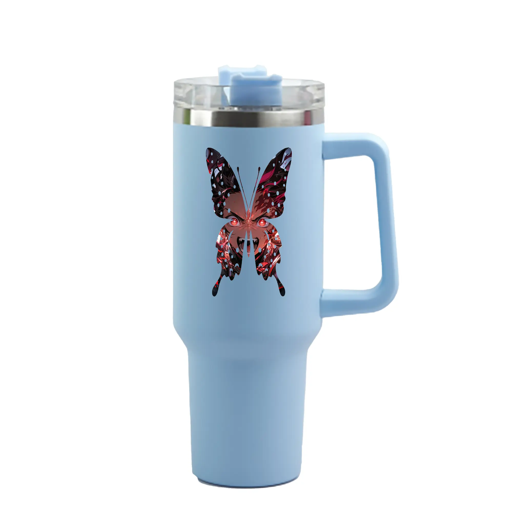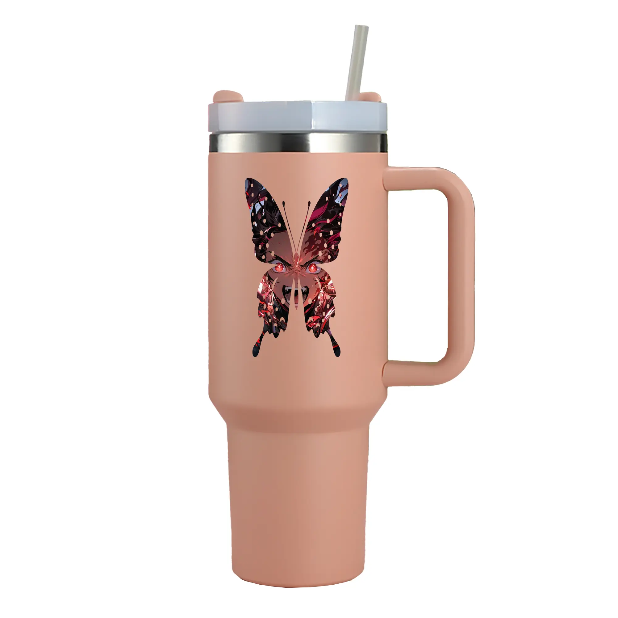 1200mL(40オンス)の大容量ハンドル付きカータンブラー。キラキラと輝くクリスタルステッカーデザインが、毎日の使用に華やかさをプラスします。食品グレード304ステンレスの内側と頑丈な201ステンレスの外側を採用し、耐久性・耐腐食性・安全性を兼ね備えています。