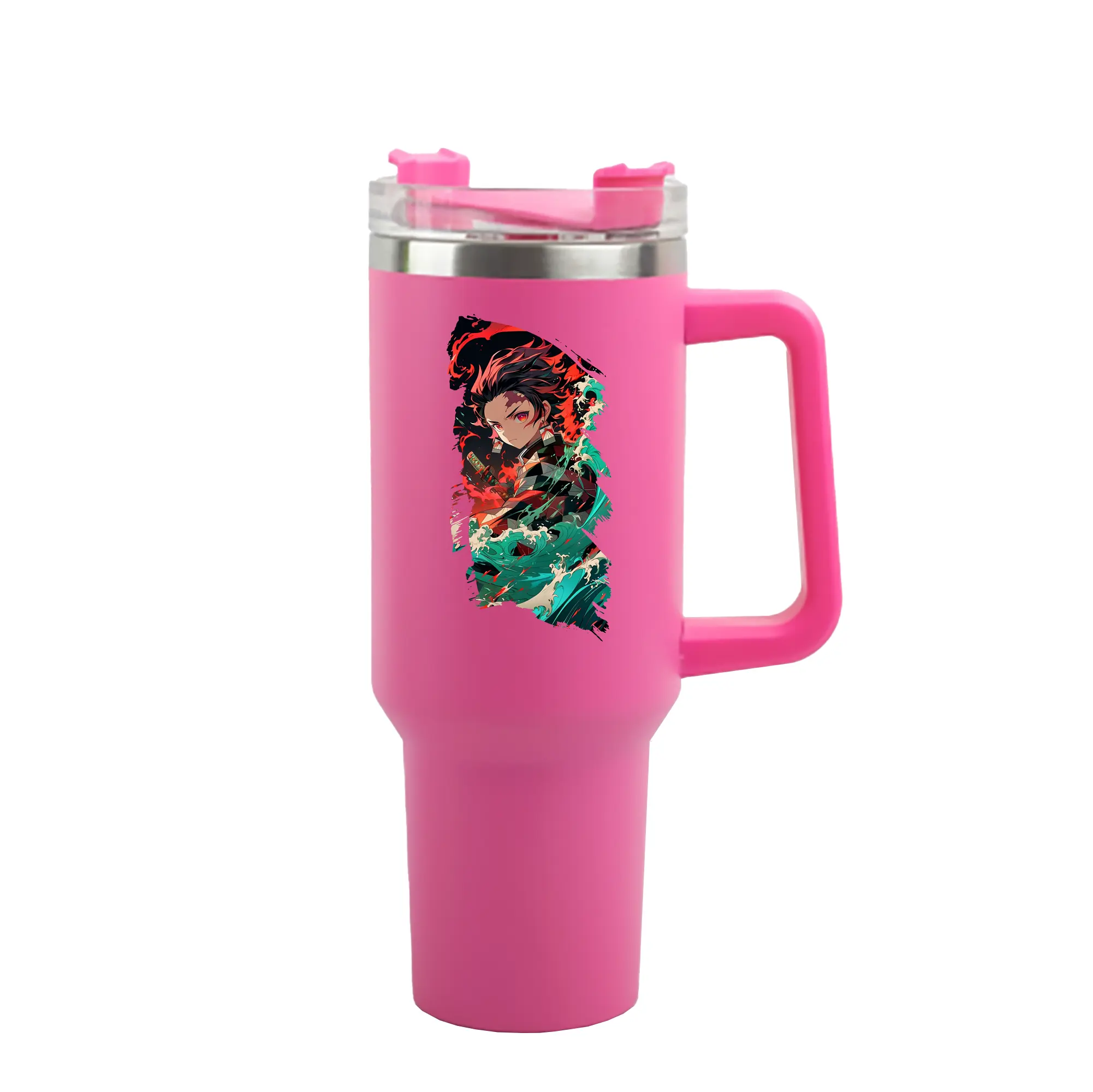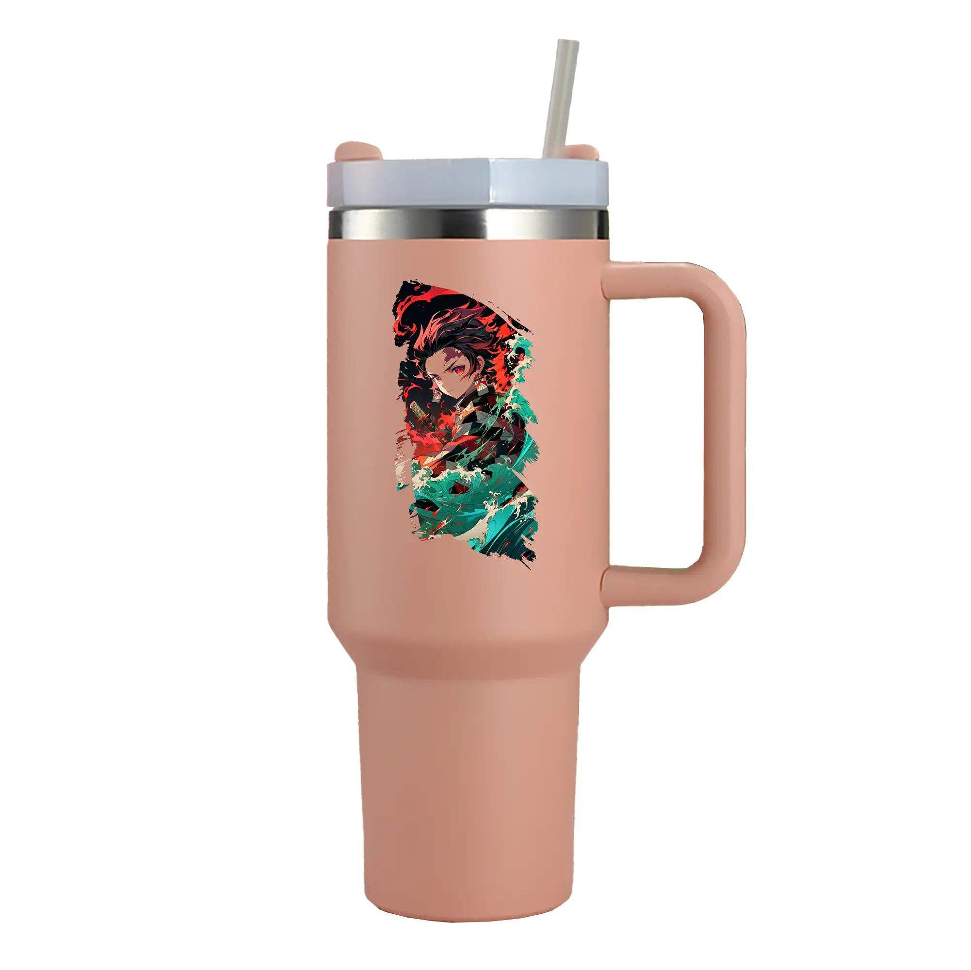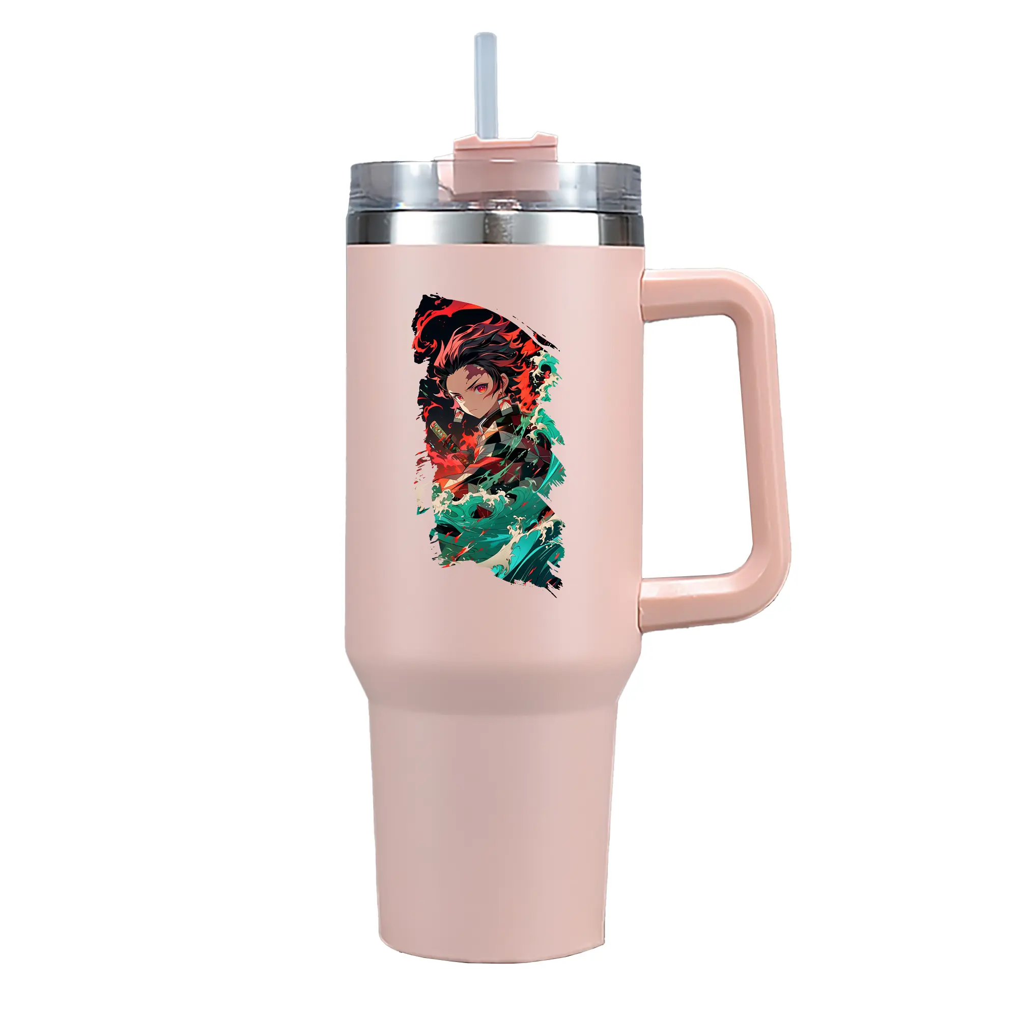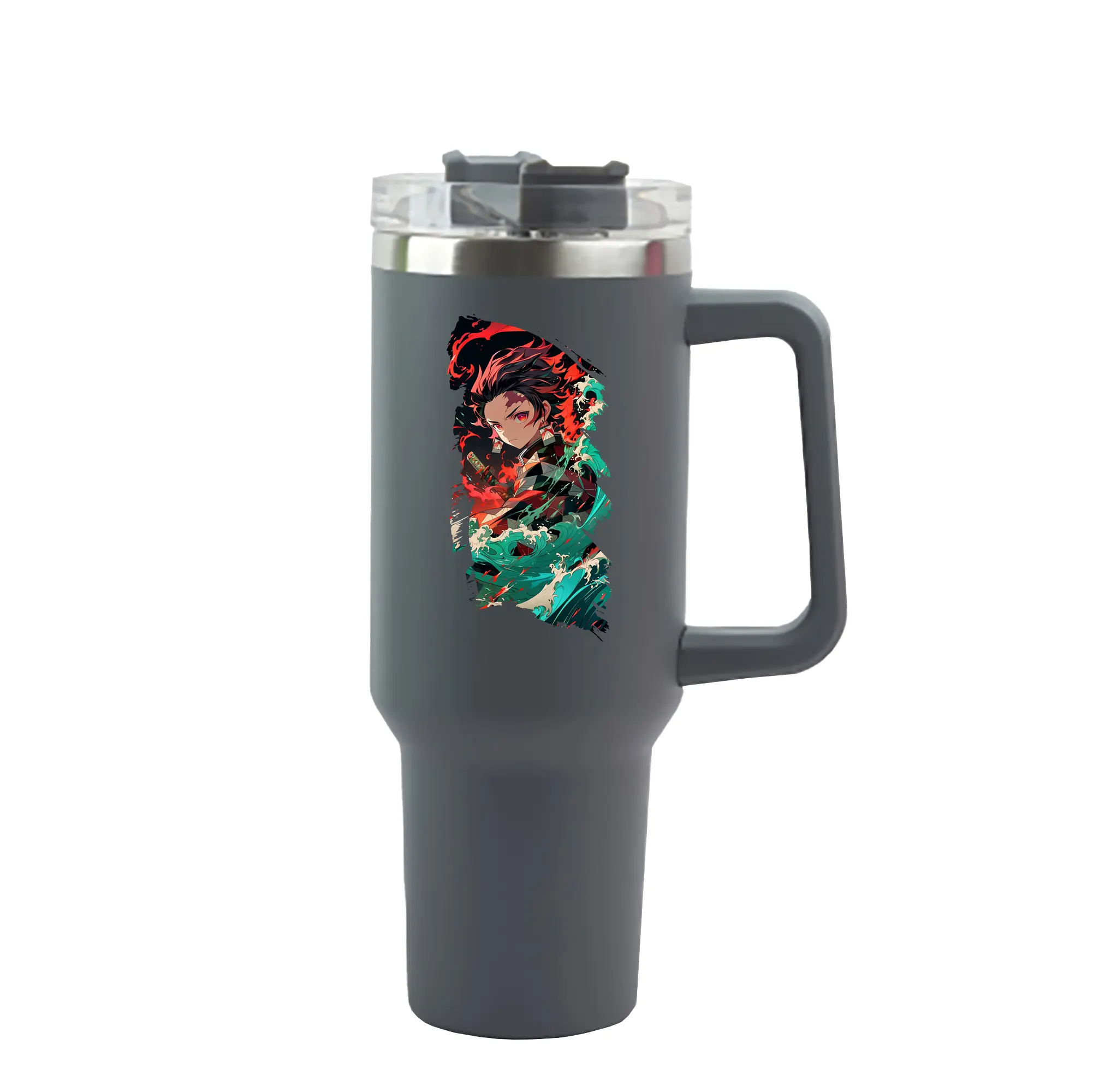 鬼滅の刃 グッズ,竈門 炭治郎 - 1200mL 車用タンブラー ・ クリスタルステッカー ・ 304ステンレス 内側 ・ 201ステンレス 外側 ・ 保温 保冷 ・ ハンドル&ストロー付き ・ 通勤 ドライブ アウトドア用