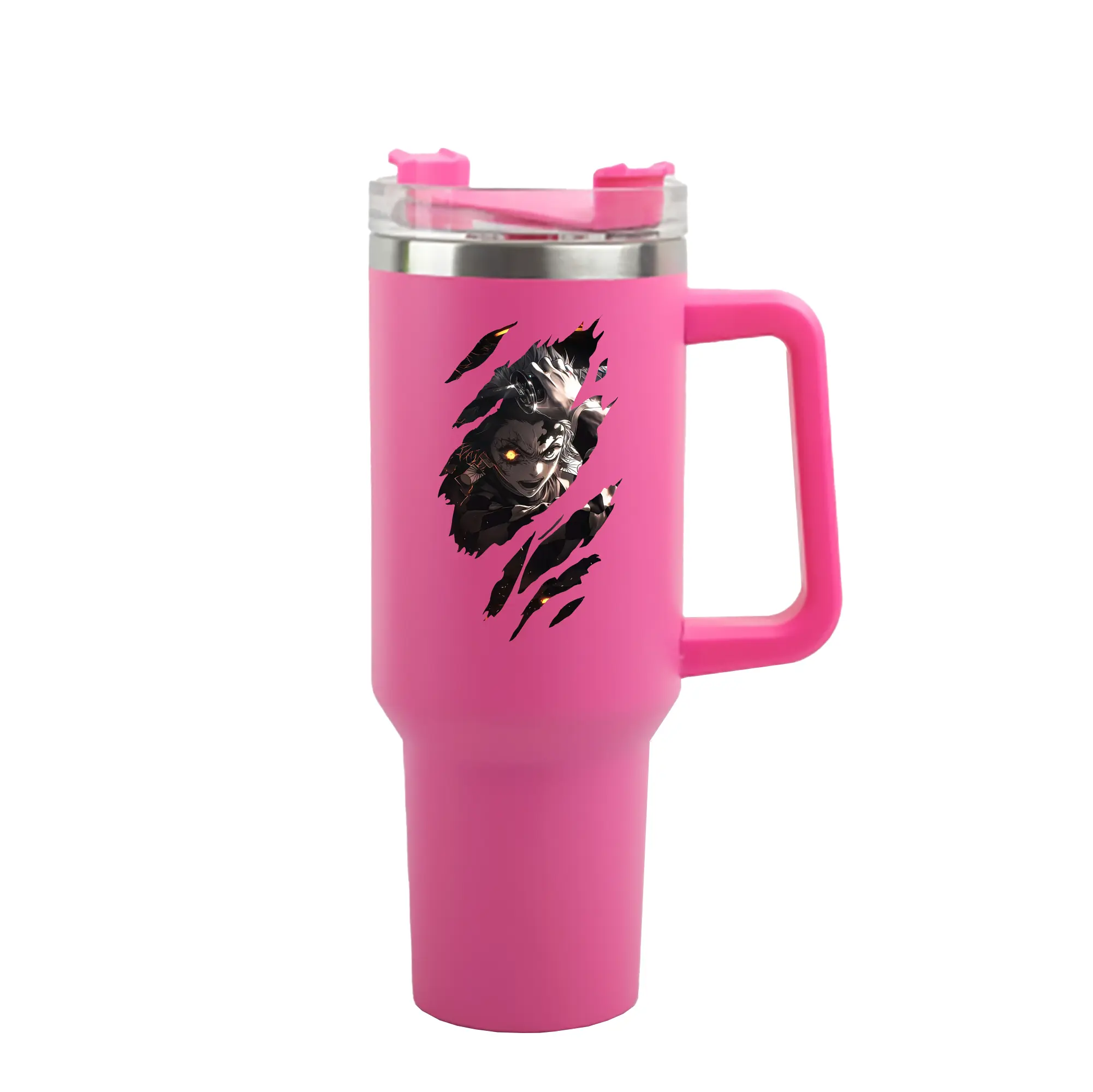 1200mL(40オンス)の大容量ハンドル付きカータンブラー。キラキラと輝くクリスタルステッカーデザインが、毎日の使用に華やかさをプラスします。食品グレード304ステンレスの内側と頑丈な201ステンレスの外側を採用し、耐久性・耐腐食性・安全性を兼ね備えています。