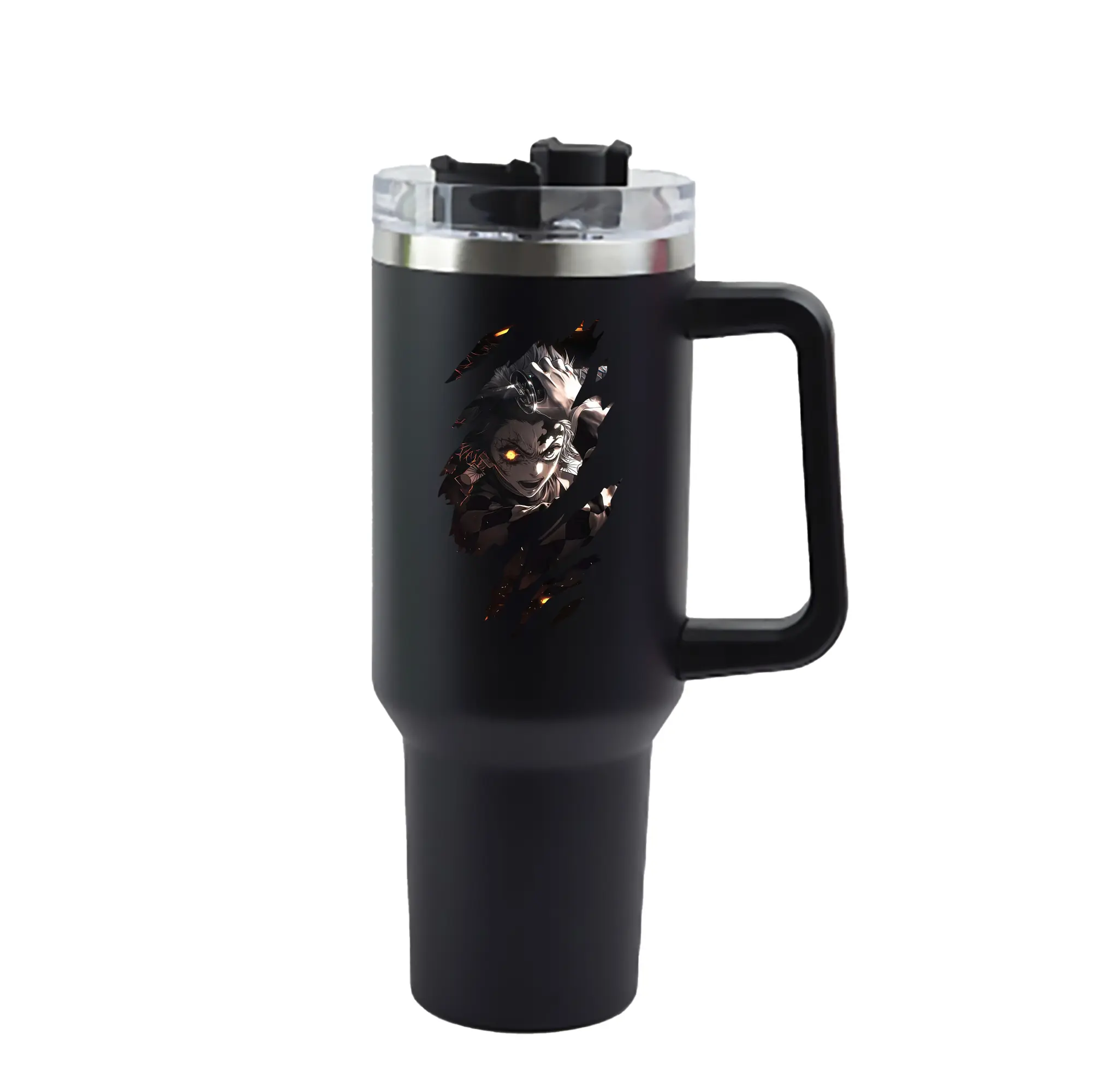鬼滅の刃 グッズ,竈門 炭治郎 - 1200mL 車用タンブラー ・ クリスタルステッカー ・ 304ステンレス 内側 ・ 201ステンレス 外側 ・ 保温 保冷 ・ ハンドル&ストロー付き ・ 通勤 ドライブ アウトドア用