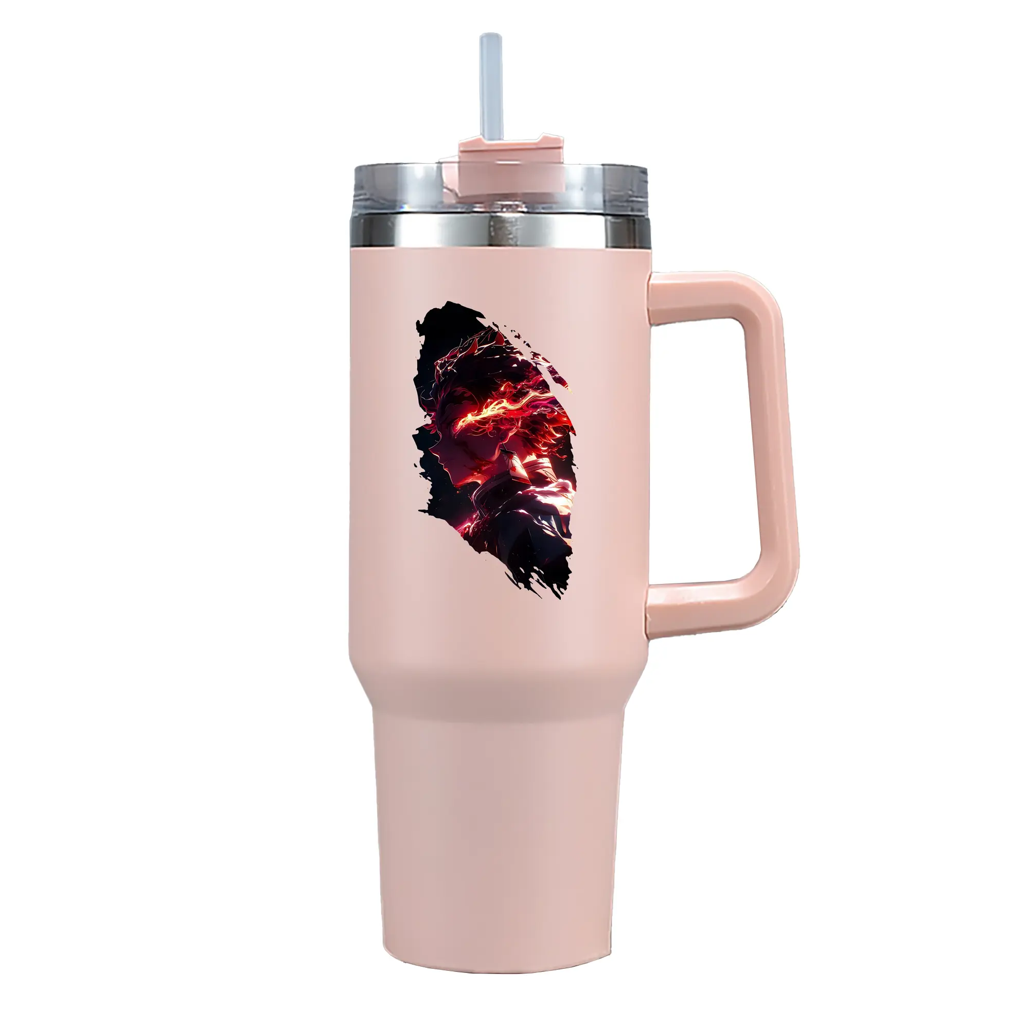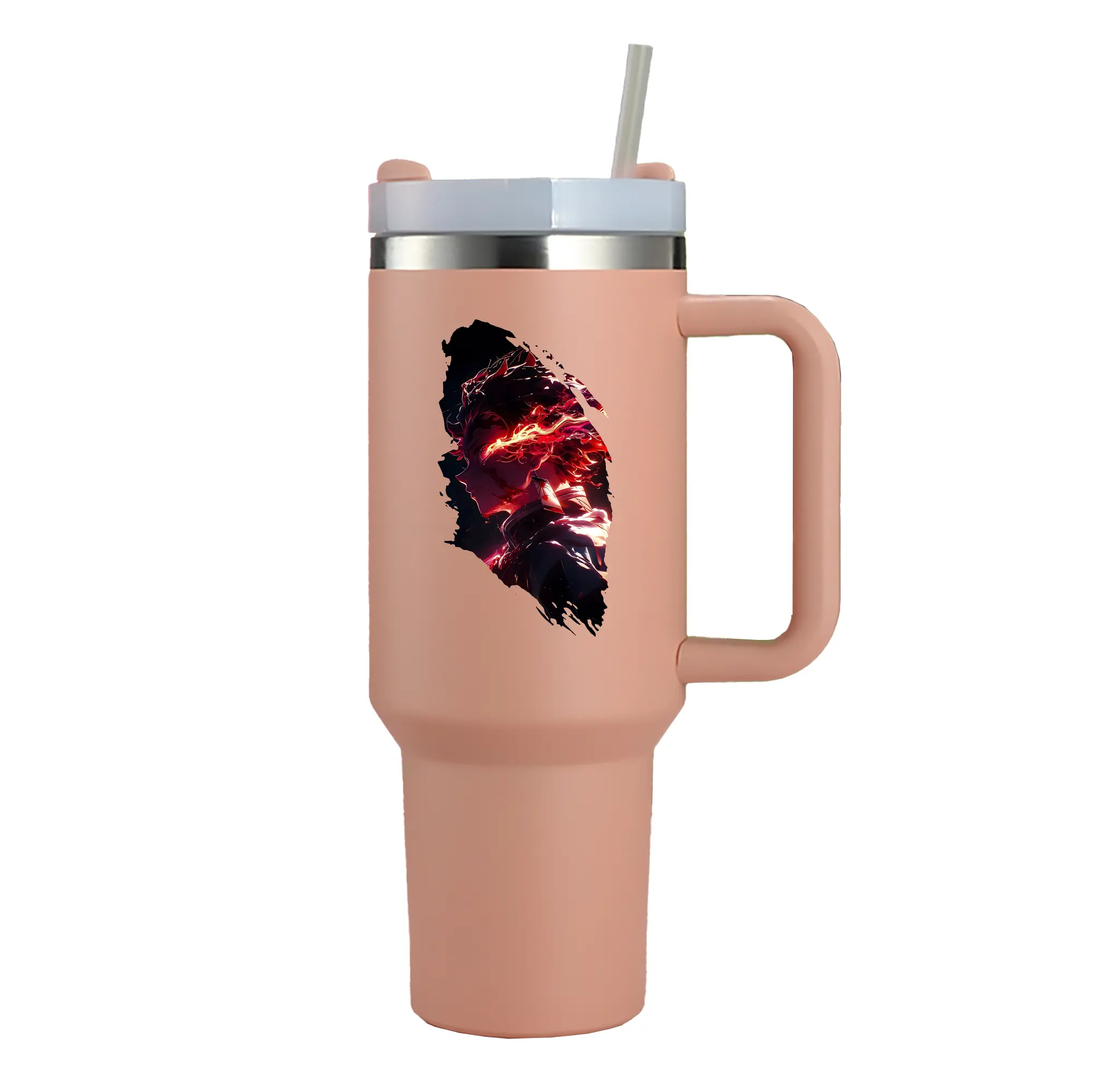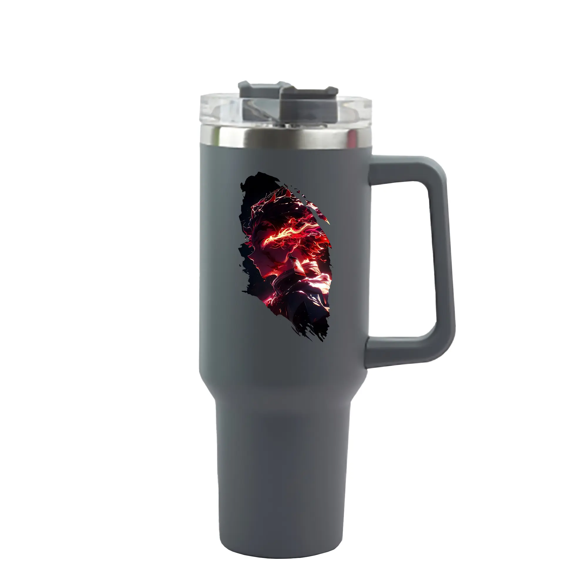 鬼滅の刃 グッズ,竈門 炭治郎 - 1200mL 車用タンブラー ・ クリスタルステッカー ・ 304ステンレス 内側 ・ 201ステンレス 外側 ・ 保温 保冷 ・ ハンドル&ストロー付き ・ 通勤 ドライブ アウトドア用