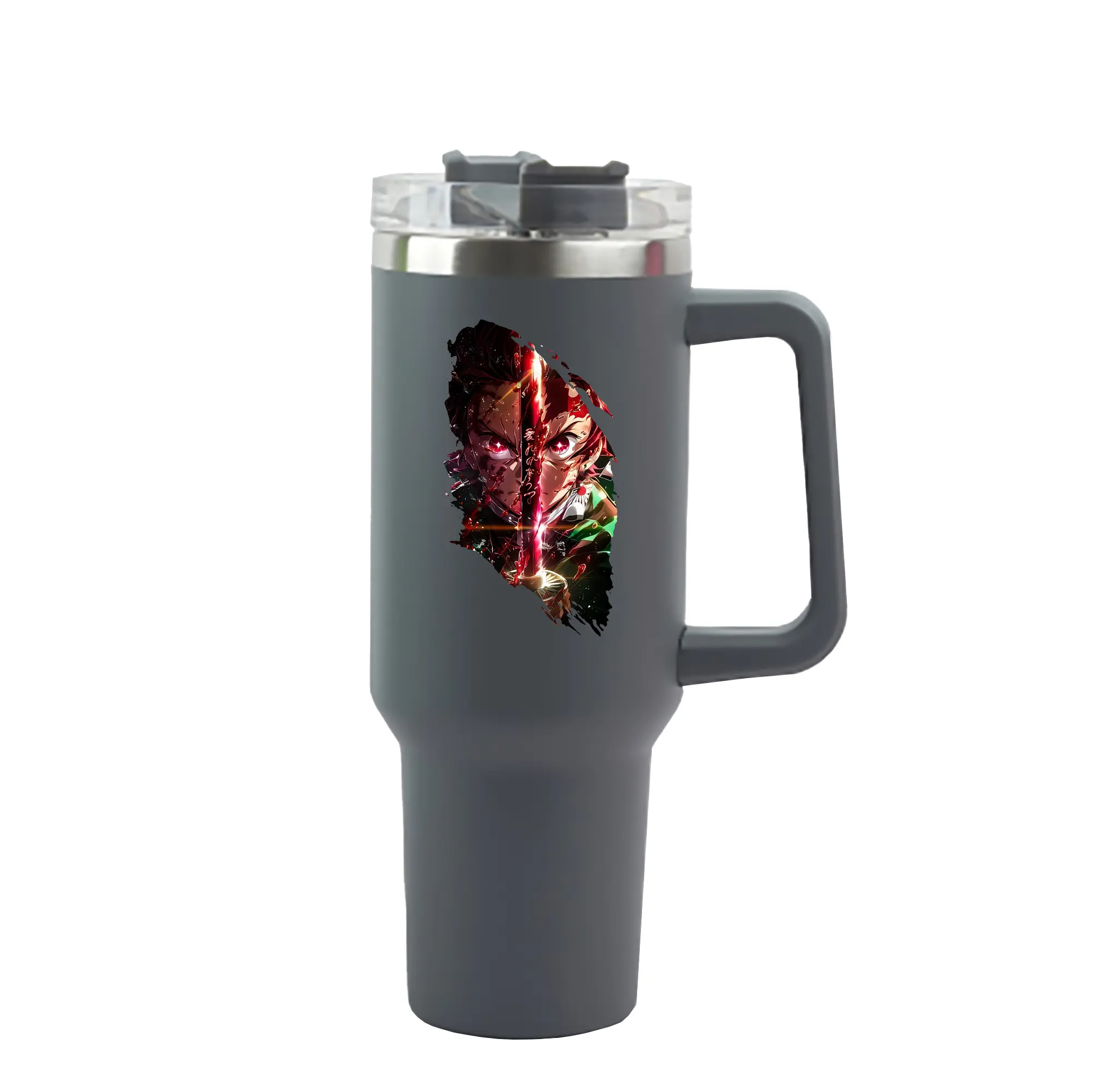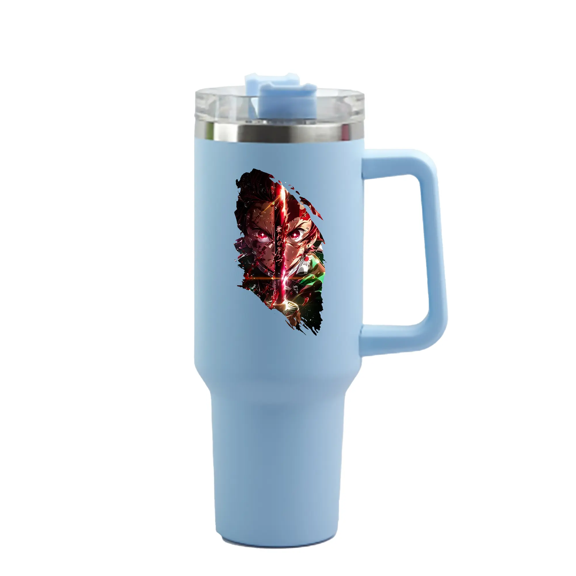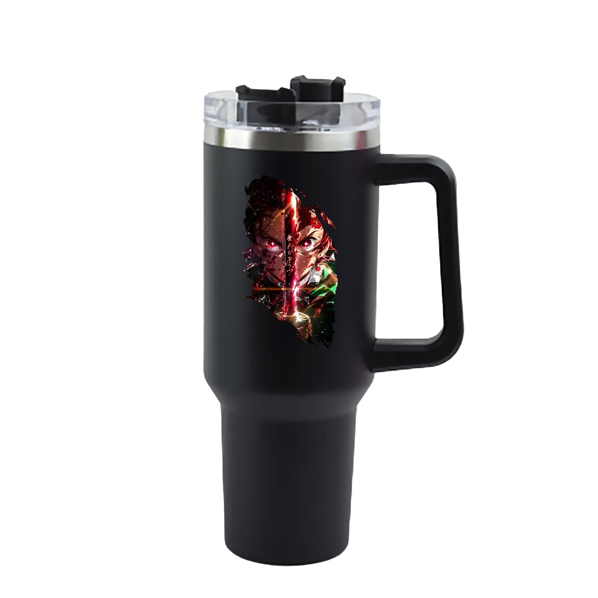 鬼滅の刃 グッズ,竈門 炭治郎 - 1200mL 車用タンブラー ・ クリスタルステッカー ・ 304ステンレス 内側 ・ 201ステンレス 外側 ・ 保温 保冷 ・ ハンドル&ストロー付き ・ 通勤 ドライブ アウトドア用
