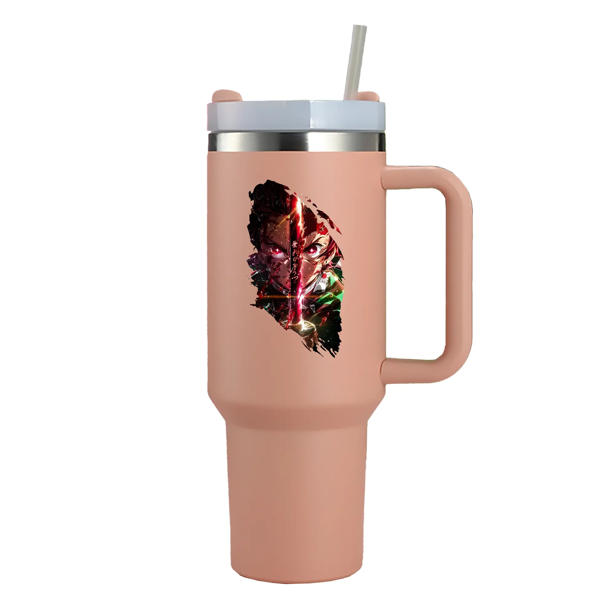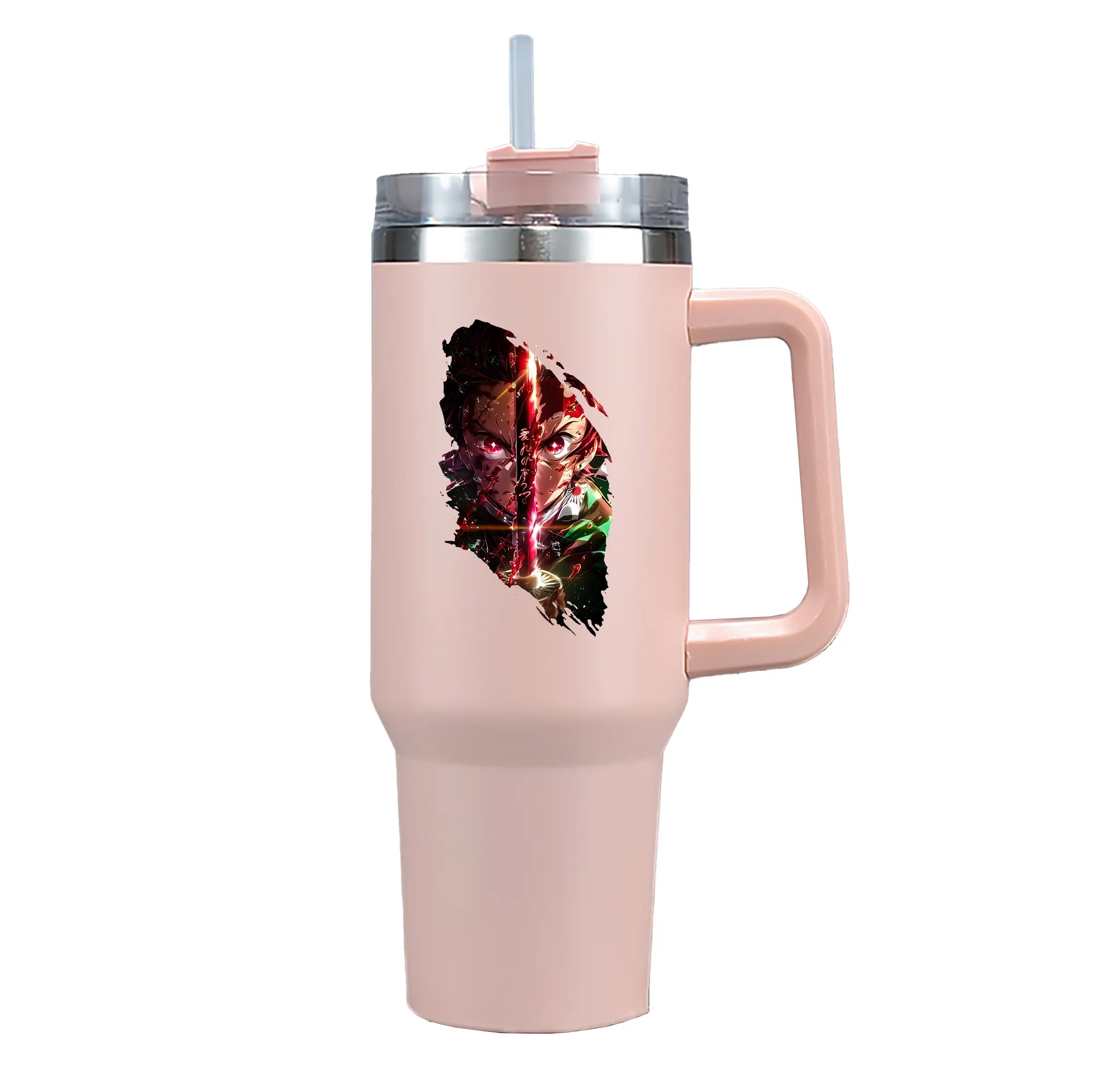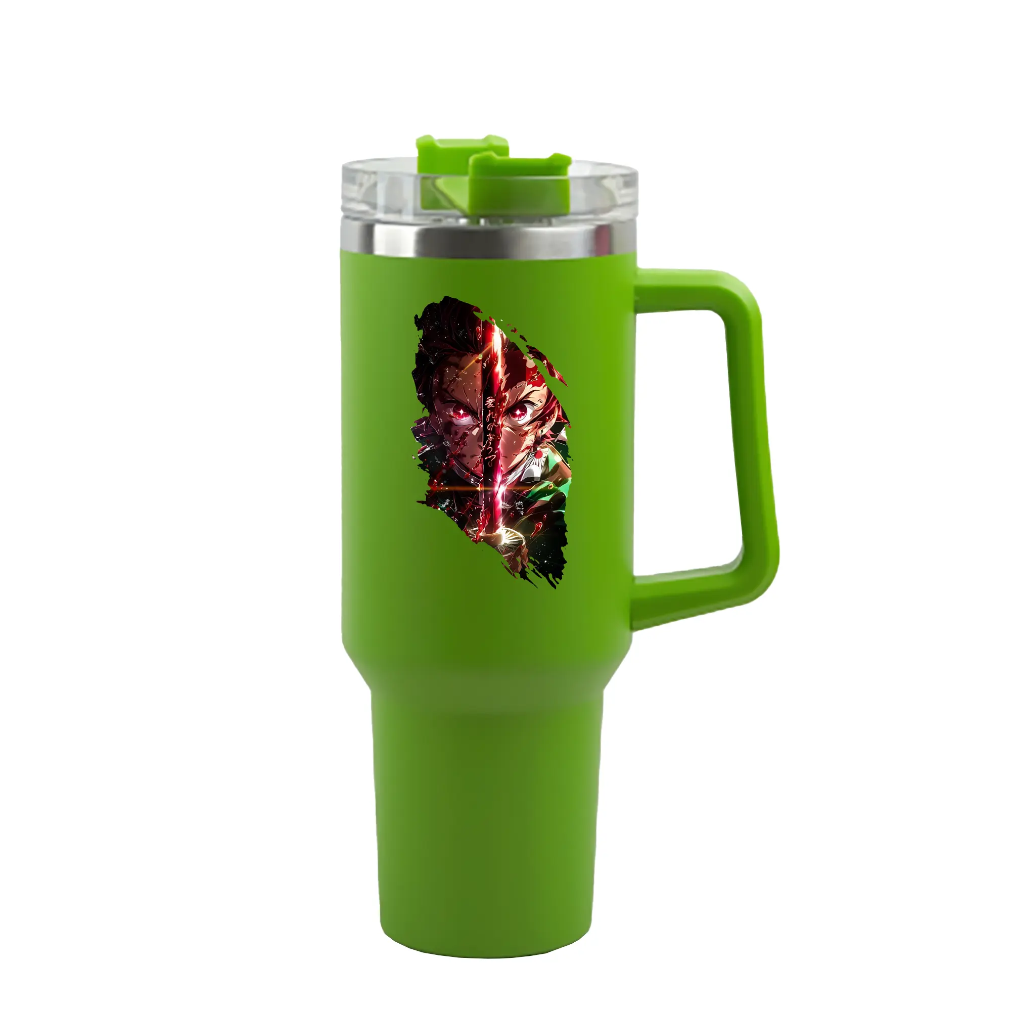 鬼滅の刃 グッズ,竈門 炭治郎 - 1200mL 車用タンブラー ・ クリスタルステッカー ・ 304ステンレス 内側 ・ 201ステンレス 外側 ・ 保温 保冷 ・ ハンドル&ストロー付き ・ 通勤 ドライブ アウトドア用