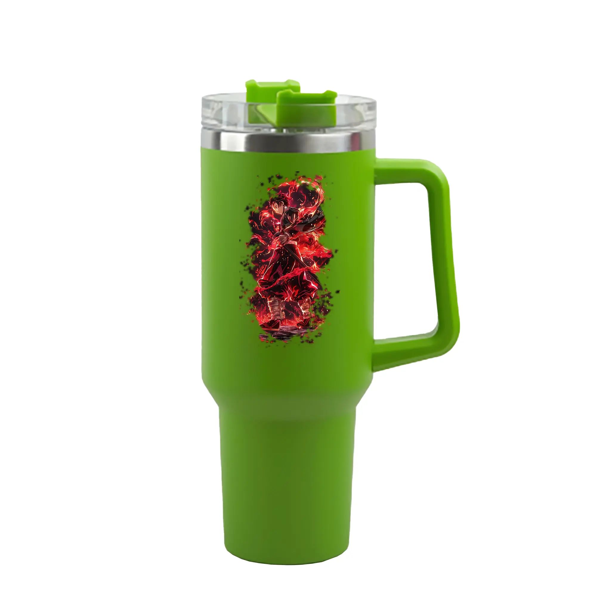 鬼滅の刃 グッズ,竈門 炭治郎 - 1200mL 車用タンブラー ・ クリスタルステッカー ・ 304ステンレス 内側 ・ 201ステンレス 外側 ・ 保温 保冷 ・ ハンドル&ストロー付き ・ 通勤 ドライブ アウトドア用