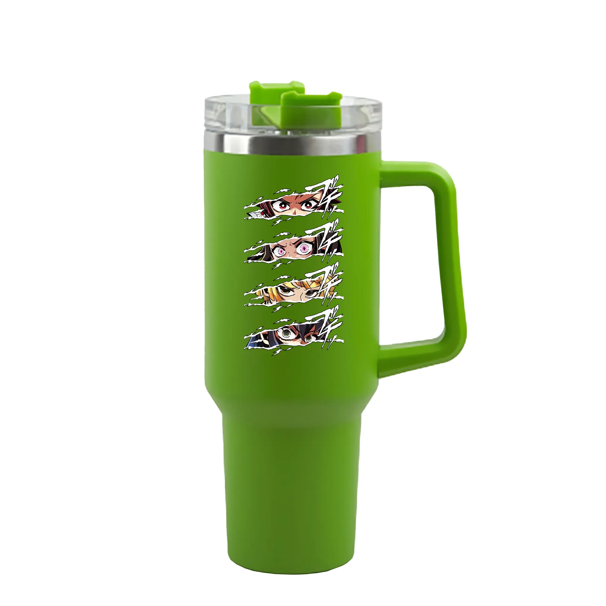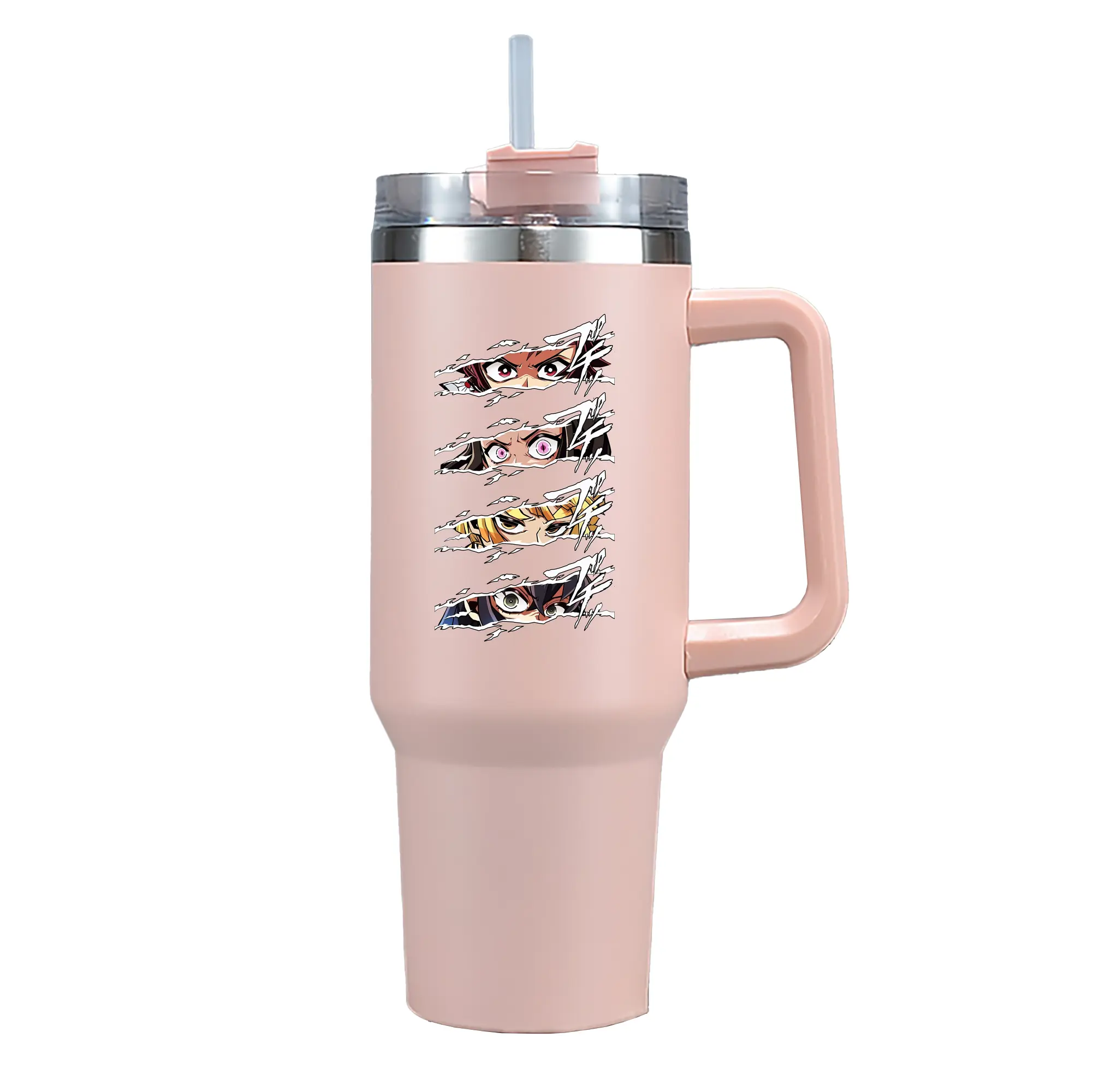 鬼滅の刃 グッズ,竈門 炭治郎 - 1200mL 車用タンブラー ・ クリスタルステッカー ・ 304ステンレス 内側 ・ 201ステンレス 外側 ・ 保温 保冷 ・ ハンドル&ストロー付き ・ 通勤 ドライブ アウトドア用