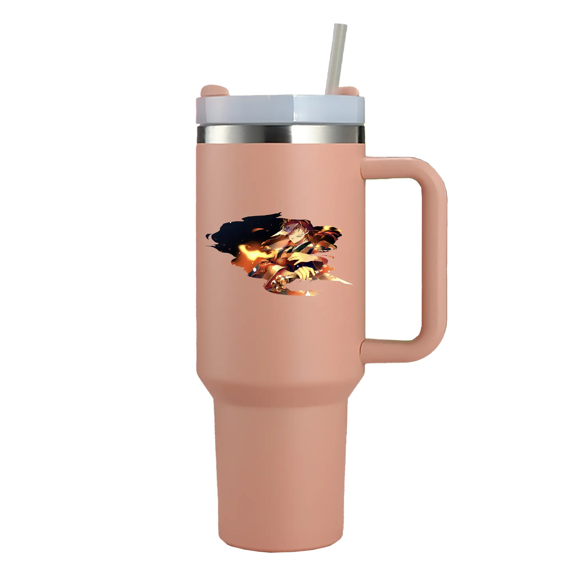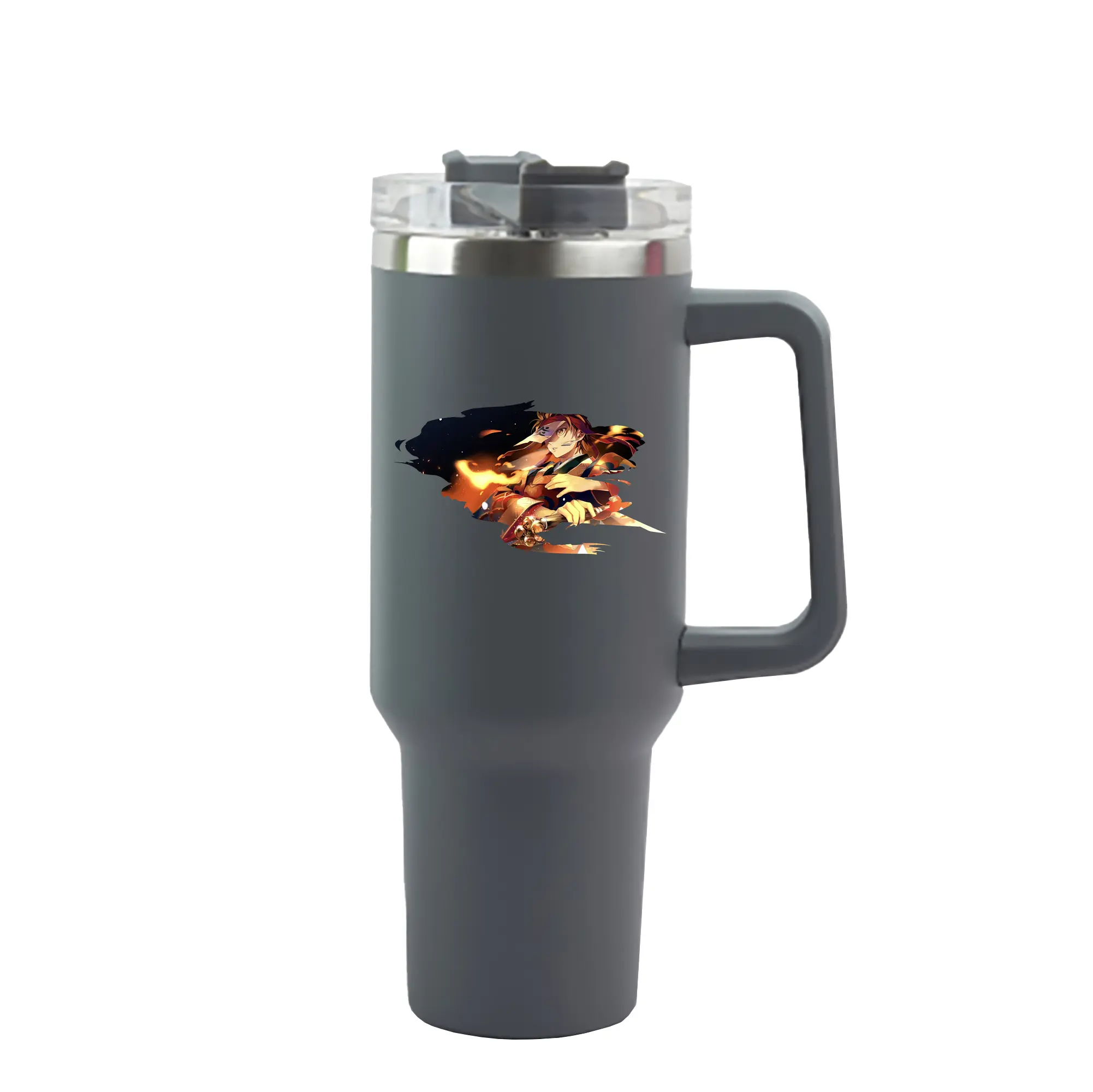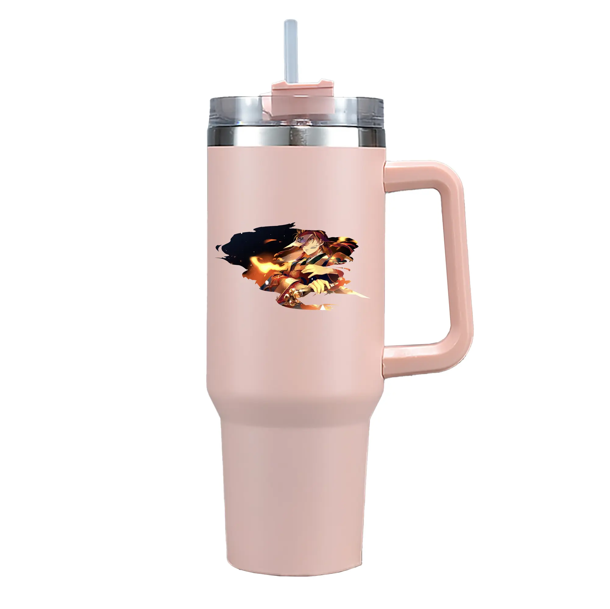 鬼滅の刃 グッズ,竈門 炭治郎 - 1200mL 車用タンブラー ・ クリスタルステッカー ・ 304ステンレス 内側 ・ 201ステンレス 外側 ・ 保温 保冷 ・ ハンドル&ストロー付き ・ 通勤 ドライブ アウトドア用