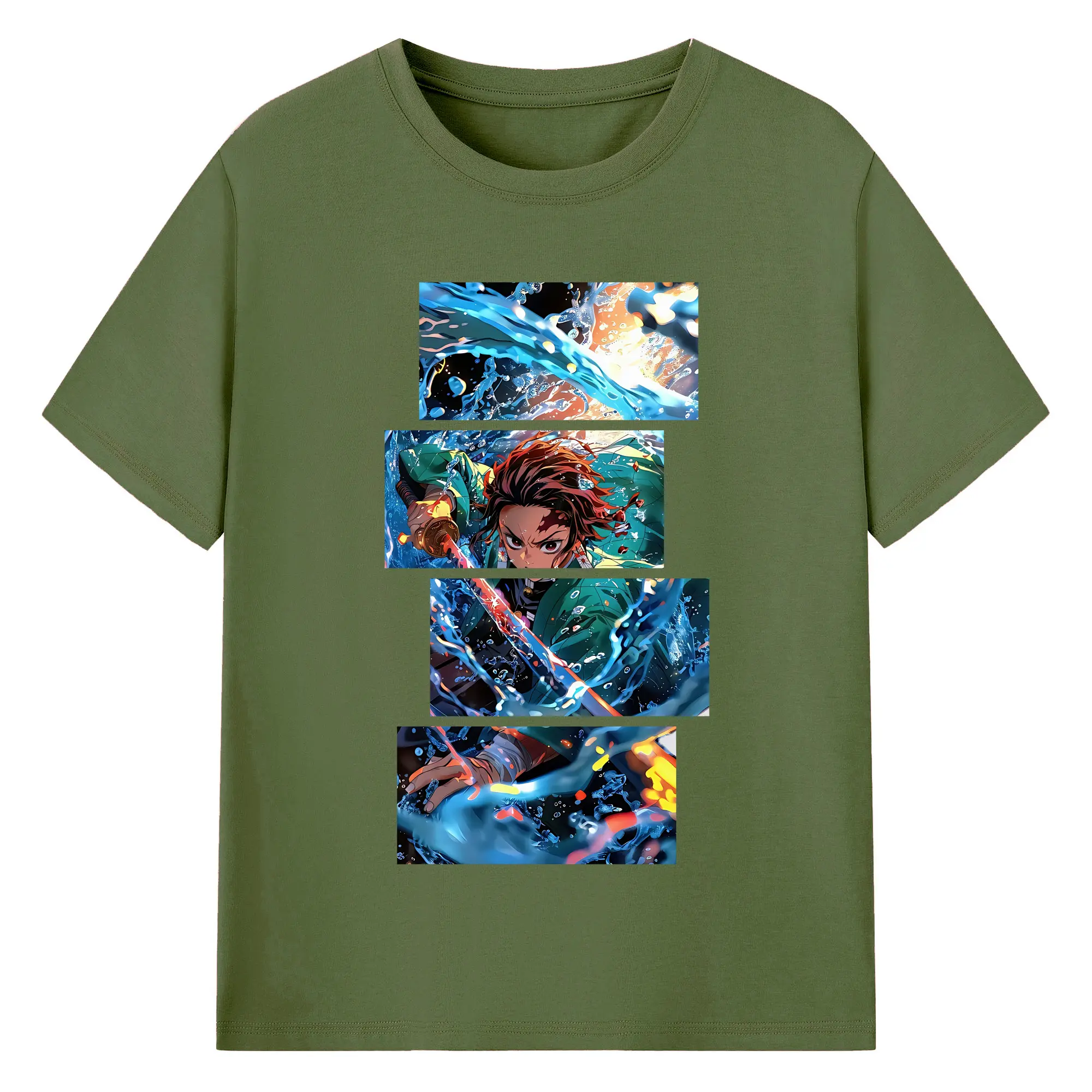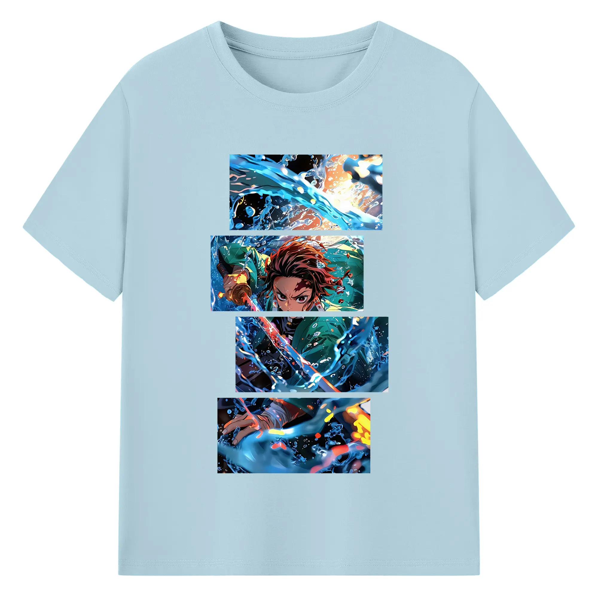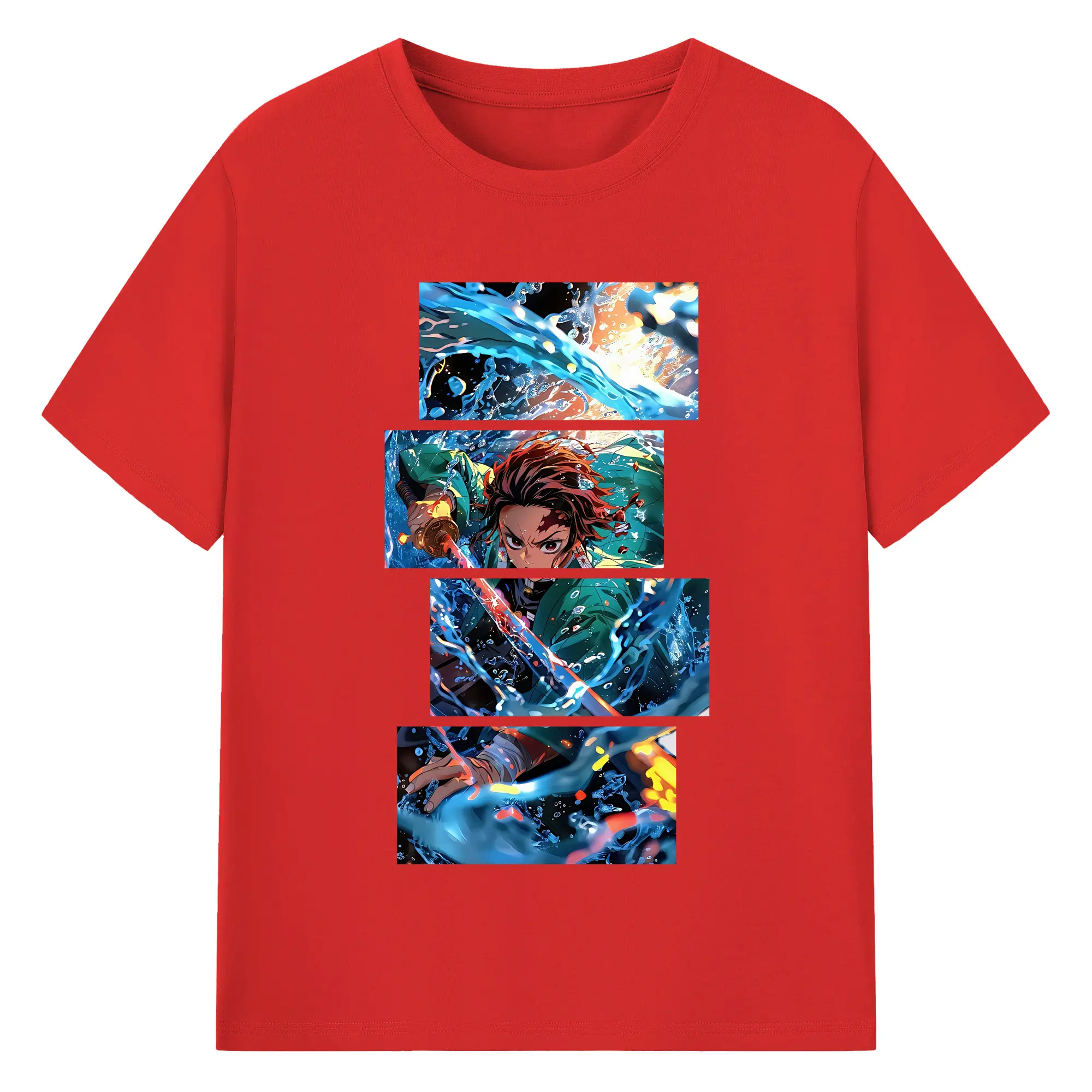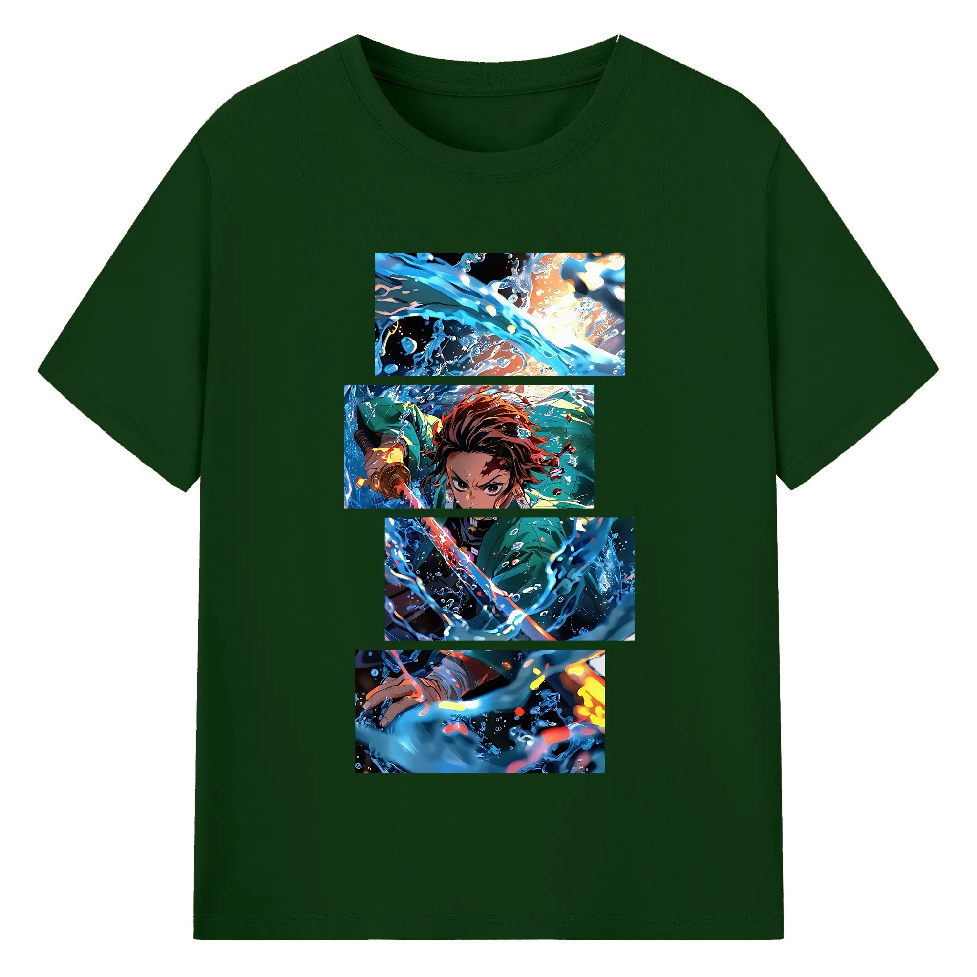 鬼滅の刃 グッズ,竈門 炭治郎 - 綿100% 半袖Tシャツ ・ バックプリント ・ 快適 通気性 ・ 日常使い 散歩 スポーツ用