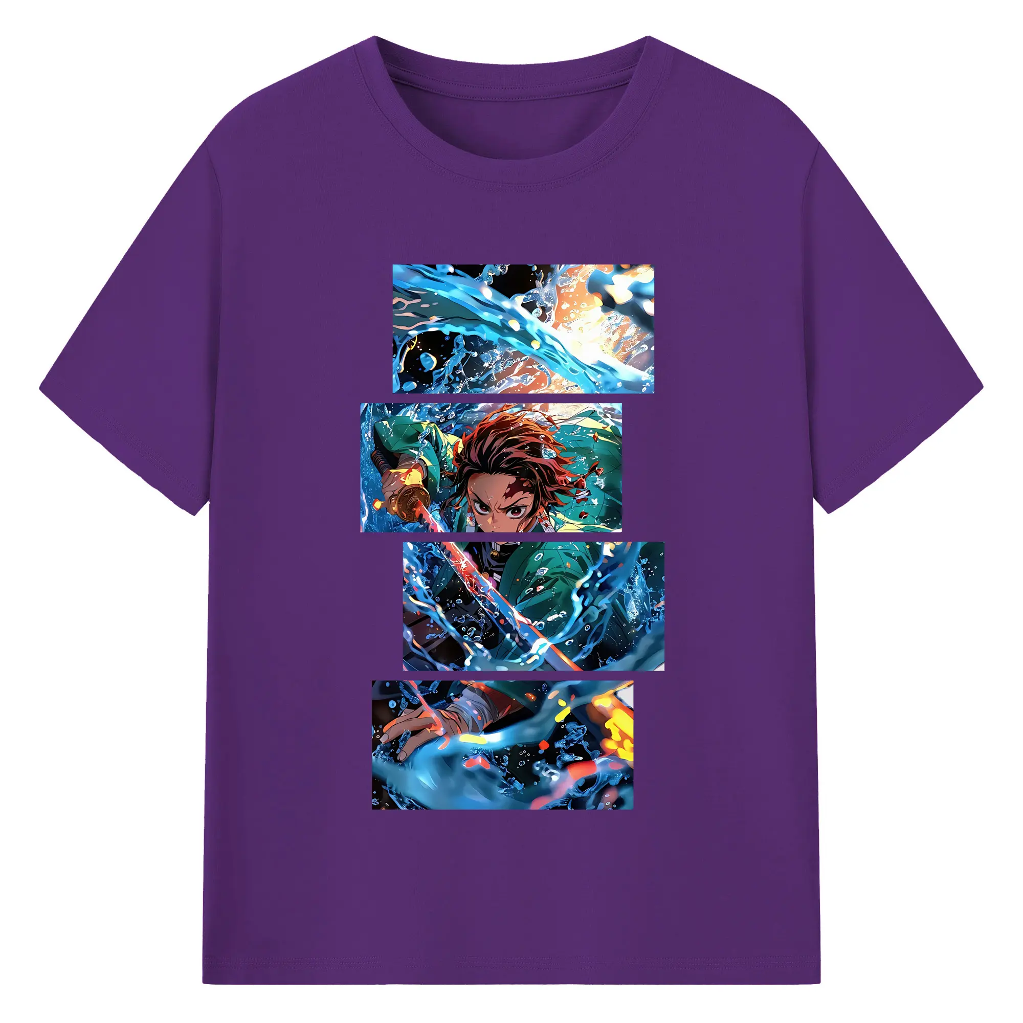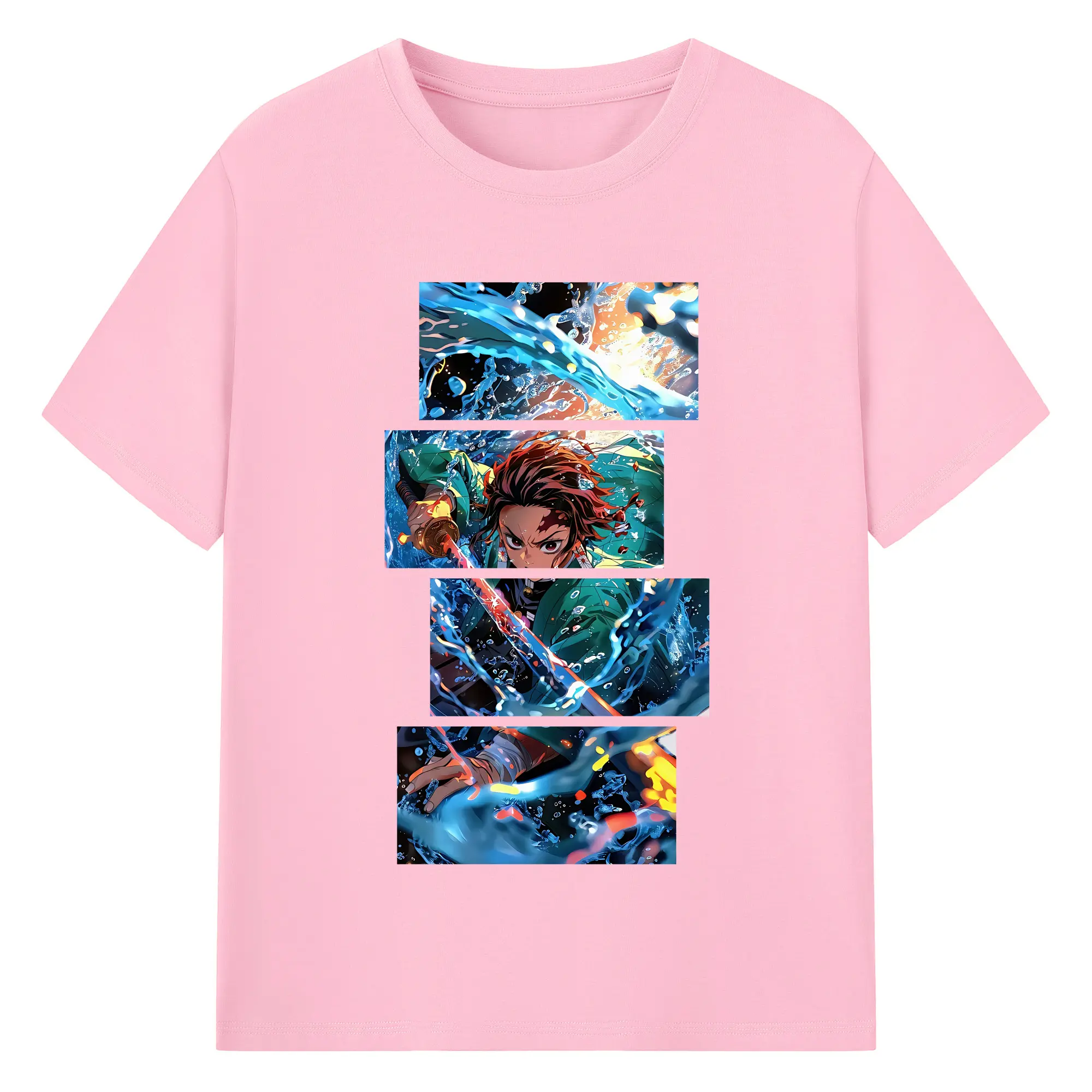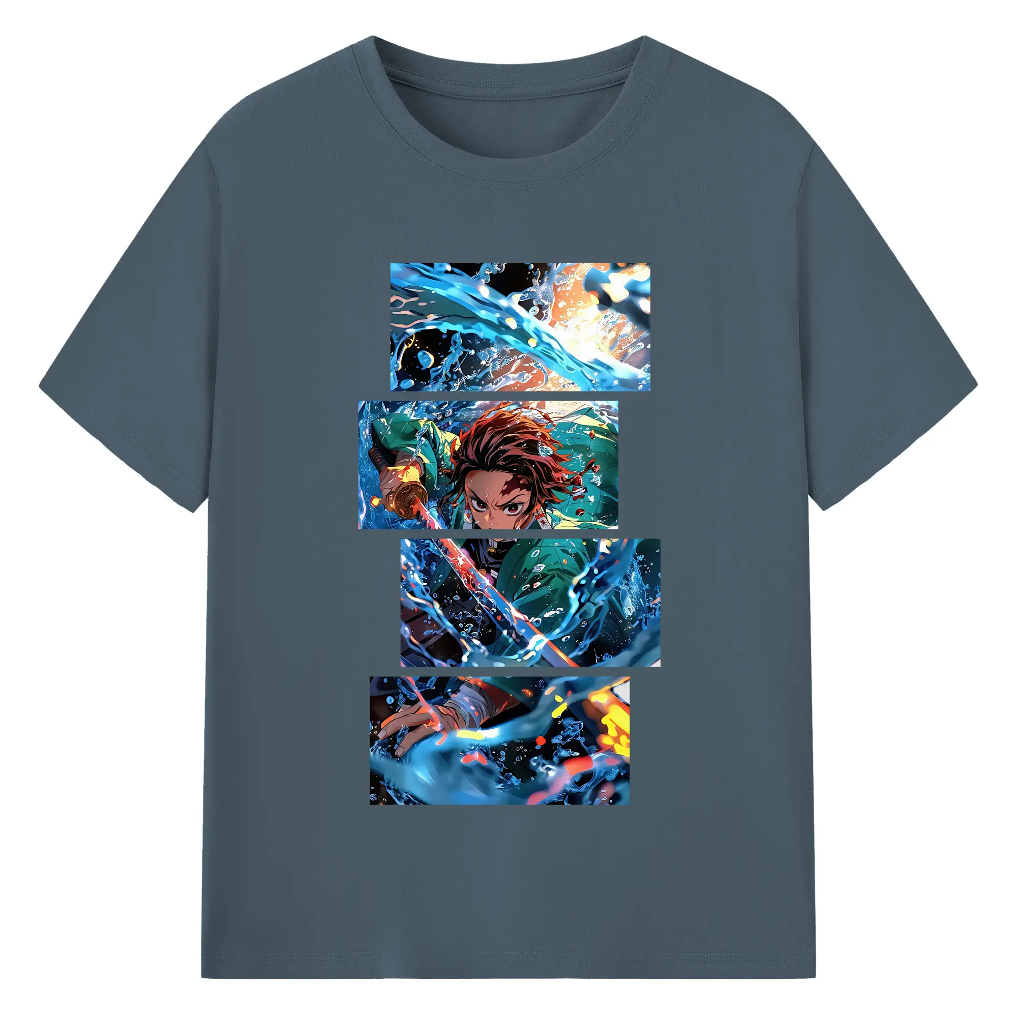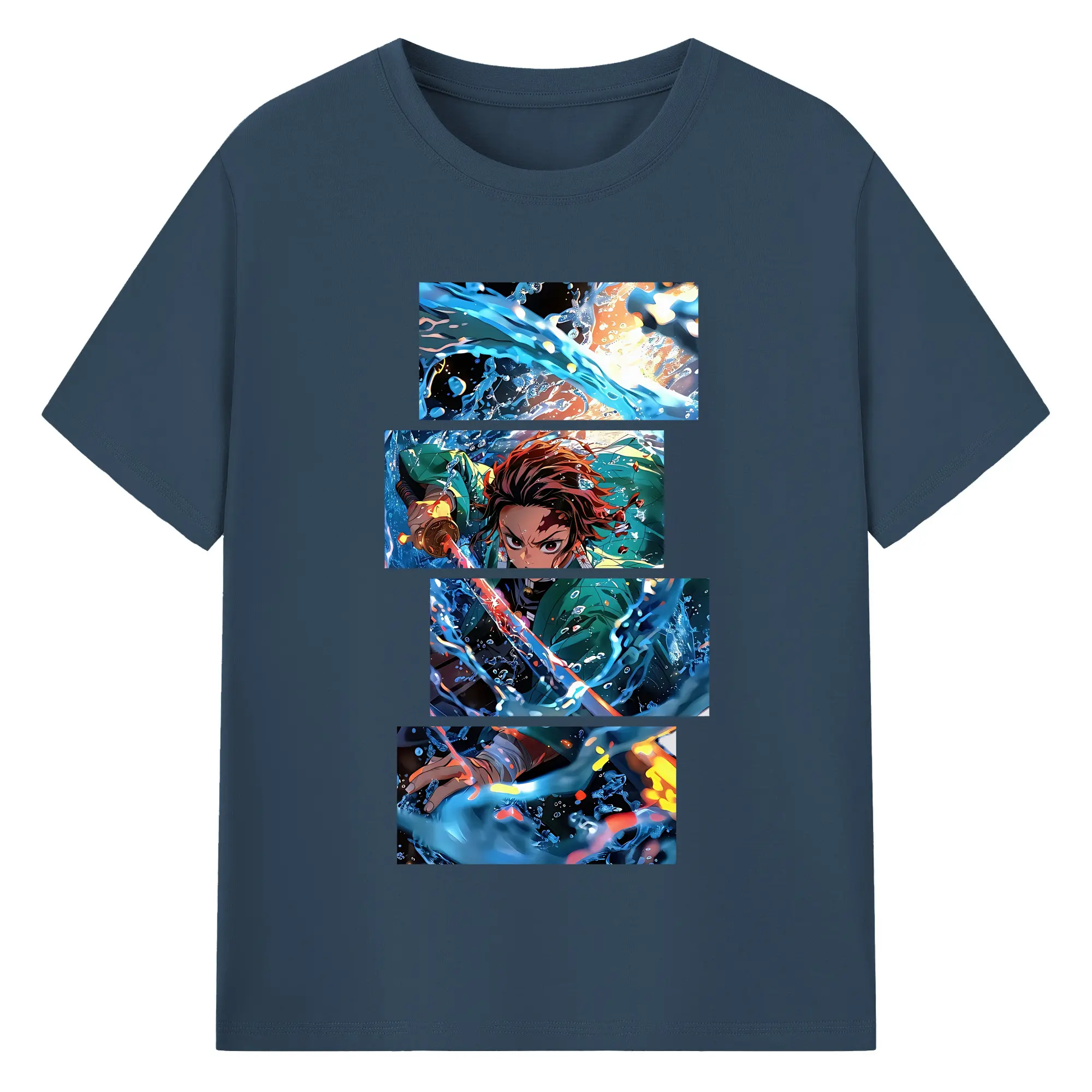 鬼滅の刃 グッズ,竈門 炭治郎 - 綿100% 半袖Tシャツ ・ バックプリント ・ 快適 通気性 ・ 日常使い 散歩 スポーツ用