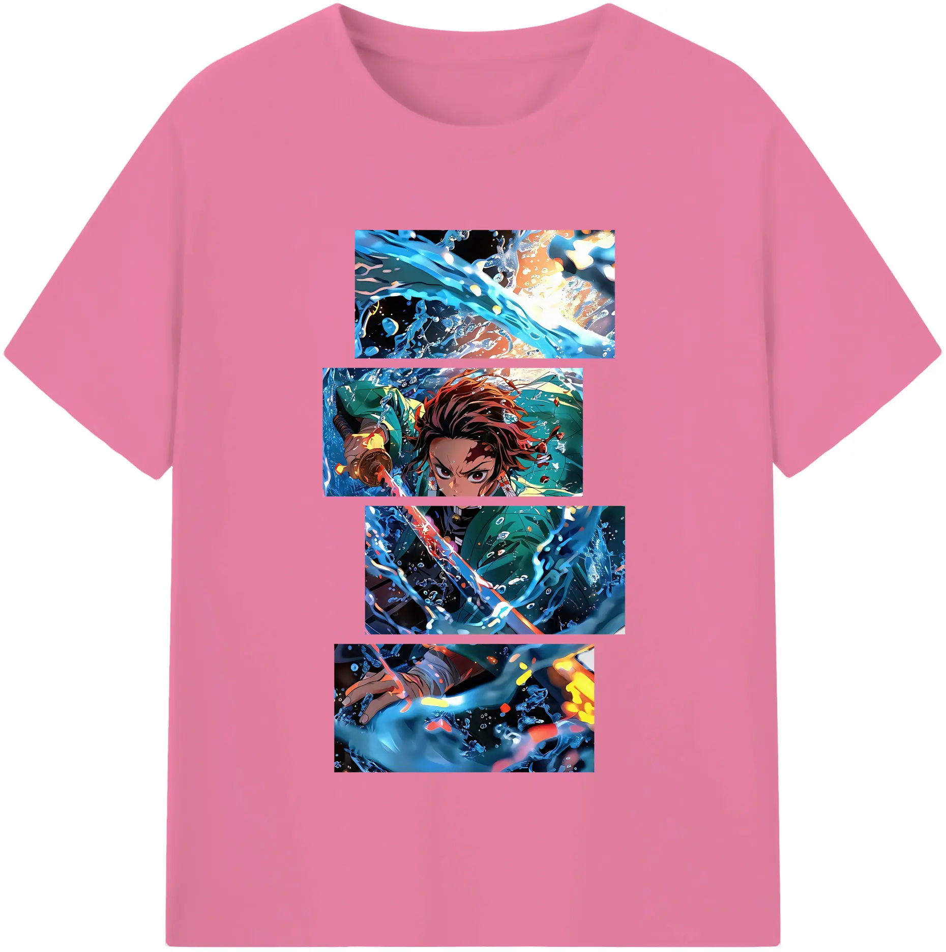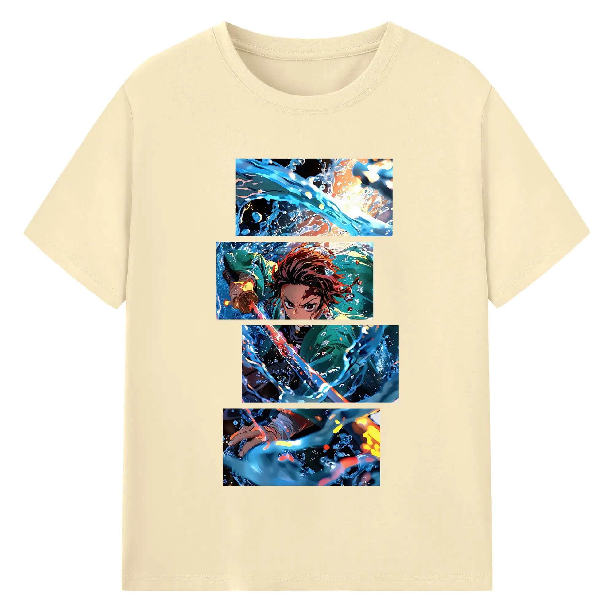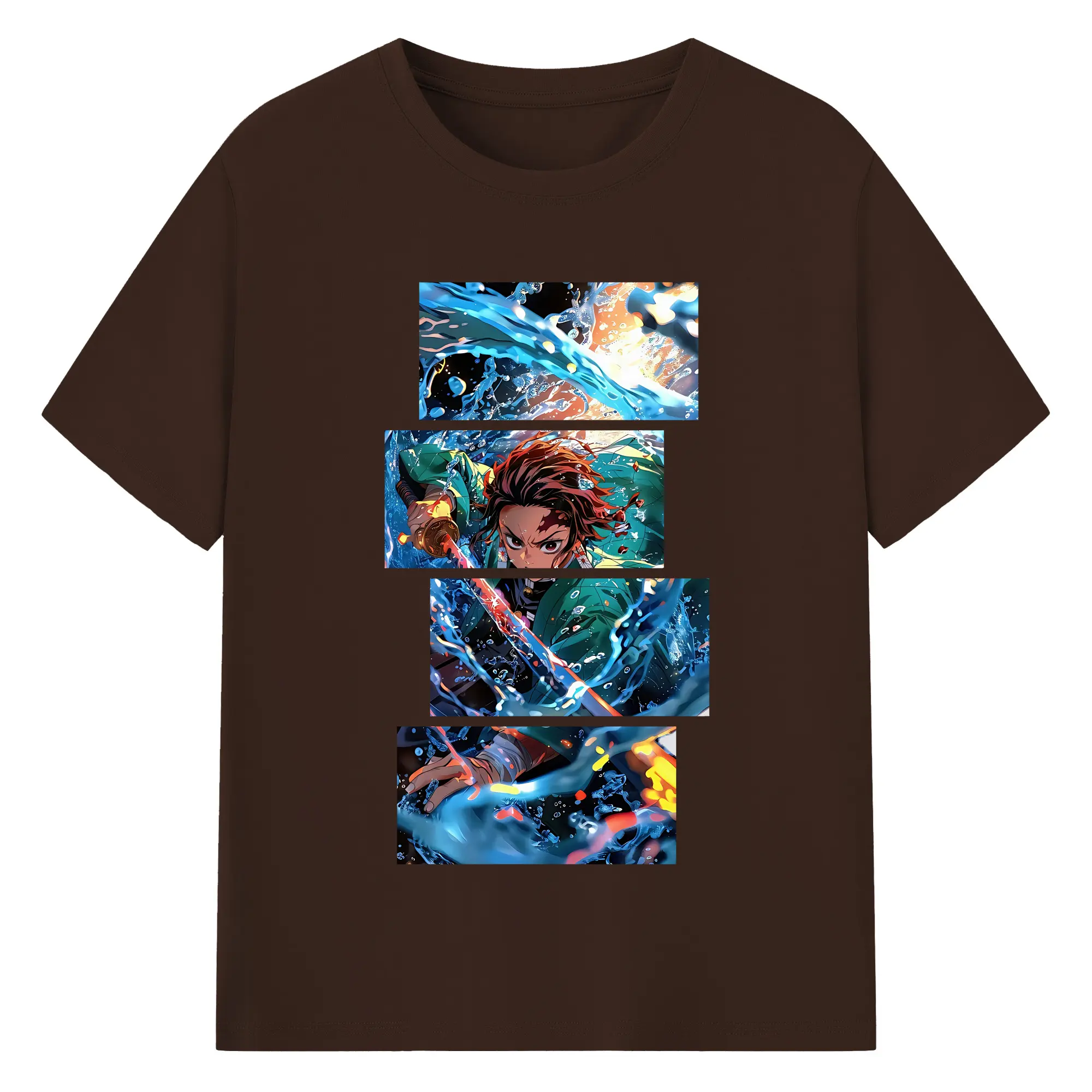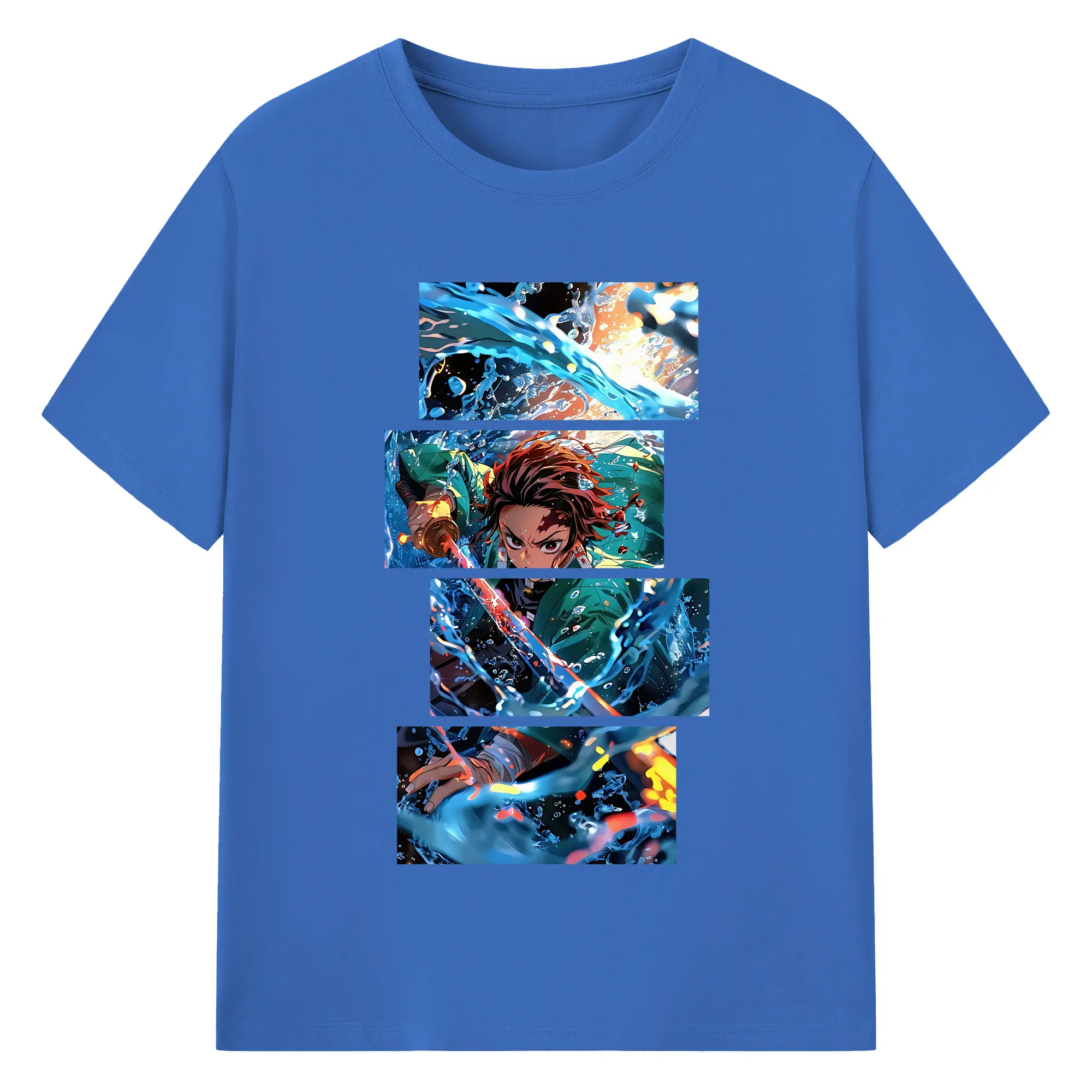 鬼滅の刃 グッズ,竈門 炭治郎 - 綿100% 半袖Tシャツ ・ バックプリント ・ 快適 通気性 ・ 日常使い 散歩 スポーツ用