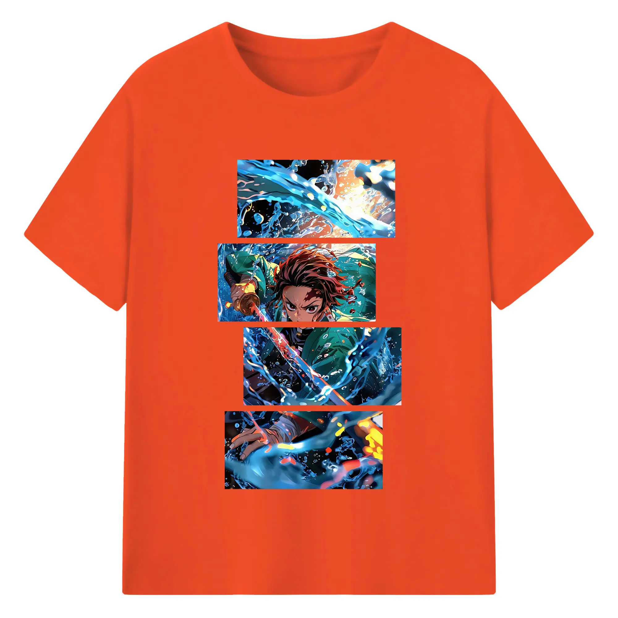 鬼滅の刃 グッズ,竈門 炭治郎 - 綿100% キッズTシャツ ・ フロントプリント ・ 快適 通気性 ・ スポーツ カジュアル 散歩用