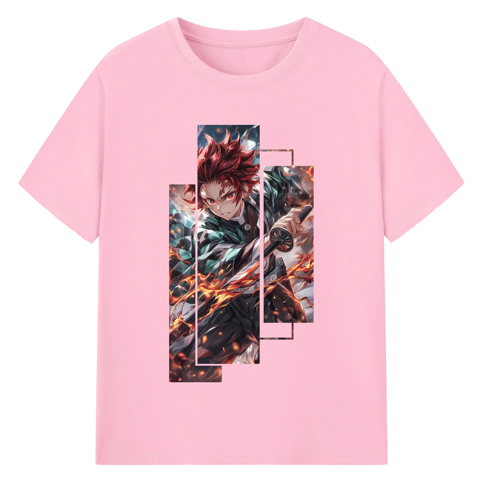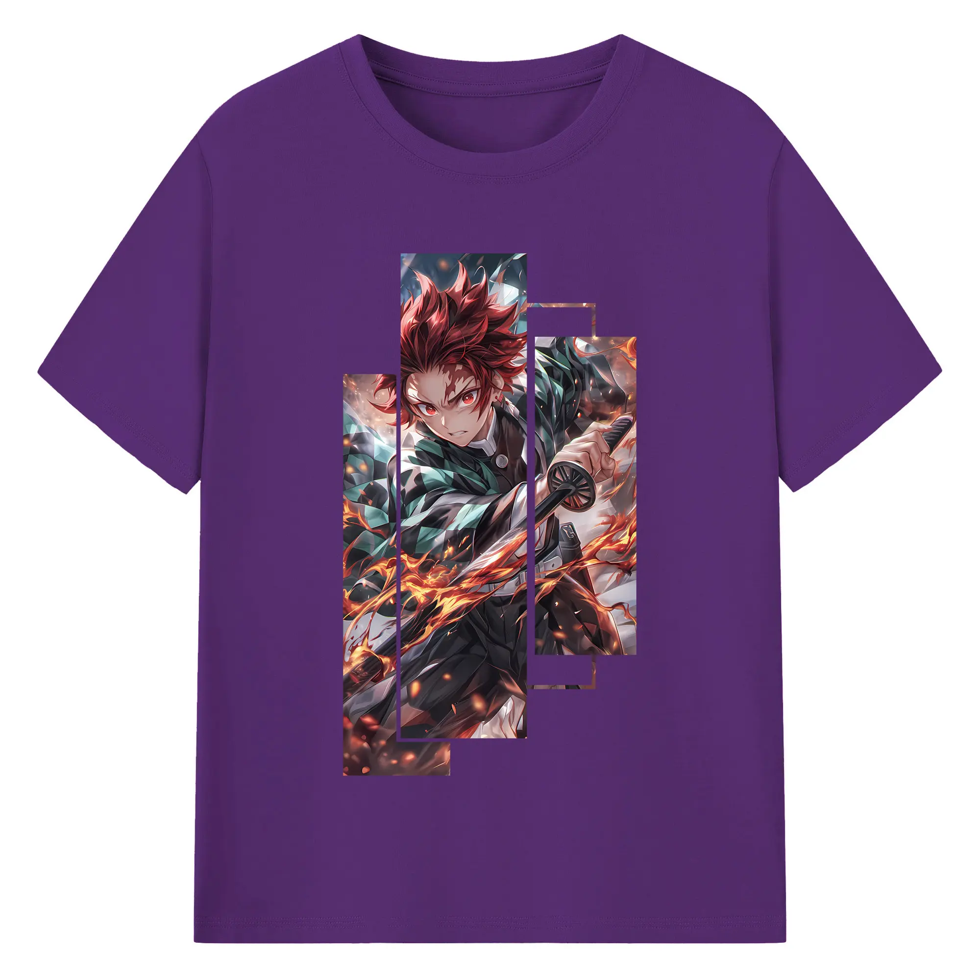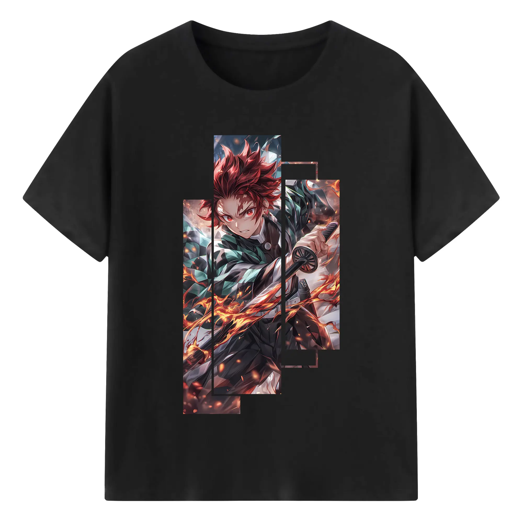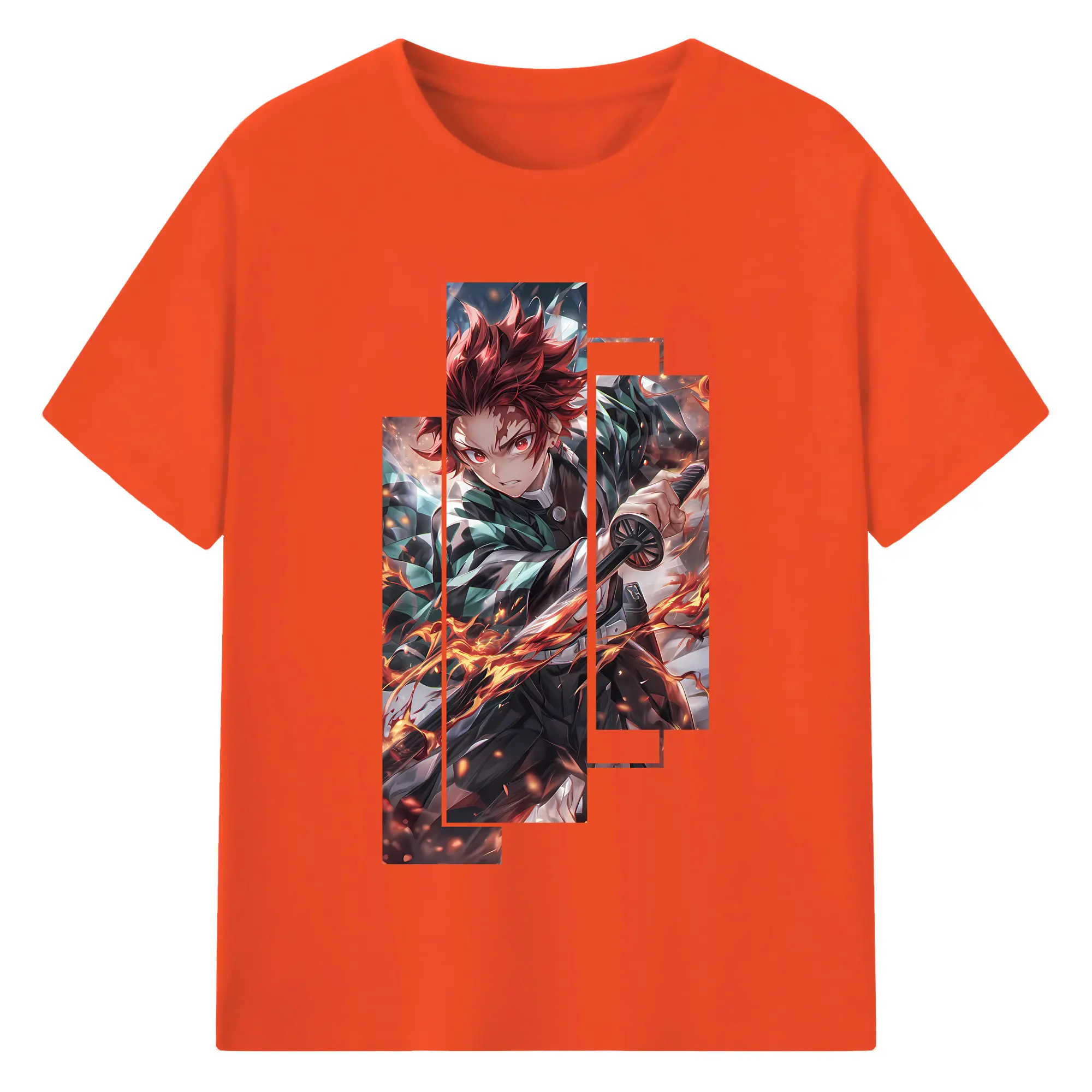 鬼滅の刃 グッズ,竈門 炭治郎 - 綿100% 半袖Tシャツ ・ バックプリント ・ 快適 通気性 ・ 日常使い 散歩 スポーツ用