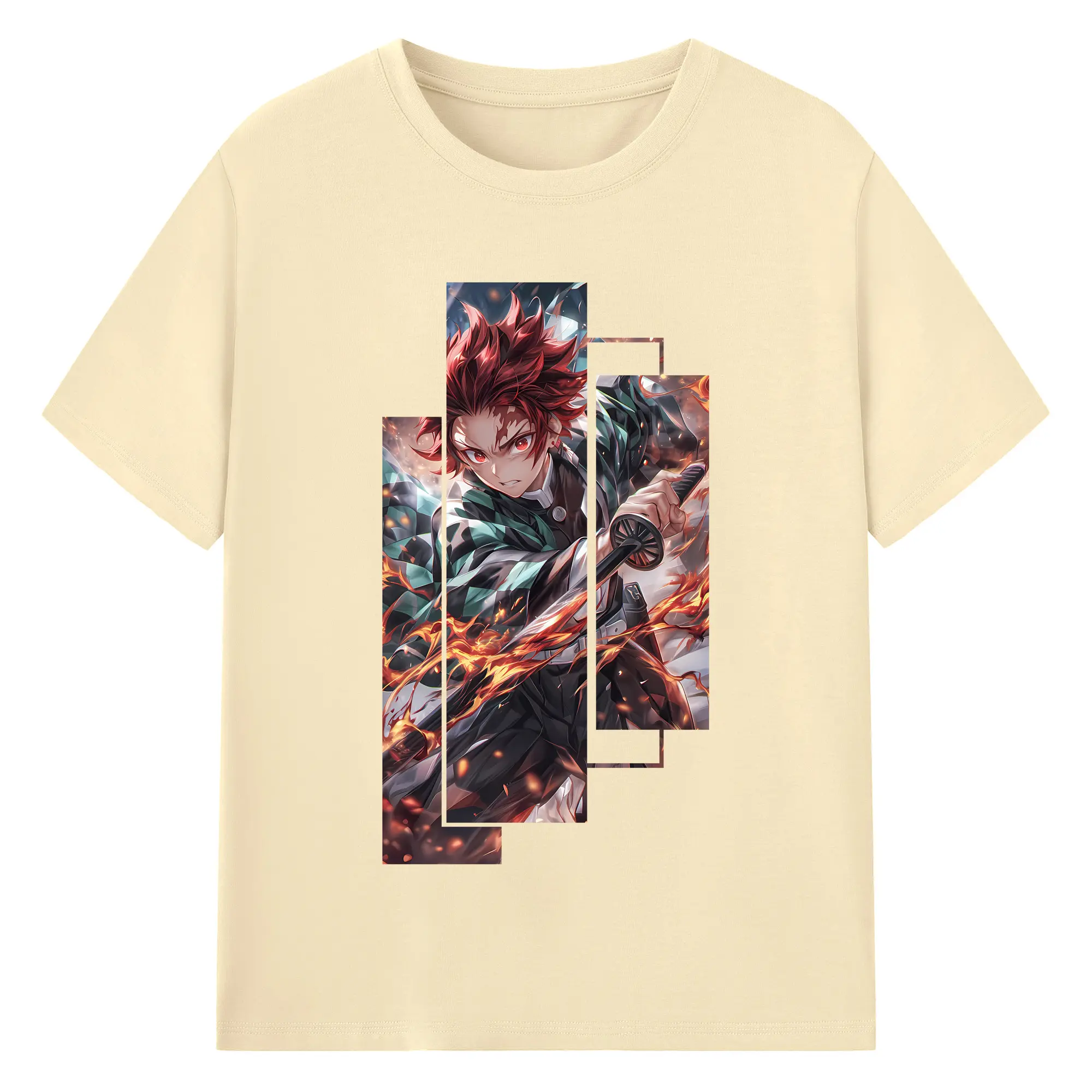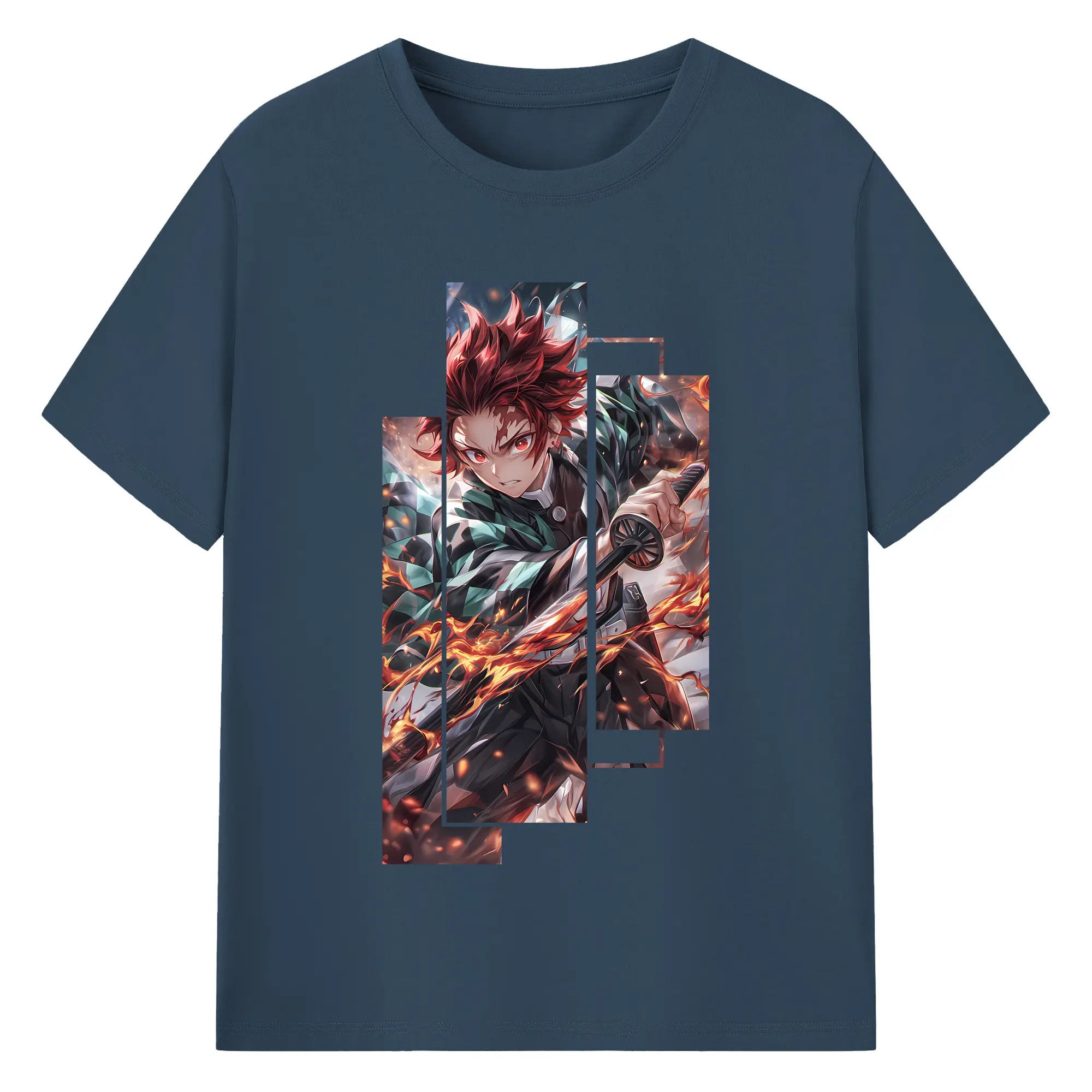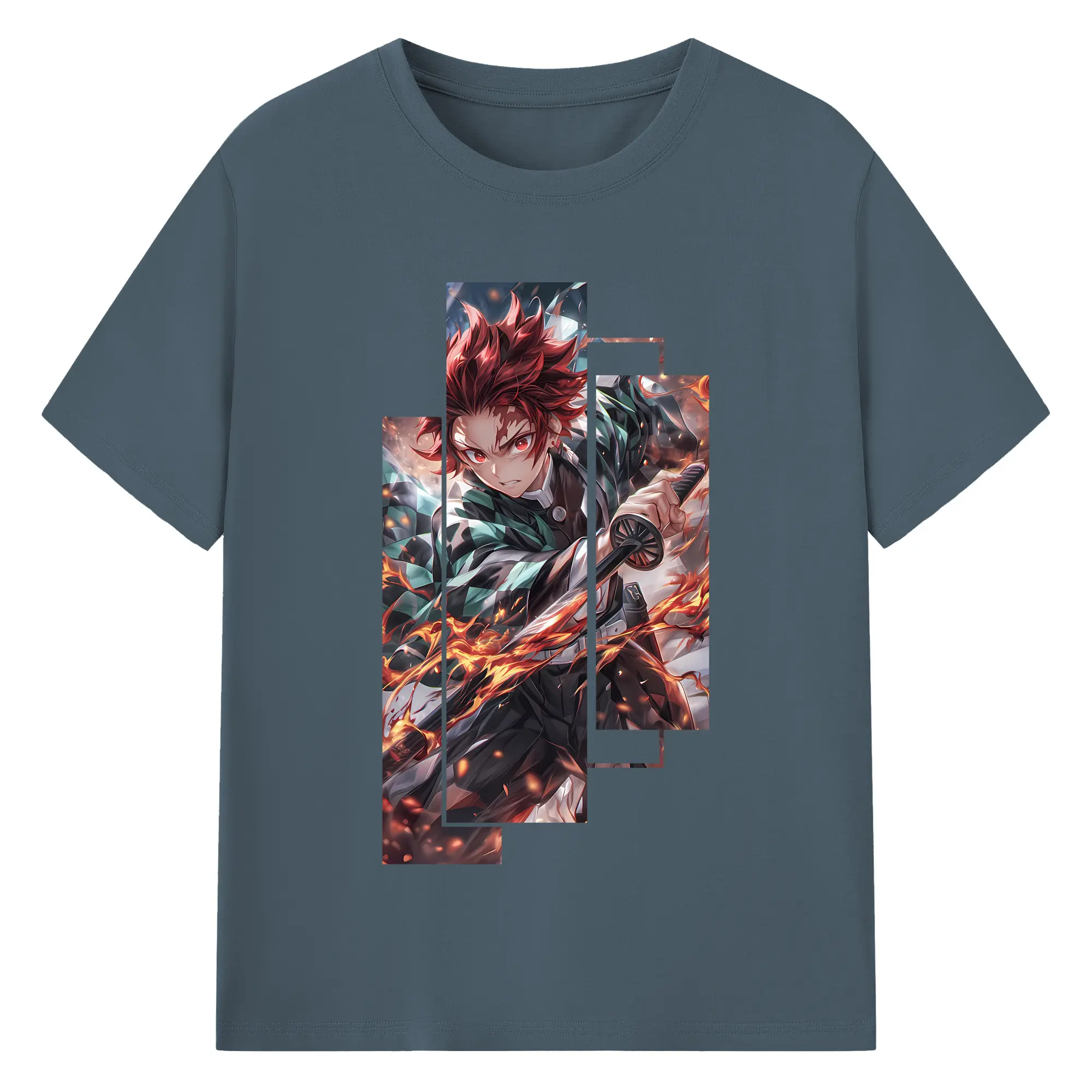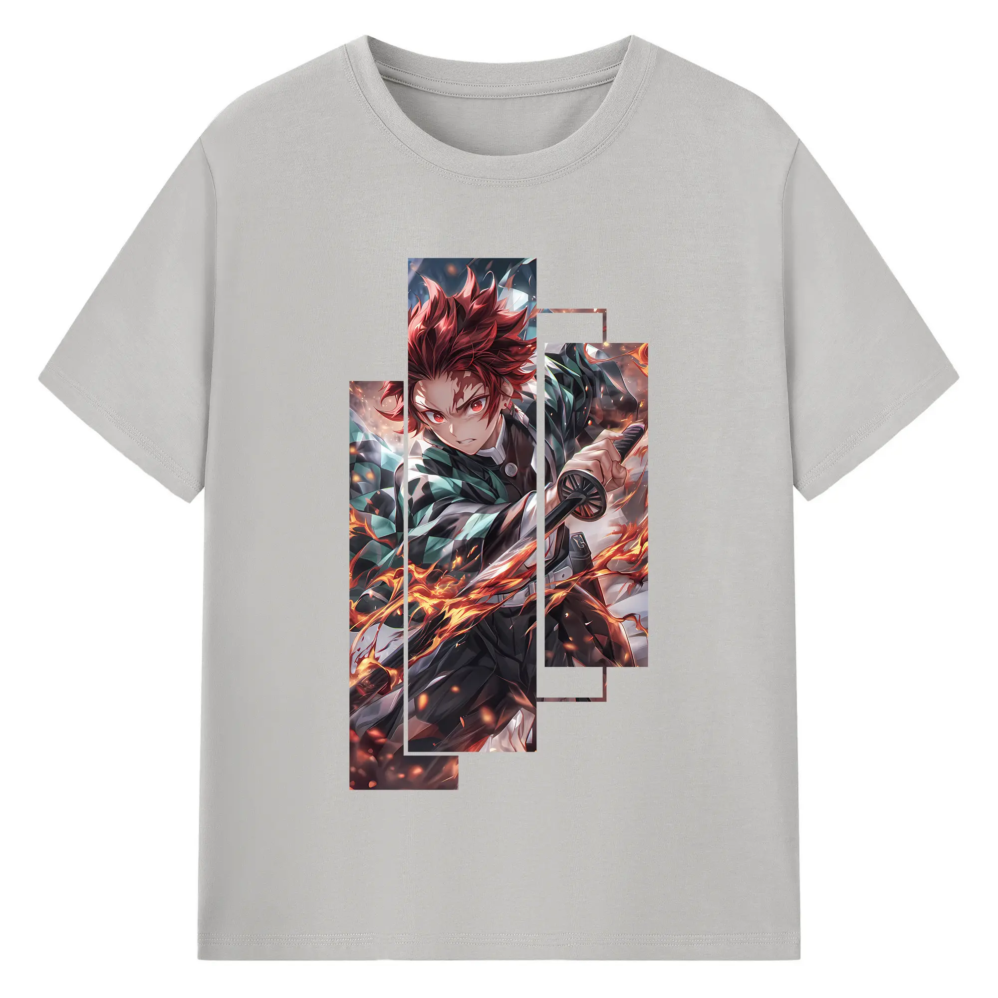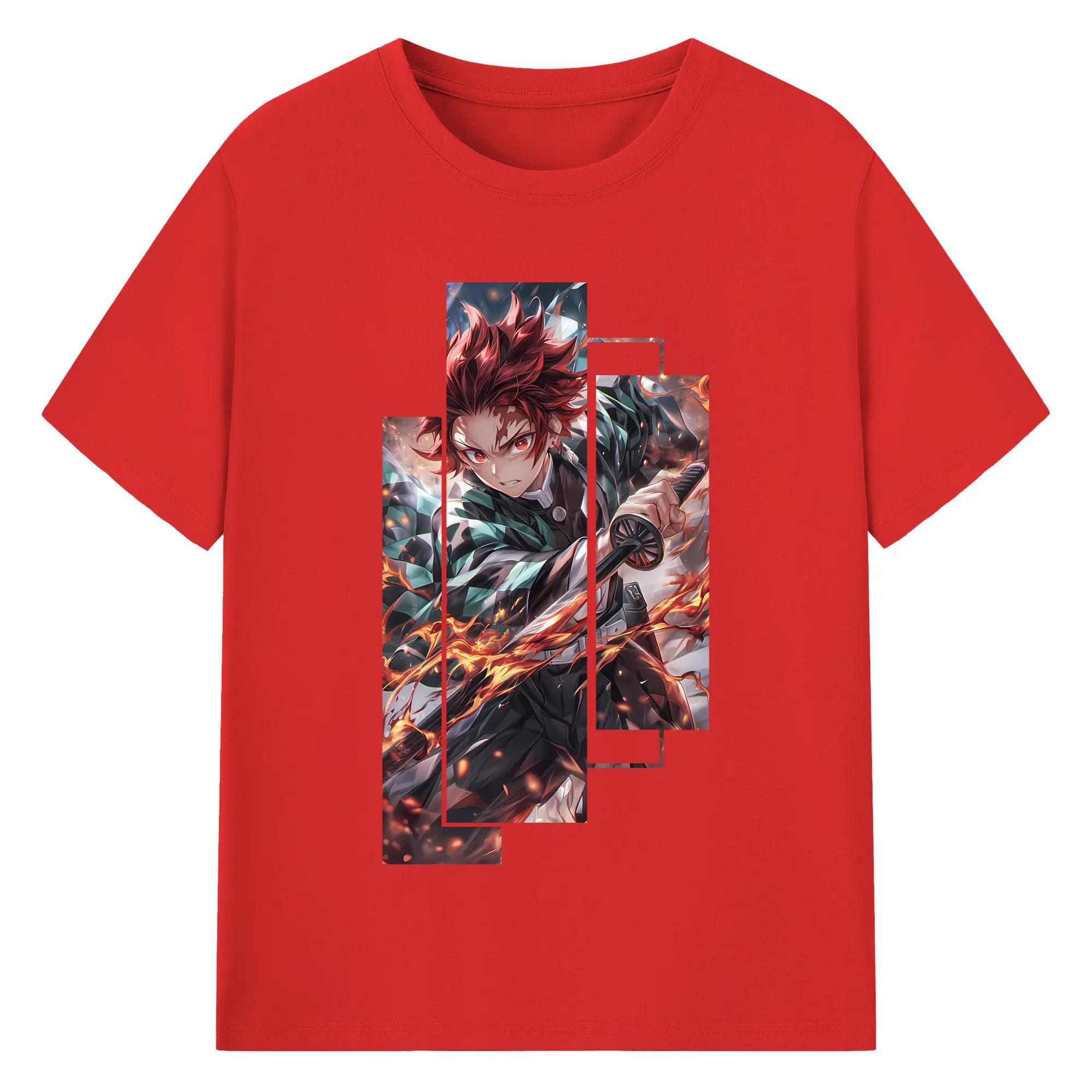 鬼滅の刃 グッズ,竈門 炭治郎 - 綿100% 半袖Tシャツ ・ バックプリント ・ 快適 通気性 ・ 日常使い 散歩 スポーツ用