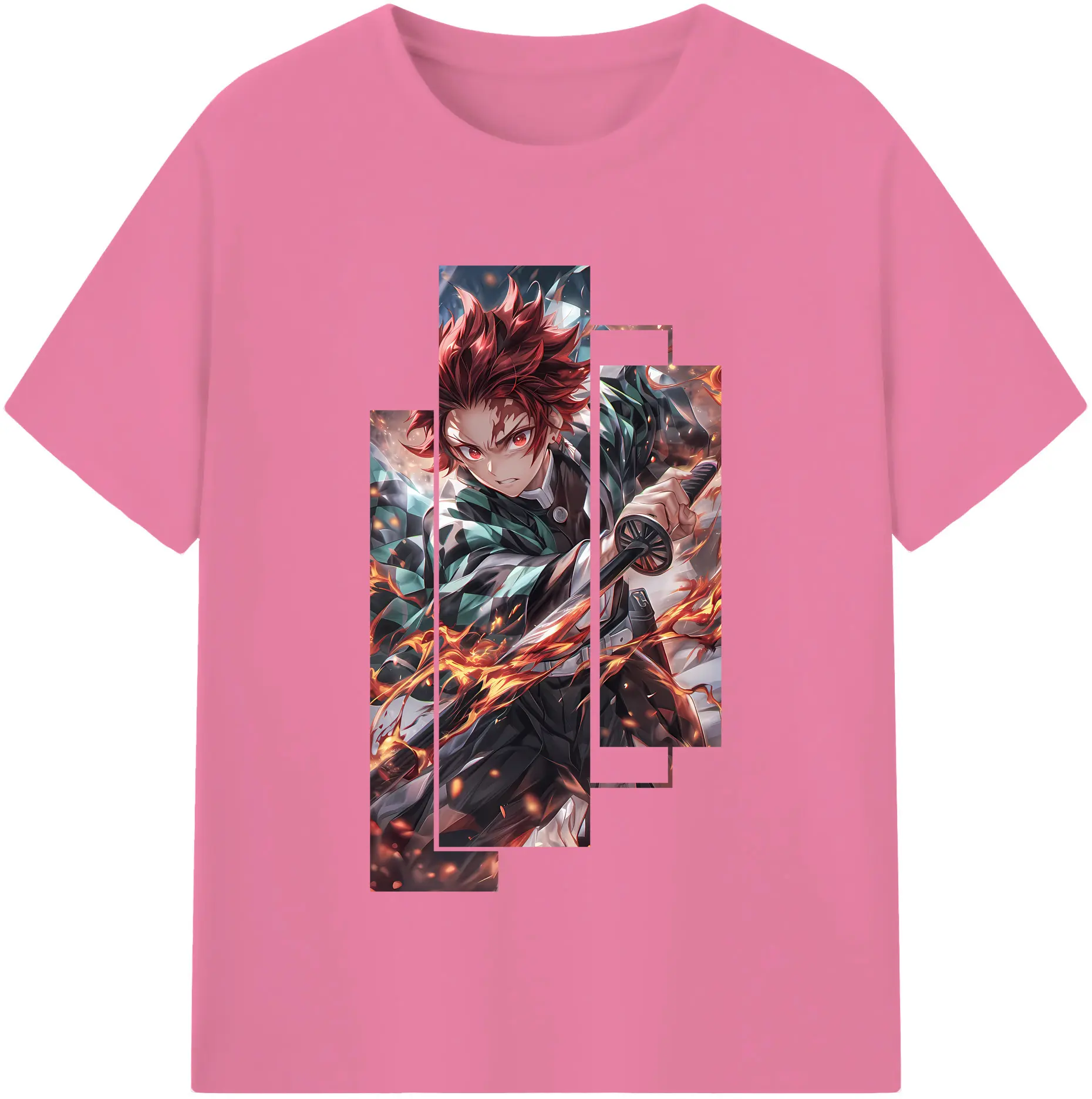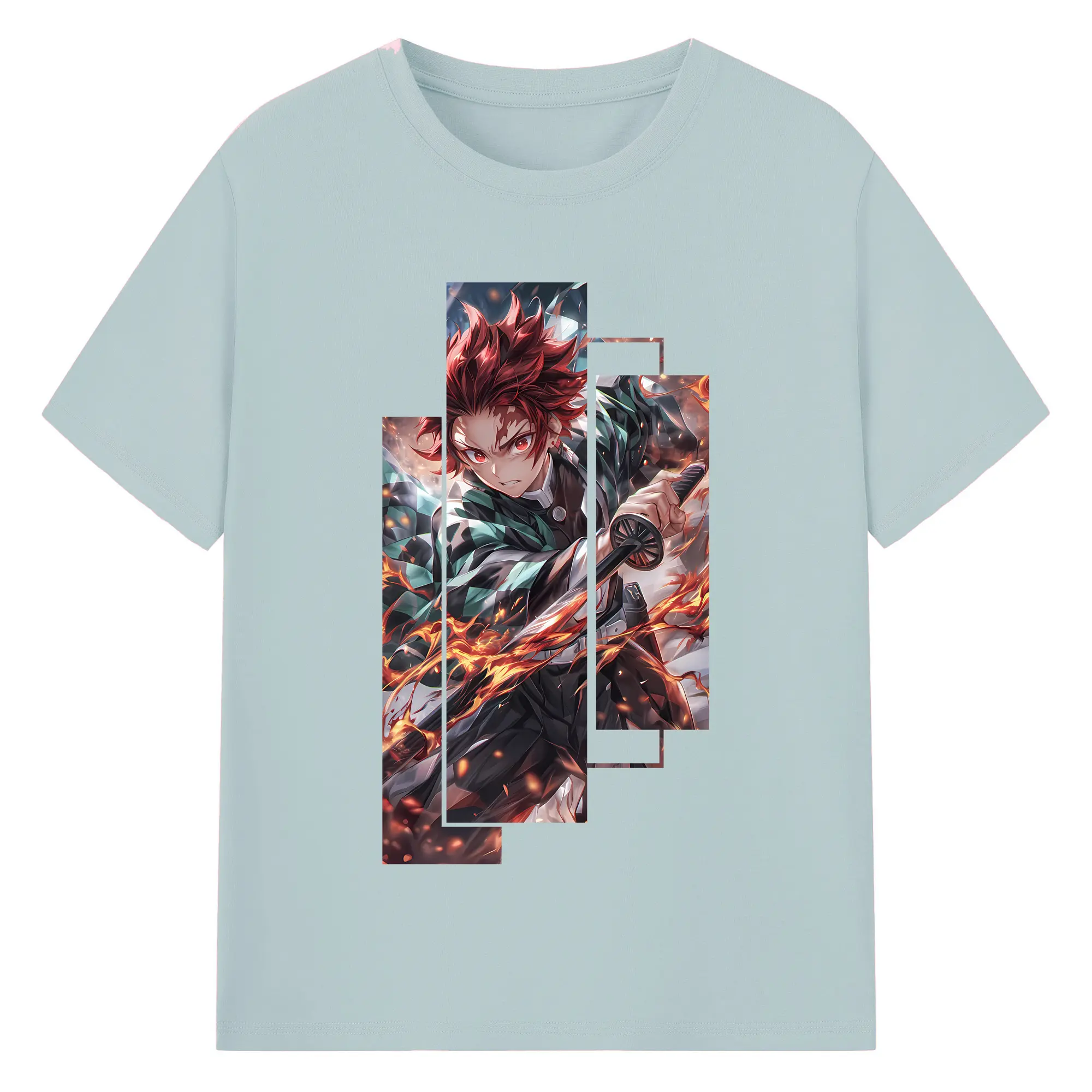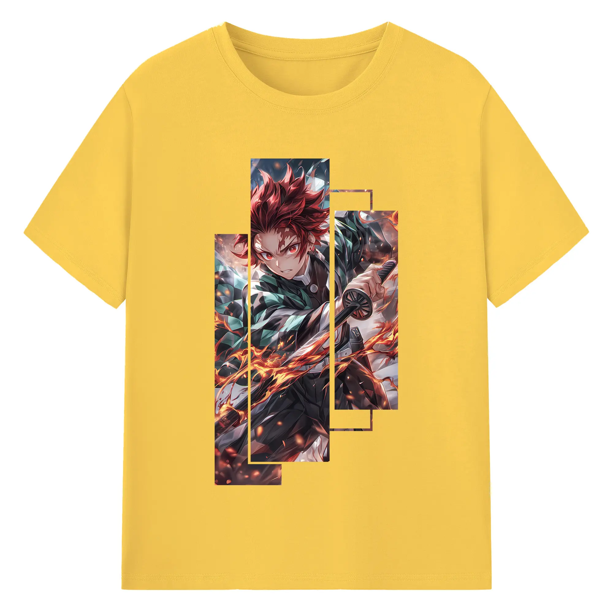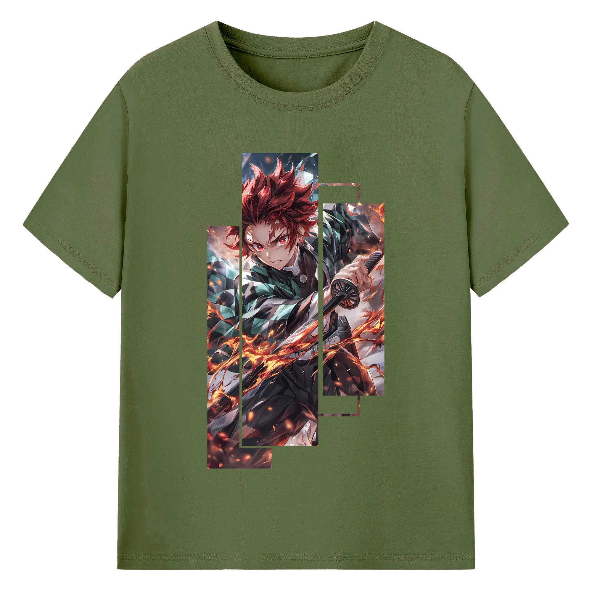 鬼滅の刃 グッズ,竈門 炭治郎 - 綿100% 半袖Tシャツ ・ バックプリント ・ 快適 通気性 ・ 日常使い 散歩 スポーツ用
