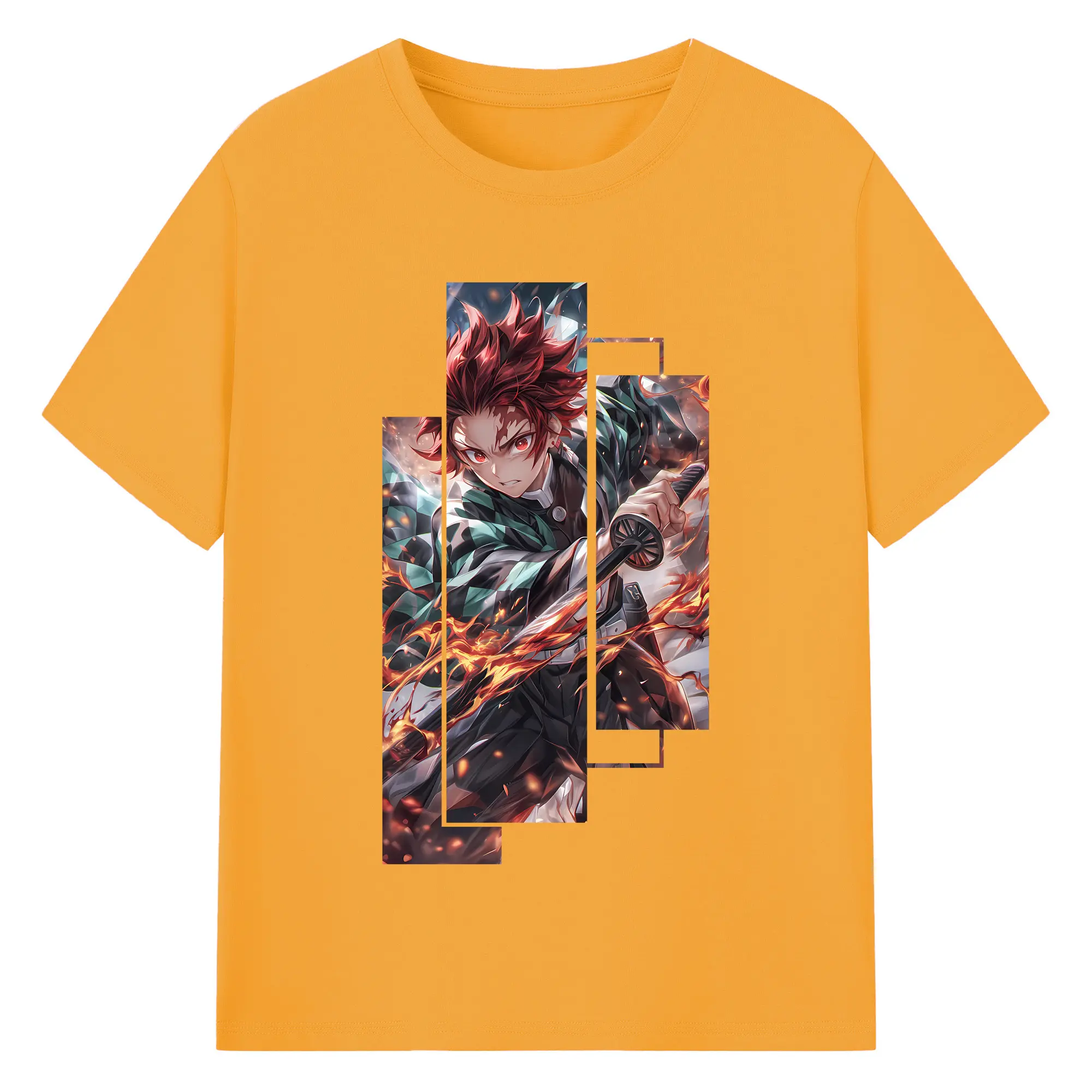 鬼滅の刃 グッズ,竈門 炭治郎 - 綿100% キッズTシャツ ・ フロントプリント ・ 快適 通気性 ・ スポーツ カジュアル 散歩用
