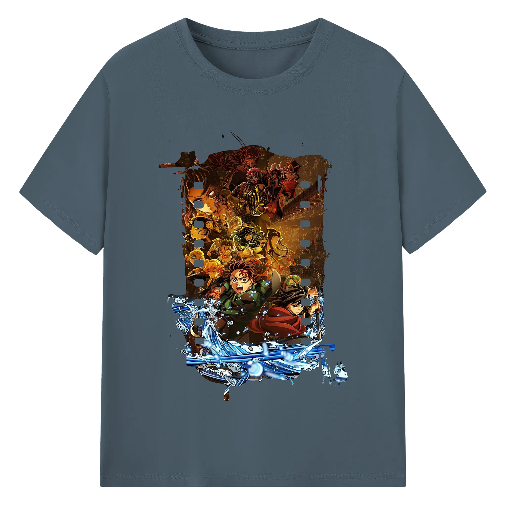 鬼滅の刃 グッズ,竈門 炭治郎 - 綿100% 半袖Tシャツ ・ バックプリント ・ 快適 通気性 ・ 日常使い 散歩 スポーツ用