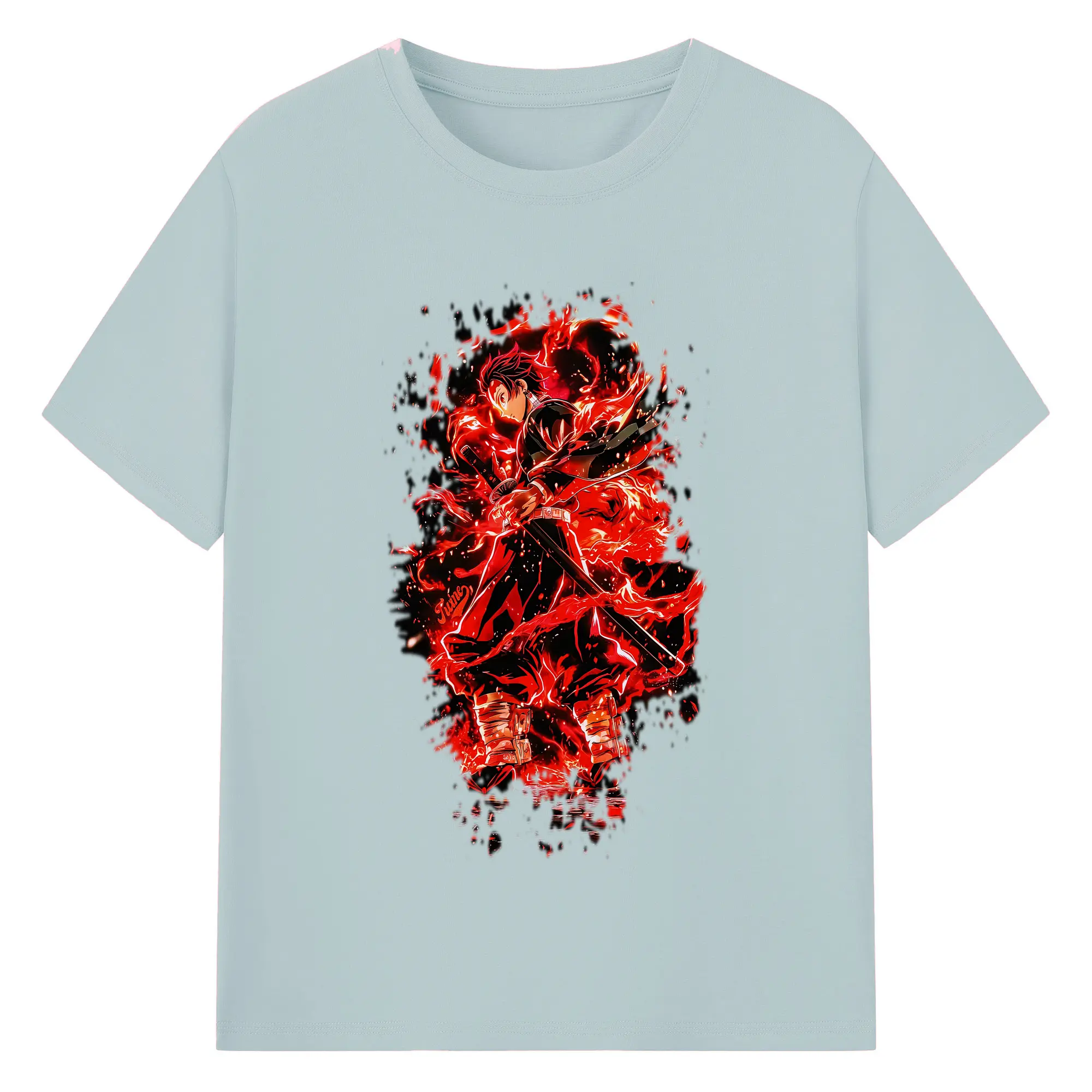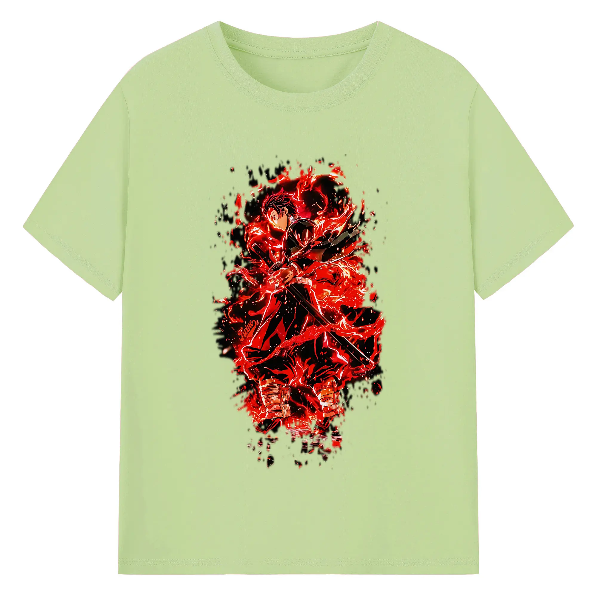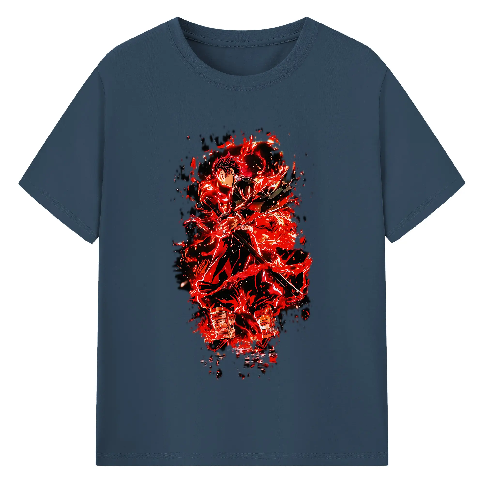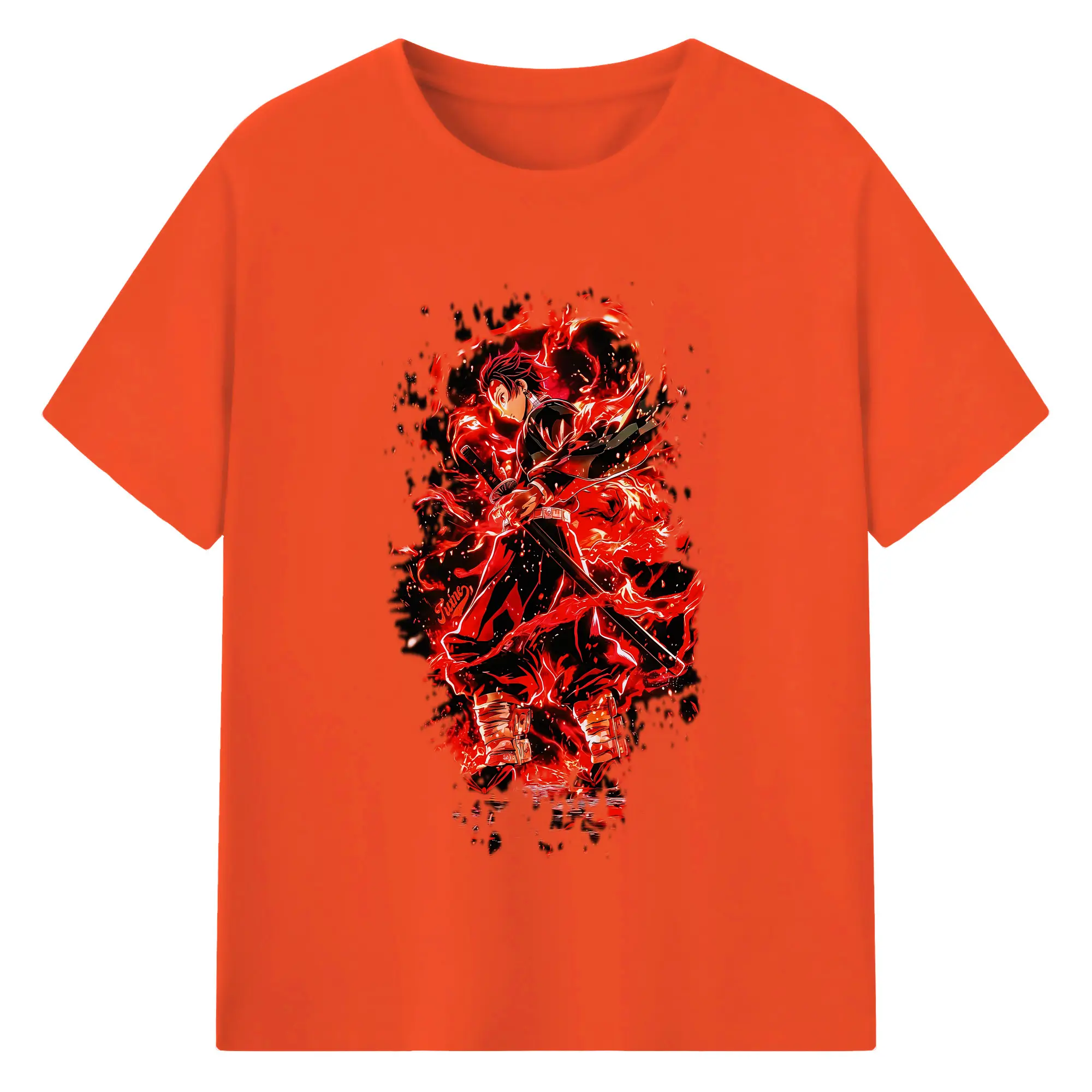 鬼滅の刃 グッズ,竈門 炭治郎 - 綿100% 半袖Tシャツ ・ フロントプリント ・ 快適 通気性 ・ 日常使い 散歩 スポーツ用