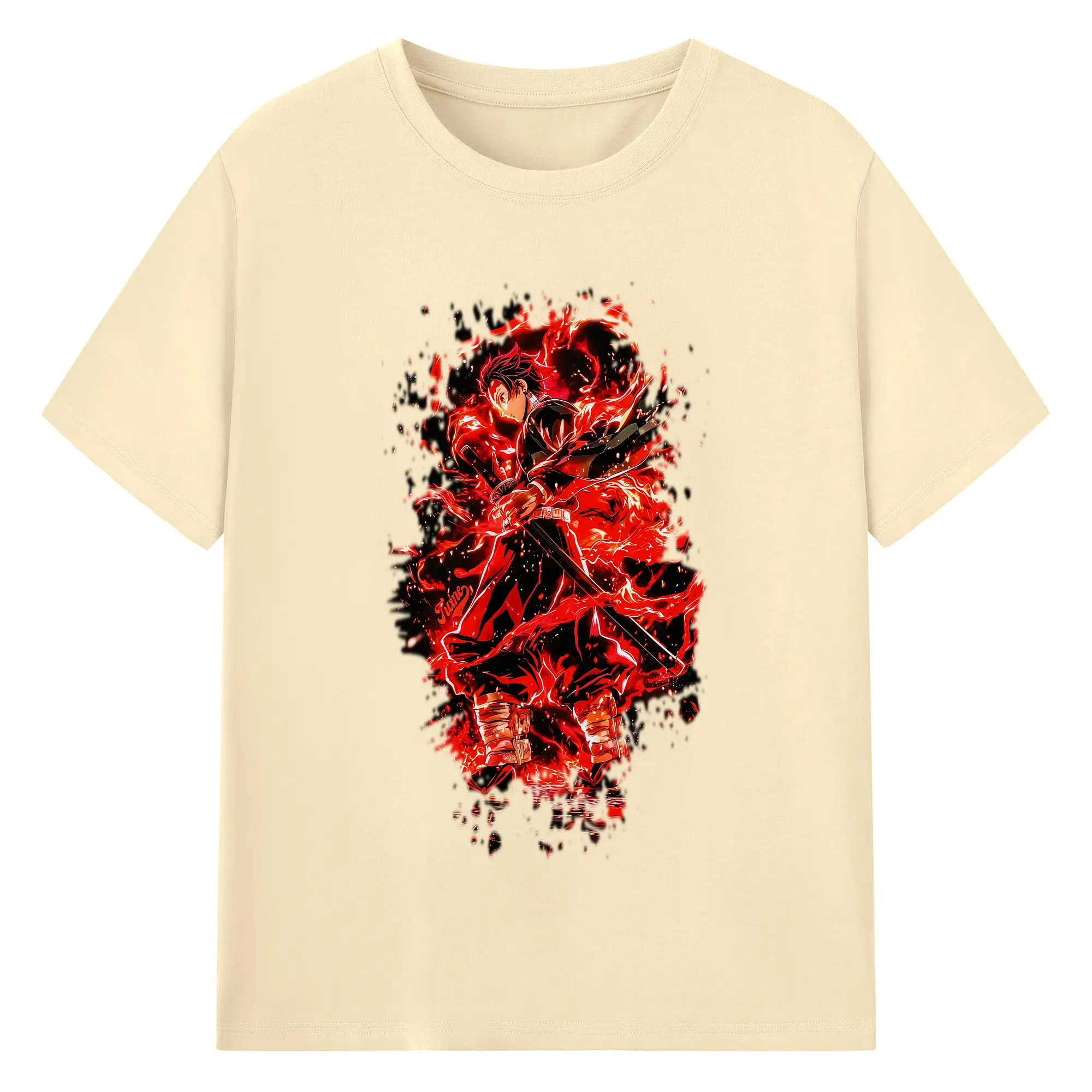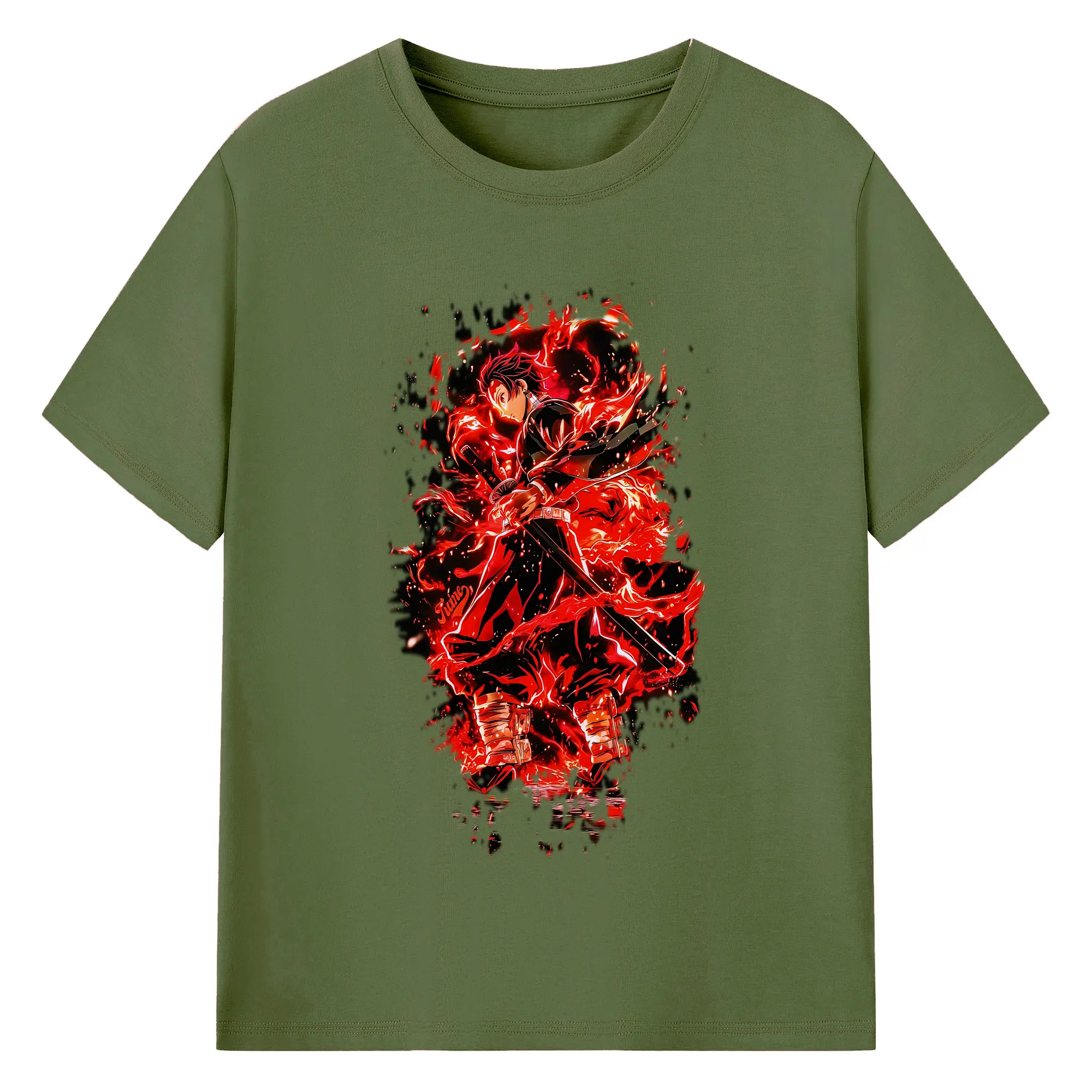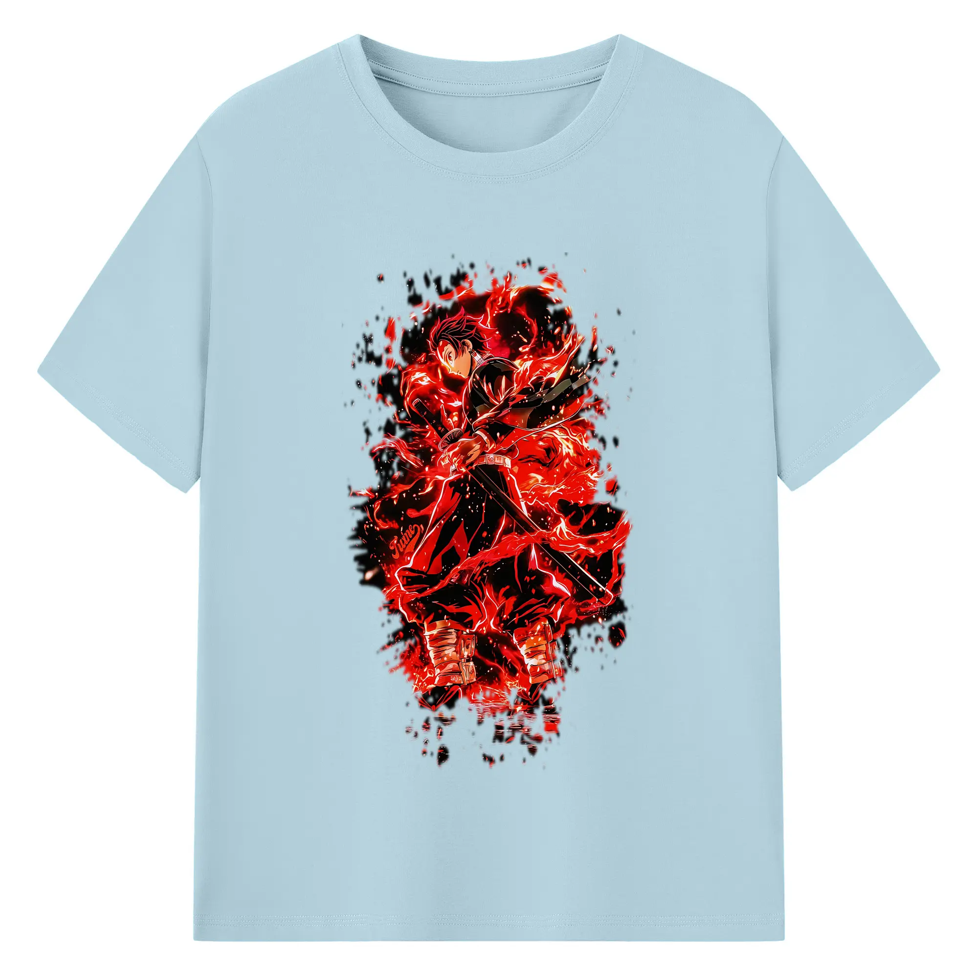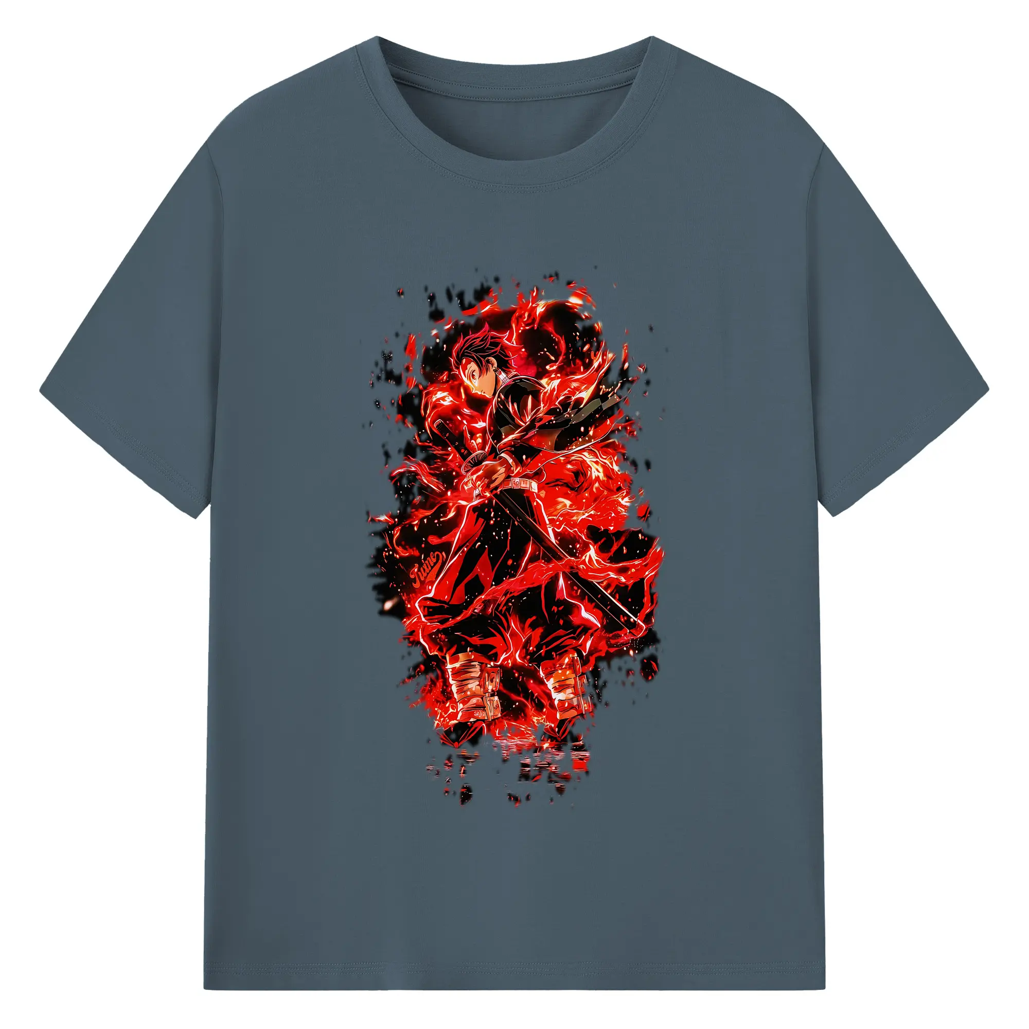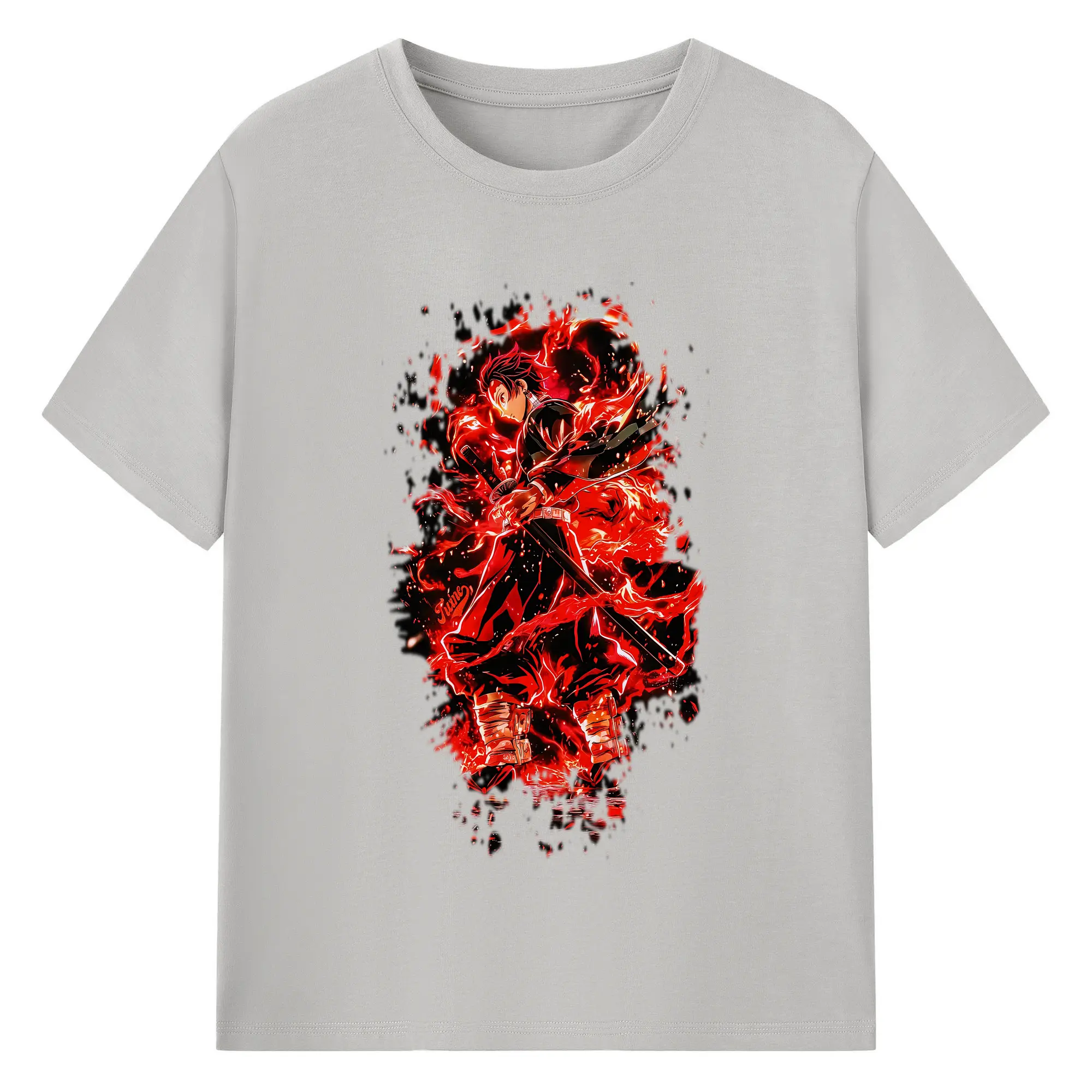 鬼滅の刃 グッズ,竈門 炭治郎 - 綿100% 半袖Tシャツ ・ フロントプリント ・ 快適 通気性 ・ 日常使い 散歩 スポーツ用
