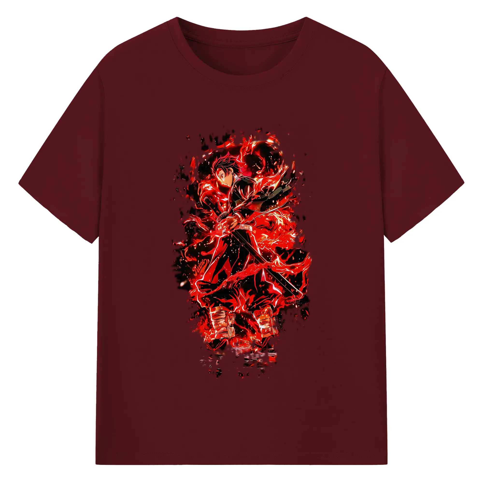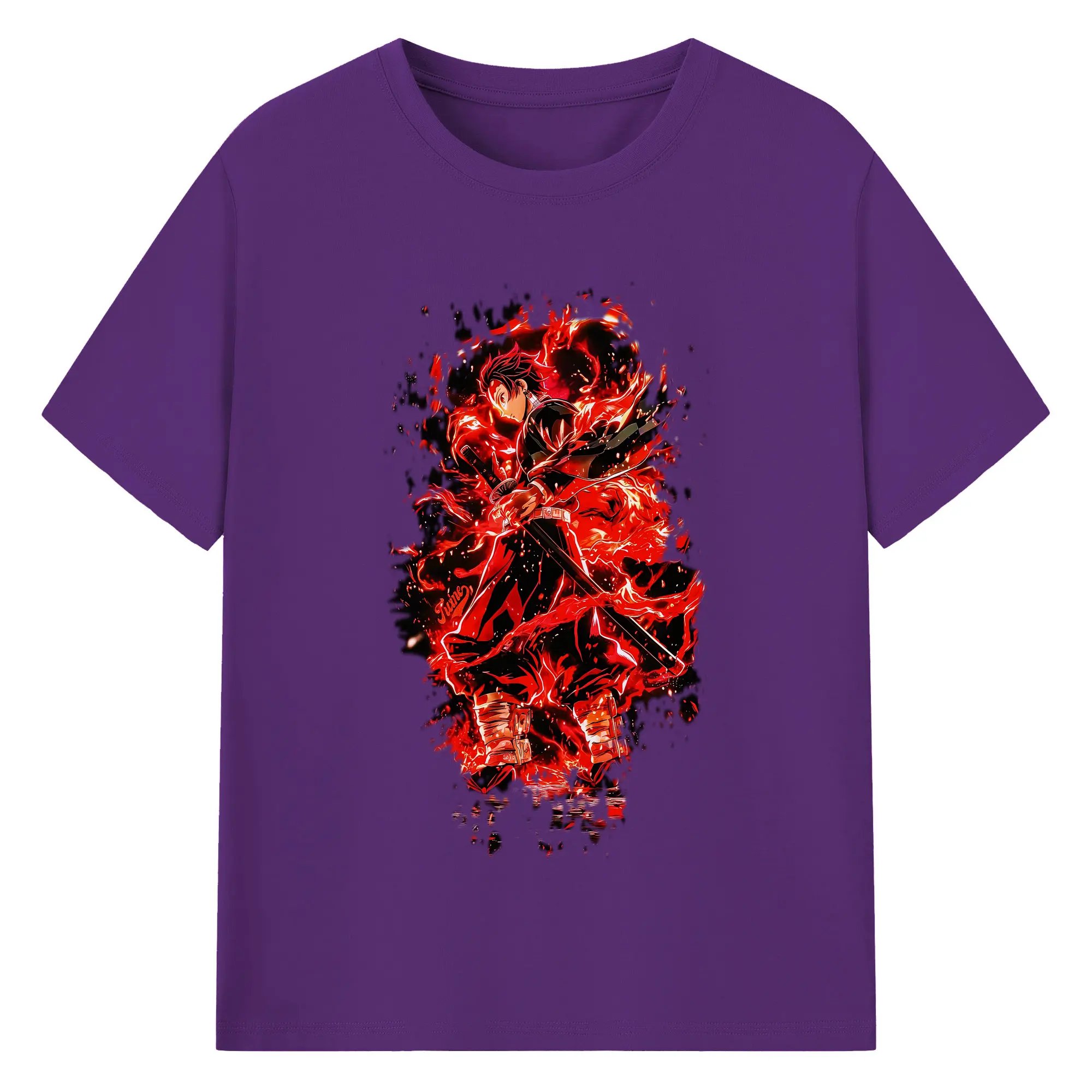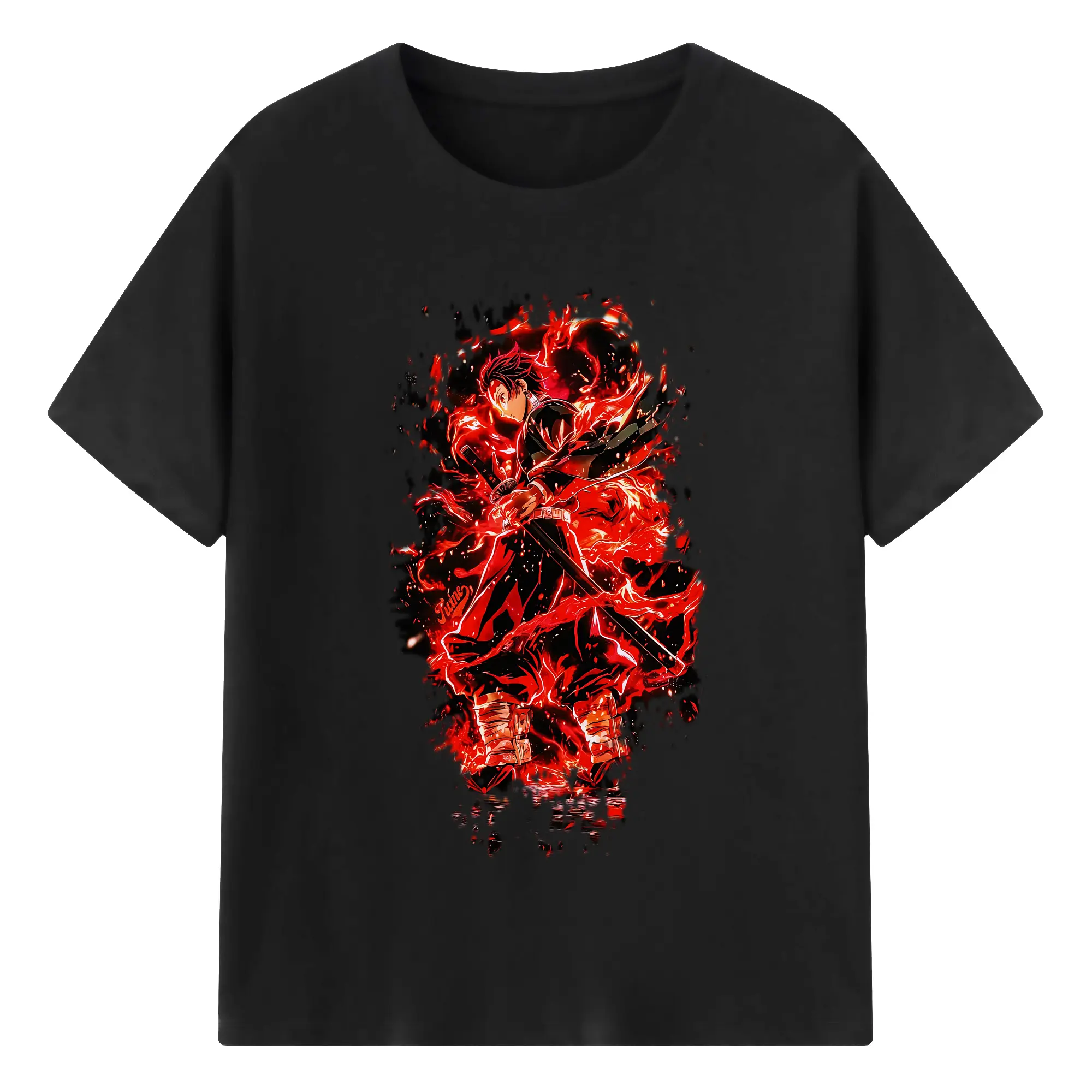 鬼滅の刃 グッズ,竈門 炭治郎 - 綿100% 半袖Tシャツ ・ バックプリント ・ 快適 通気性 ・ 日常使い 散歩 スポーツ用