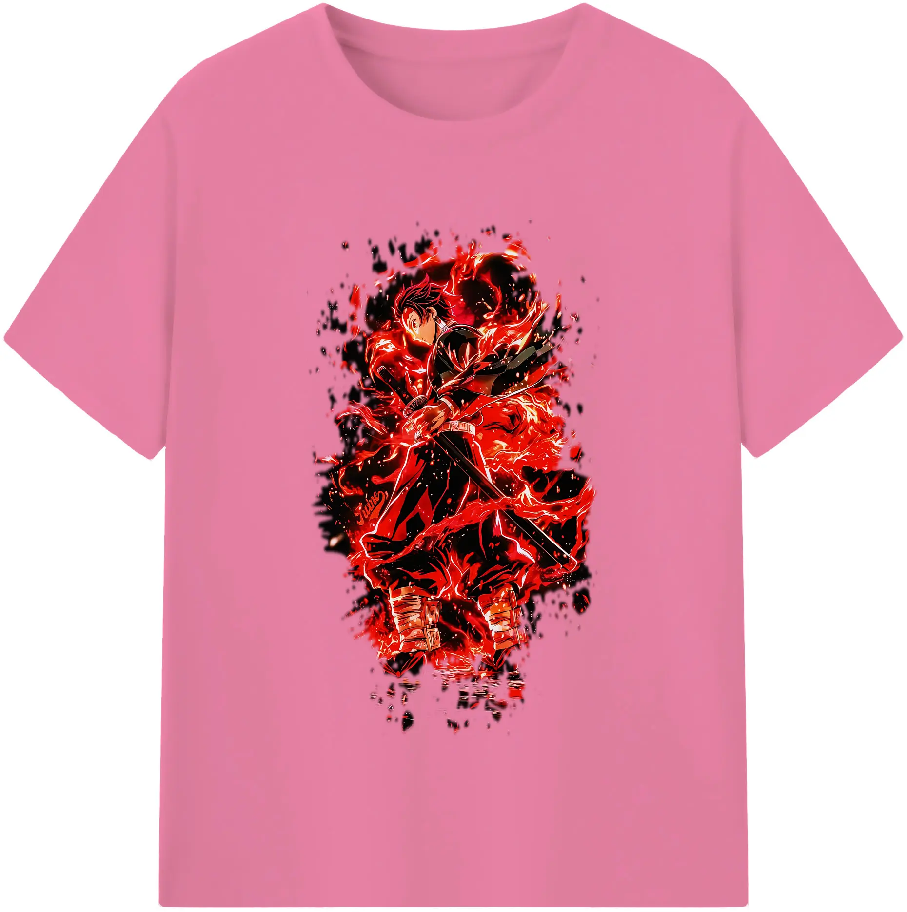 鬼滅の刃 グッズ,甘露寺 蜜璃 - 綿100% 半袖Tシャツ ・ フロントプリント ・ 快適 通気性 ・ 日常使い 散歩 スポーツ用