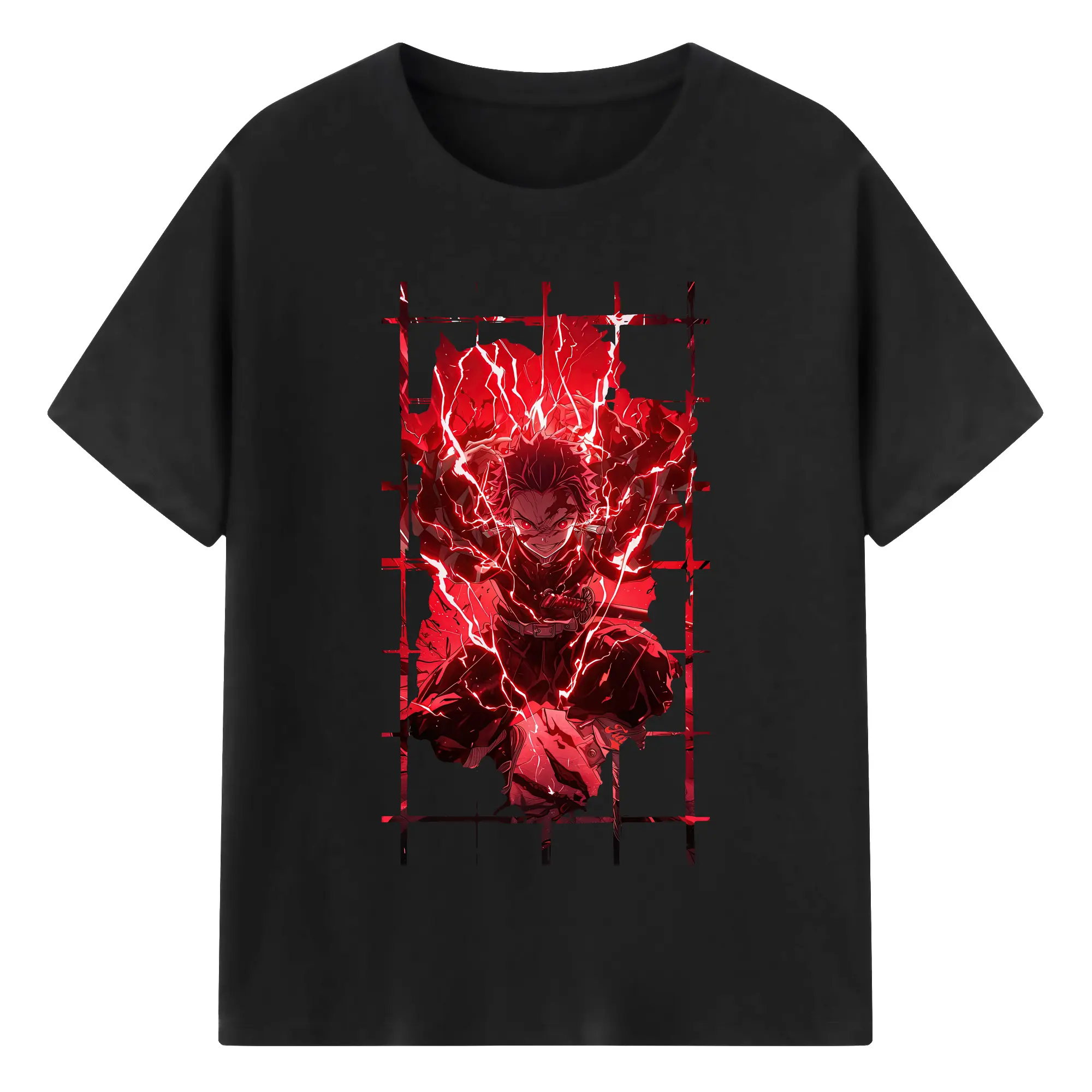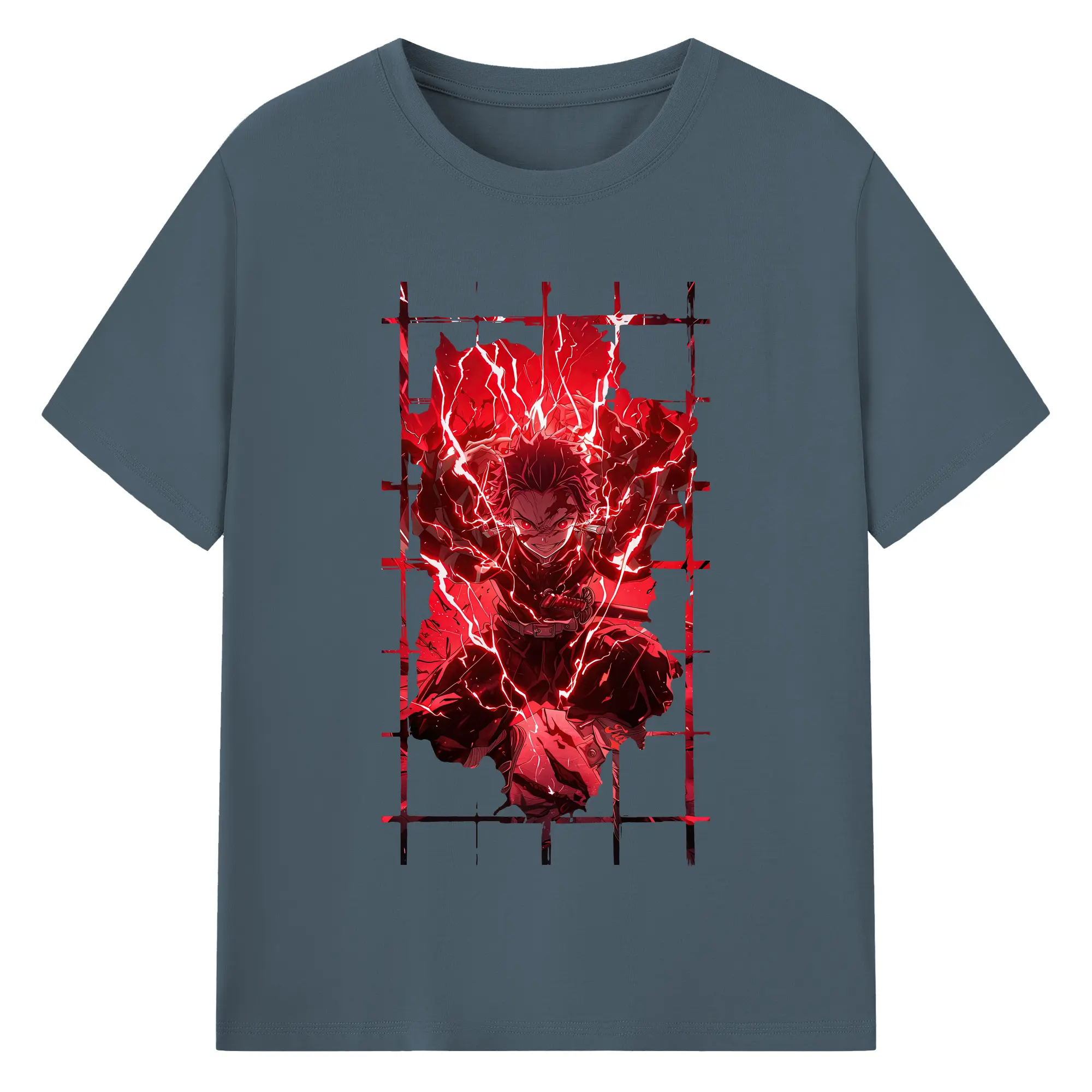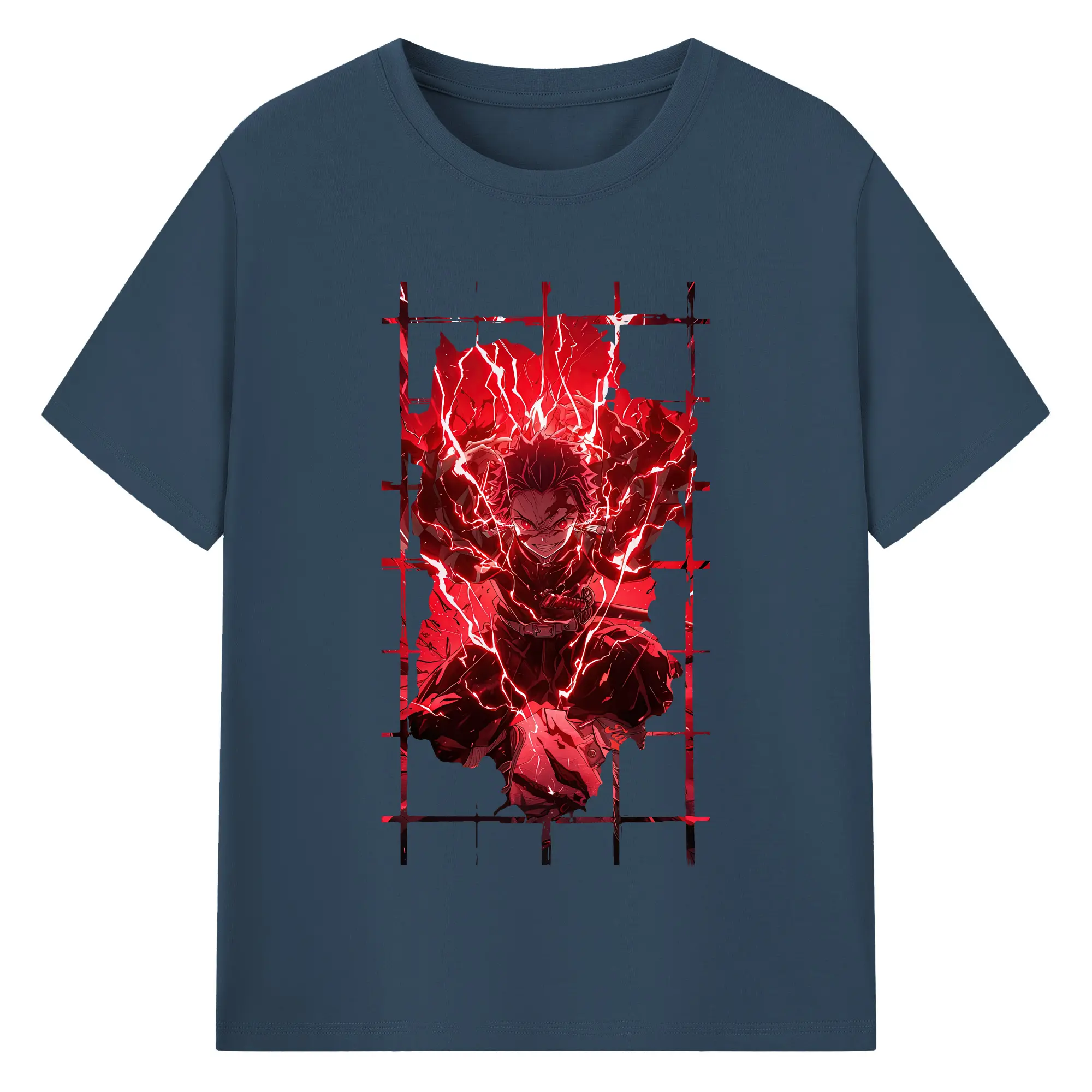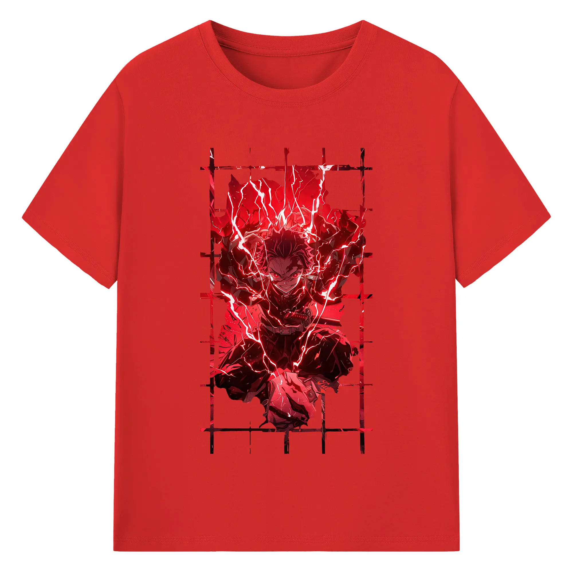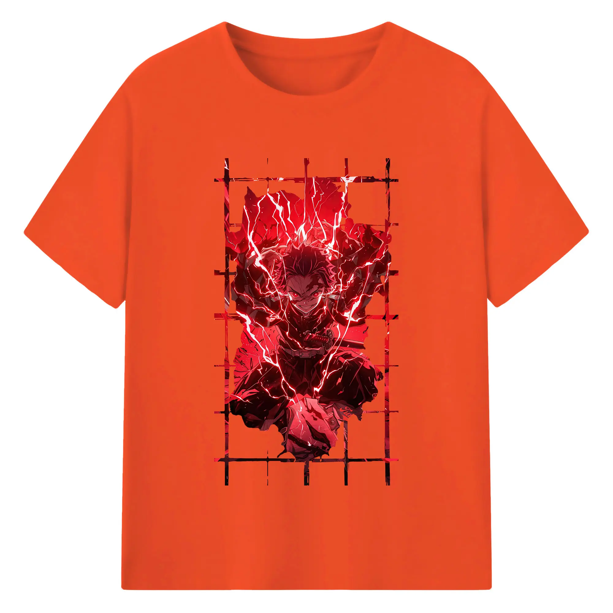 鬼滅の刃 グッズ,竈門 炭治郎 - 綿100% 半袖Tシャツ ・ バックプリント ・ 快適 通気性 ・ 日常使い 散歩 スポーツ用