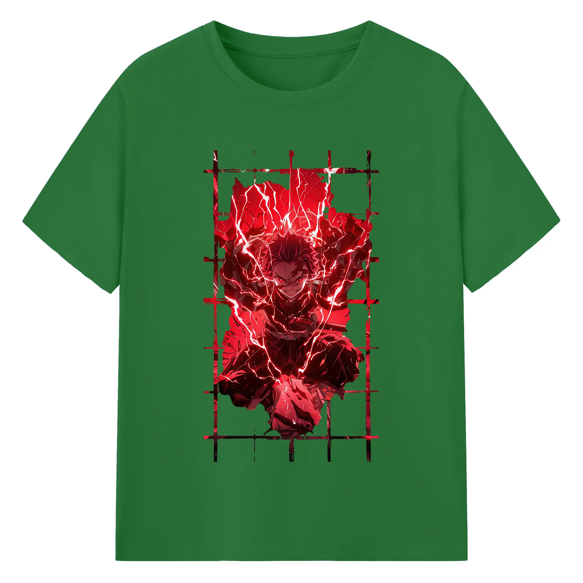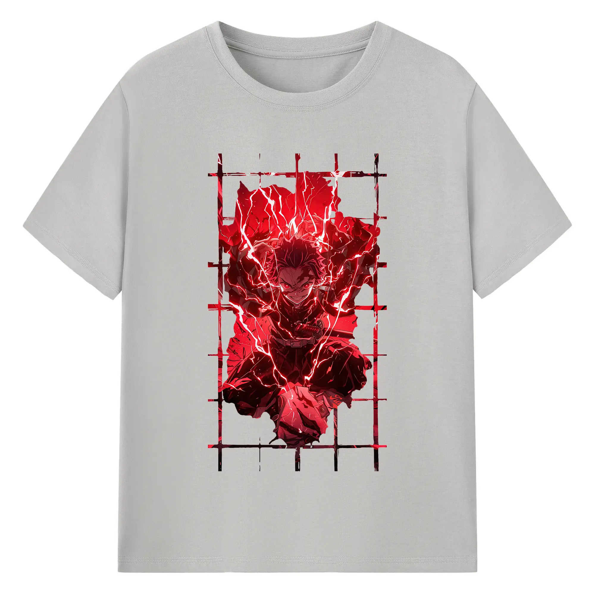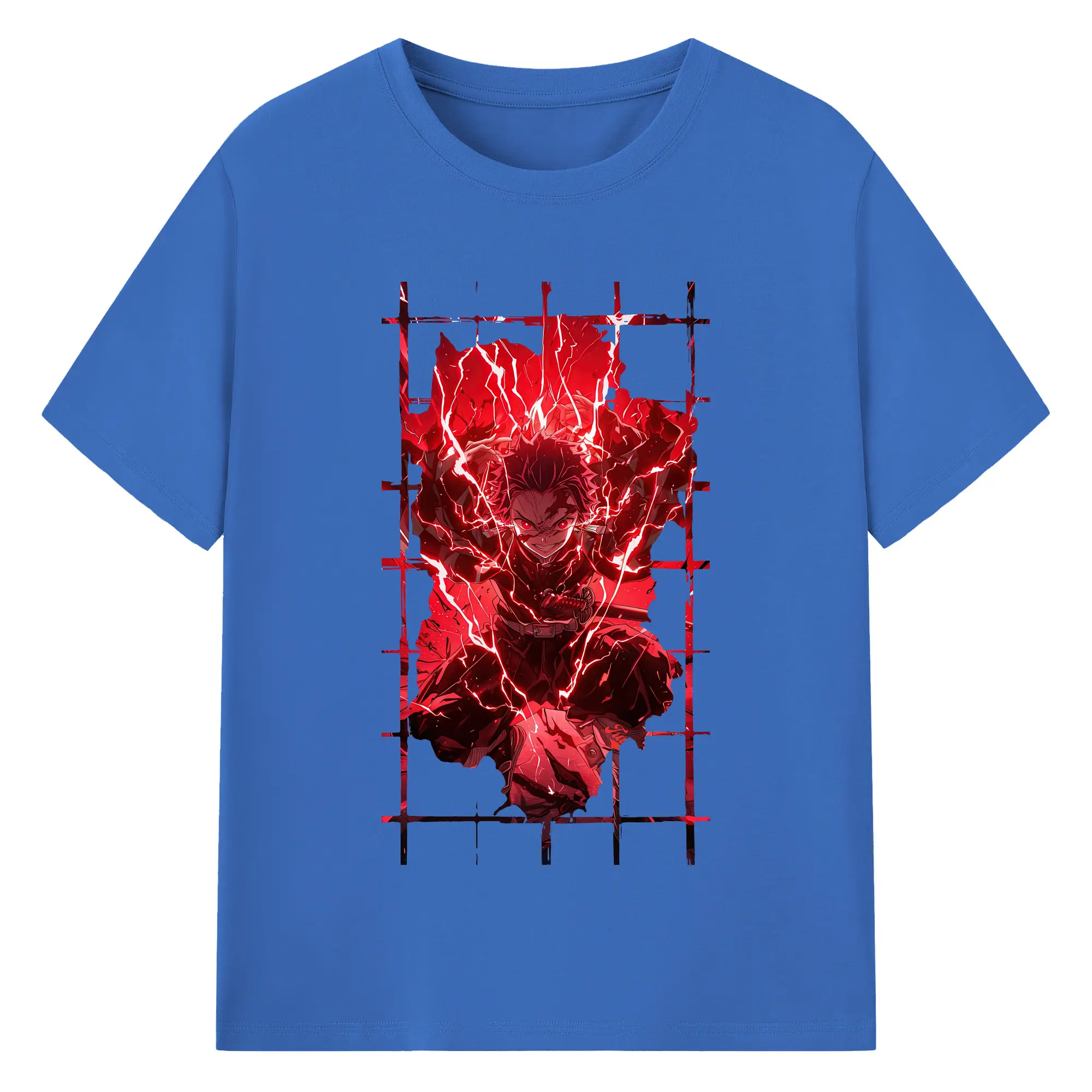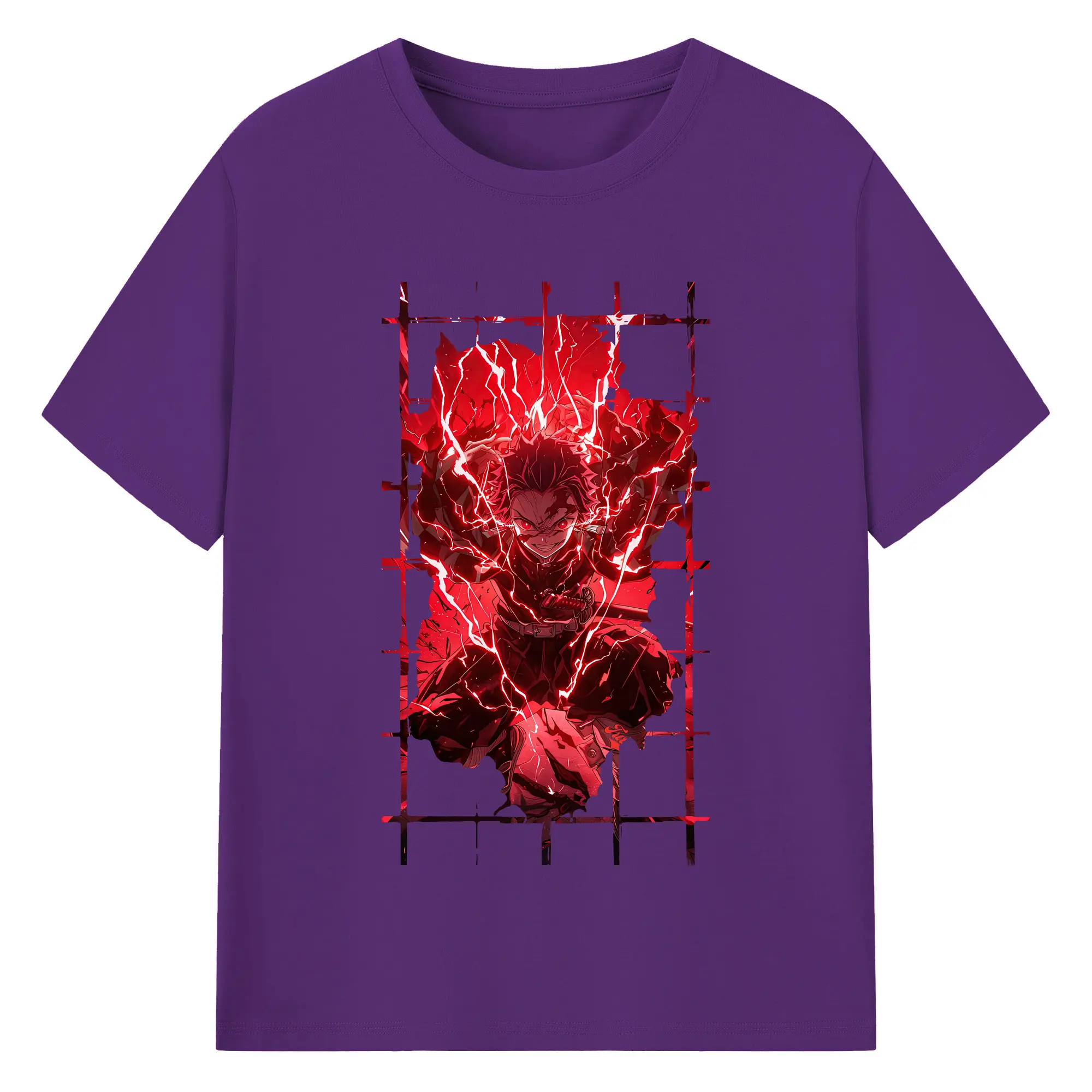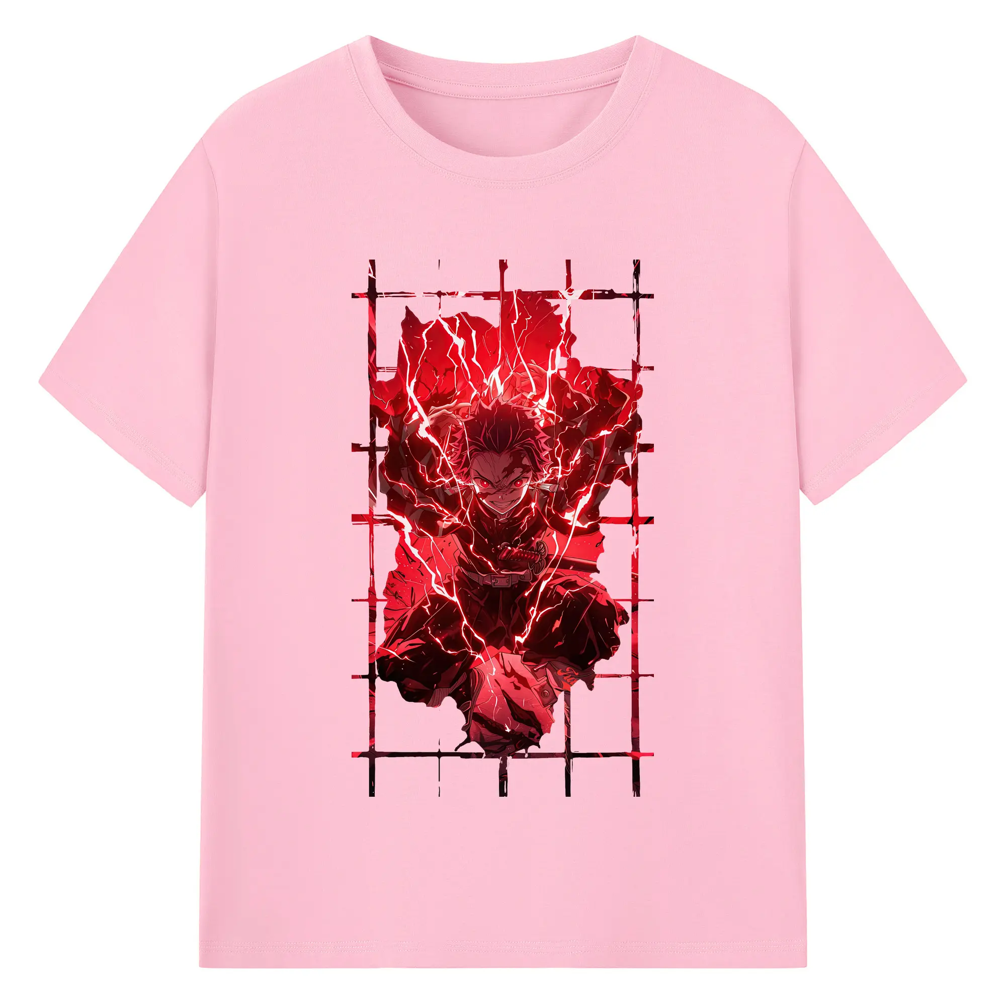 鬼滅の刃 グッズ,竈門 炭治郎 - 綿100% 半袖Tシャツ ・ バックプリント ・ 快適 通気性 ・ 日常使い 散歩 スポーツ用