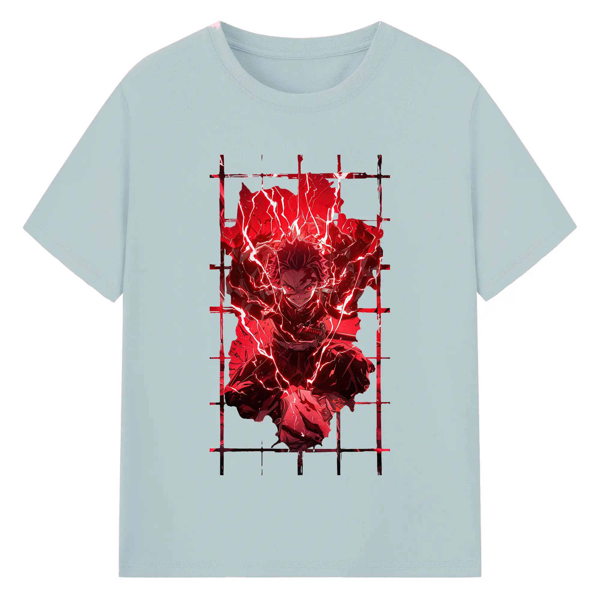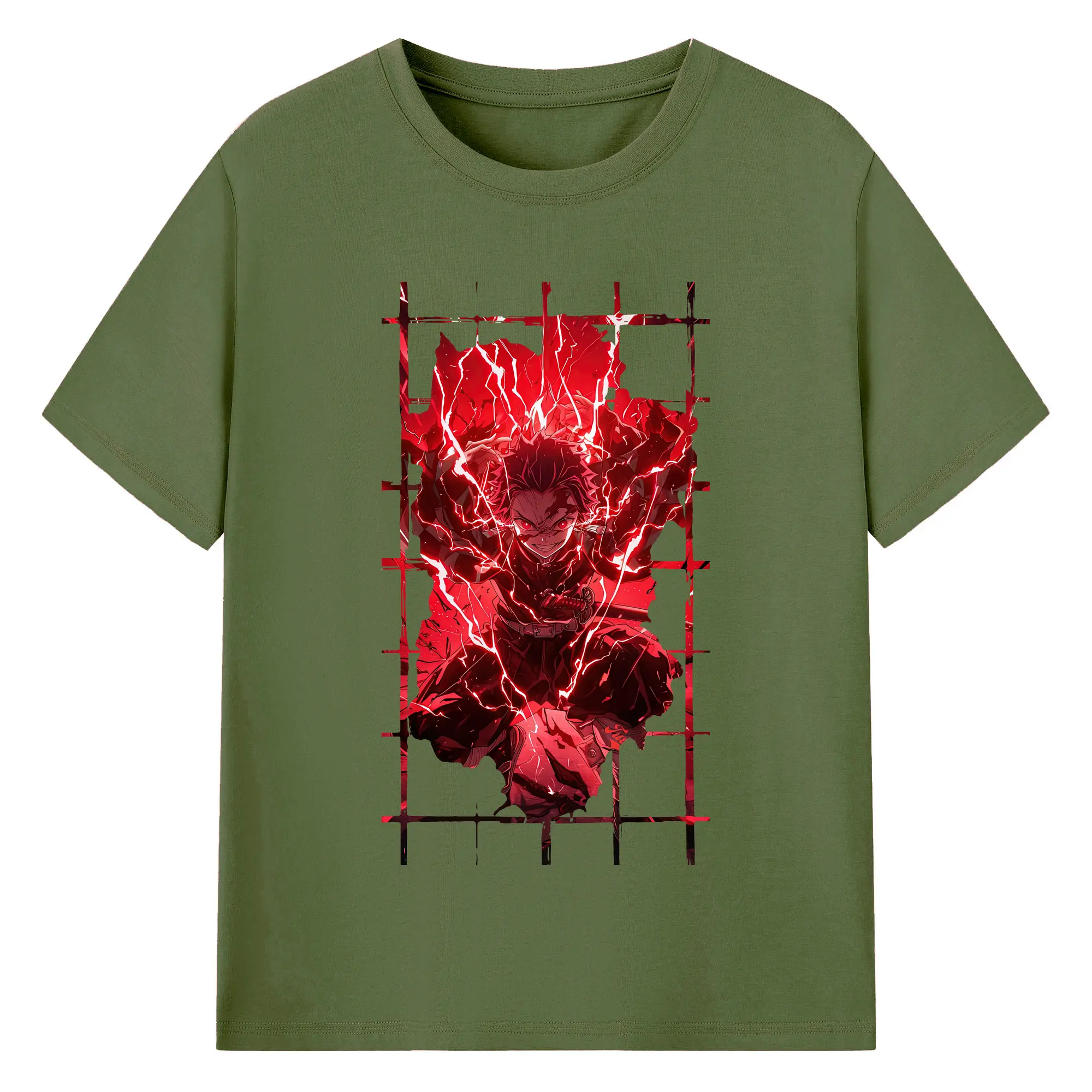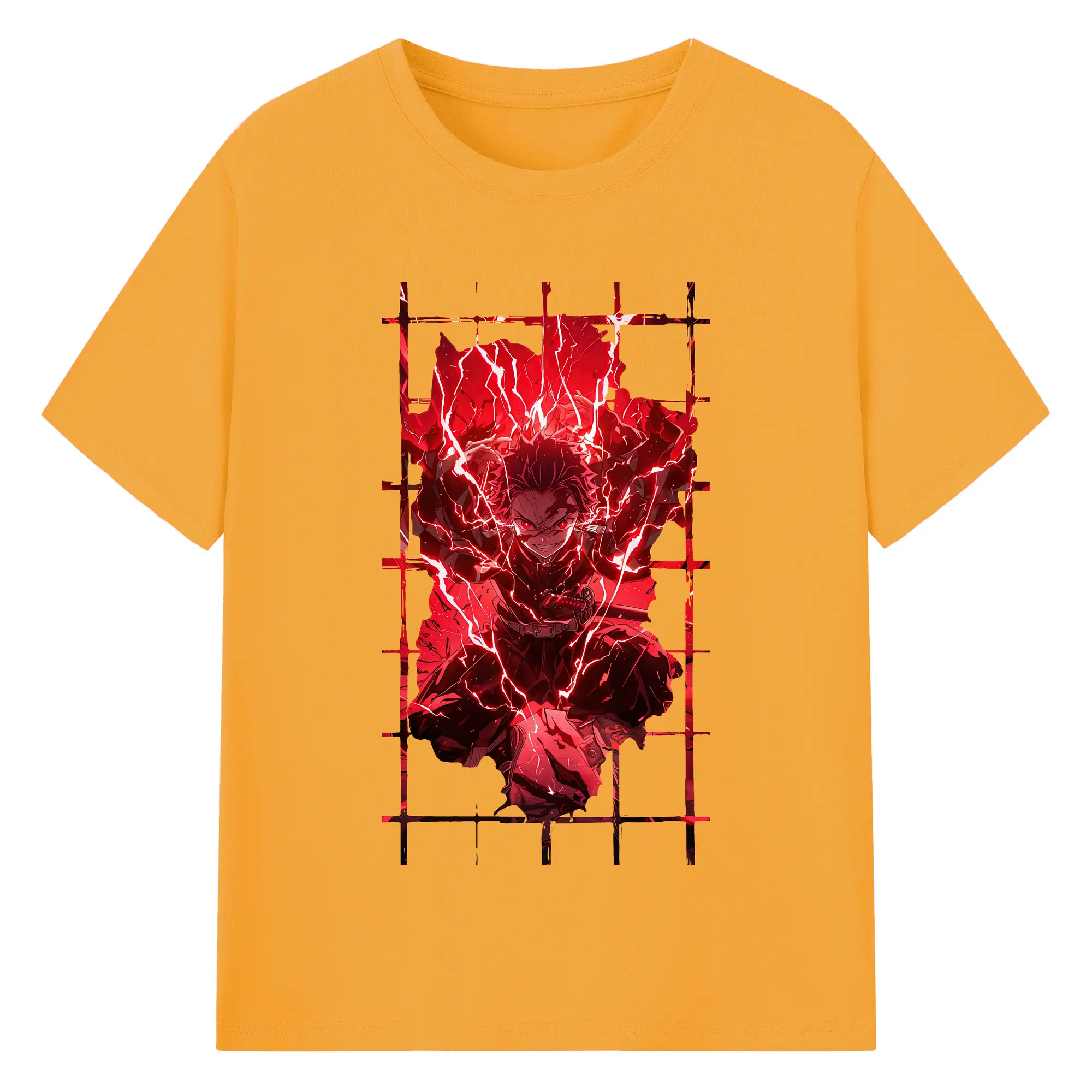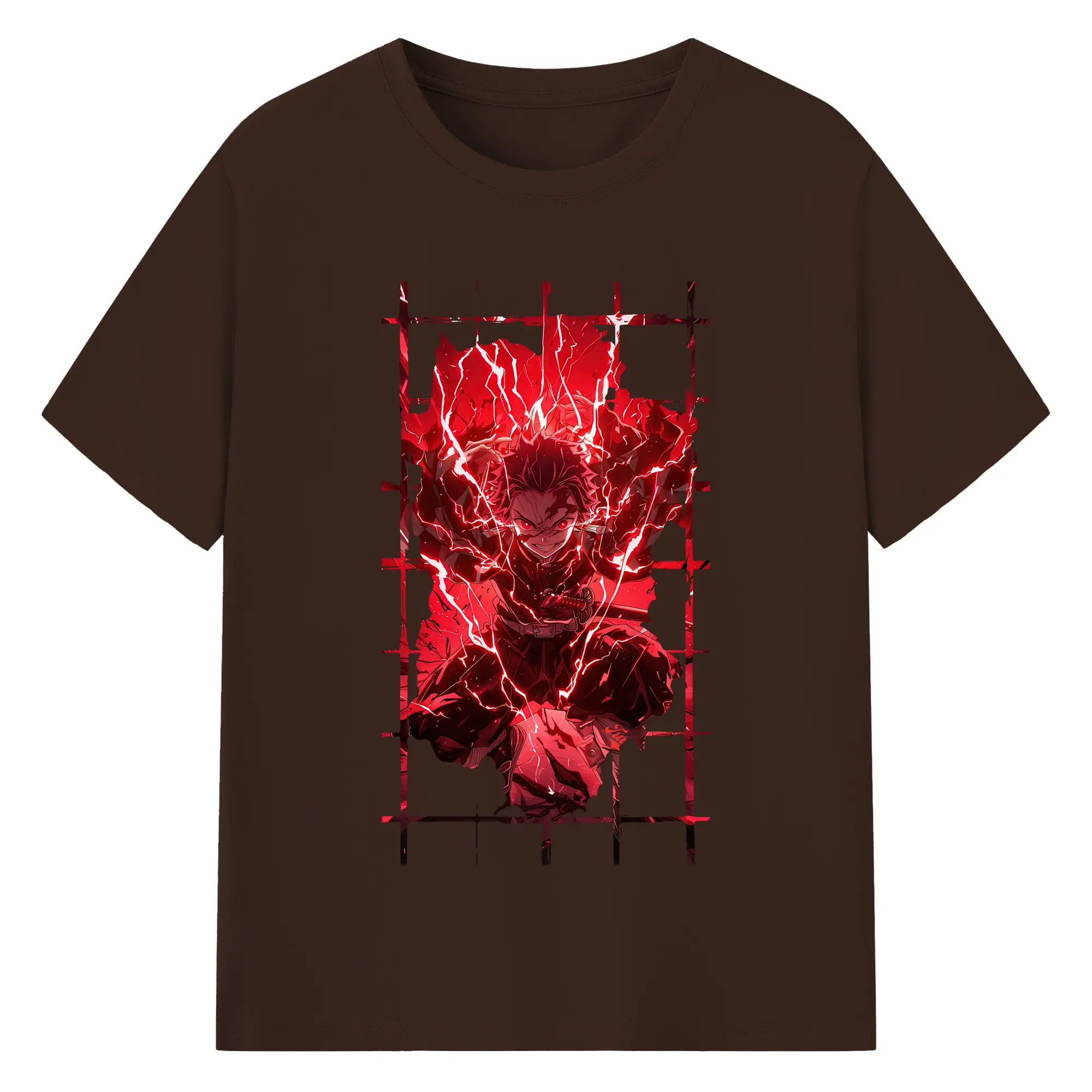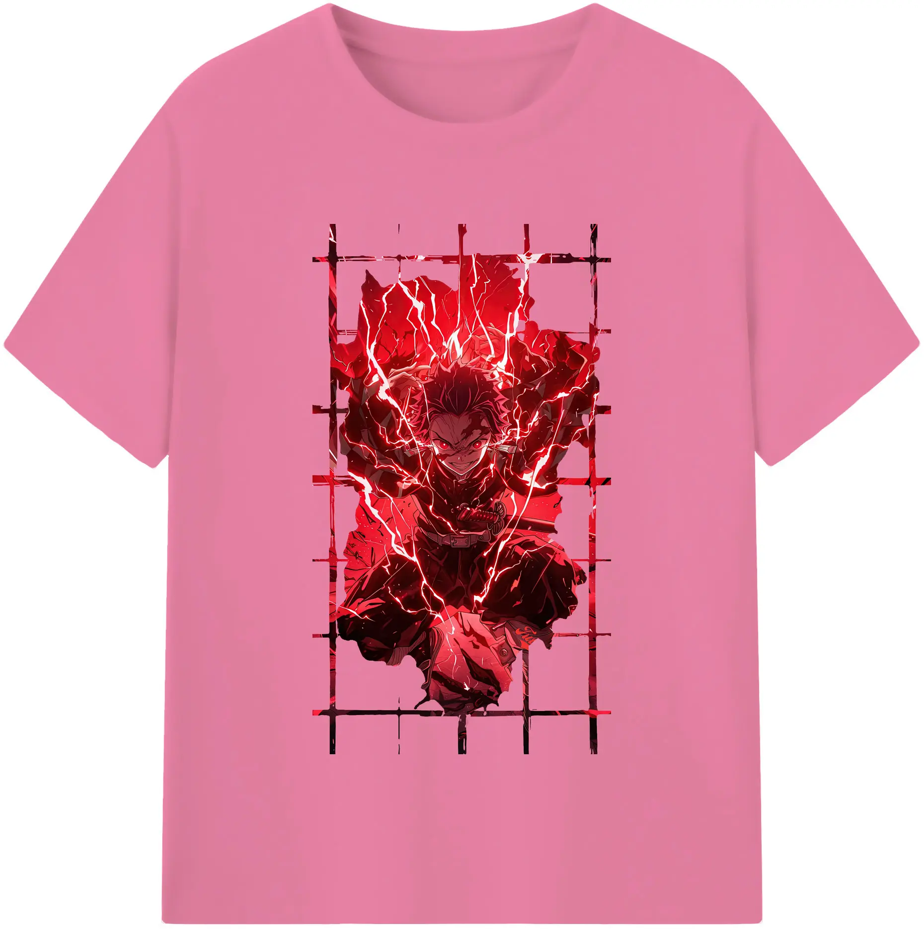 鬼滅の刃 グッズ,竈門 炭治郎 - 綿100% 半袖Tシャツ ・ バックプリント ・ 快適 通気性 ・ 日常使い 散歩 スポーツ用